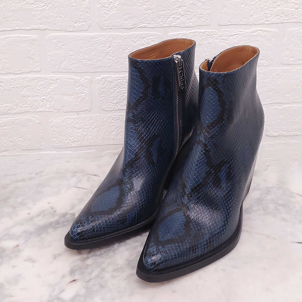CHLOÉ BLUE SNAKESKIN COWBOY BOOTS - SIZE 40