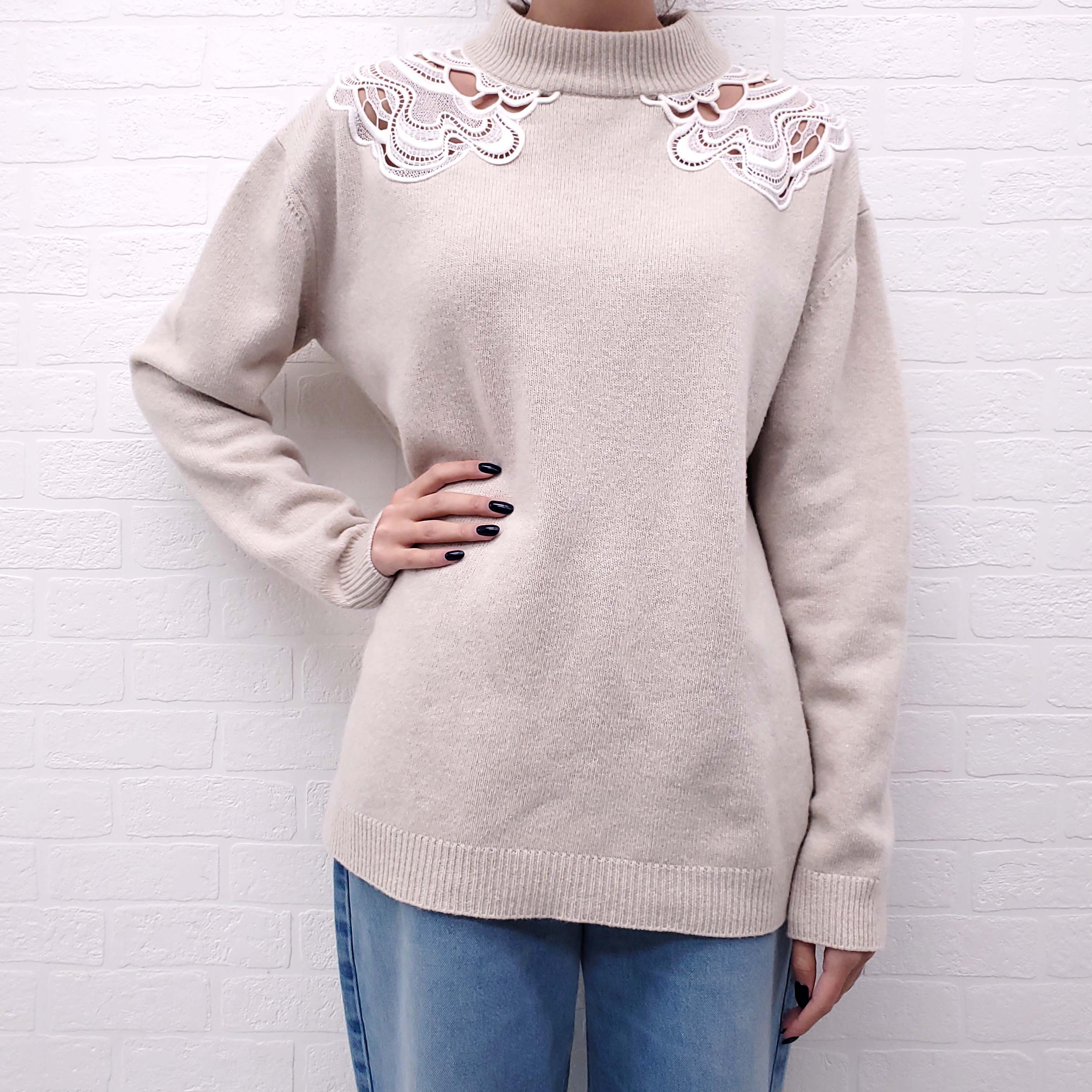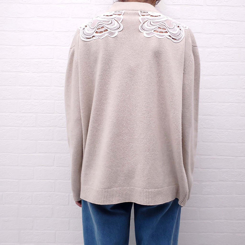 CHLOÉ CREAM SWEATER WITH WHITE EYELET DETAIL - SIZE M