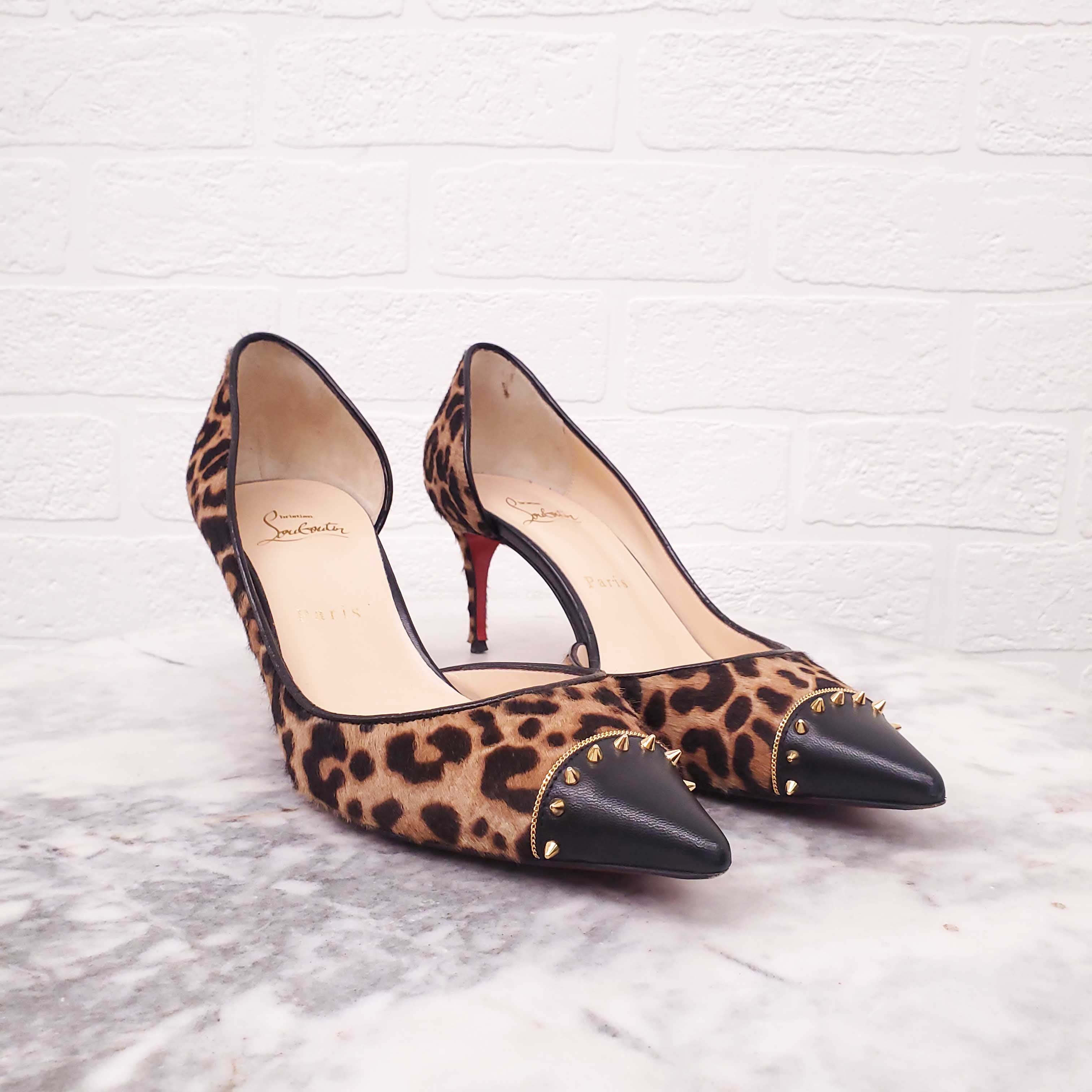 CHRISTIAN LOUBOUTIN LEOPARD PONY KITTEN HEELS - SIZE 38.5