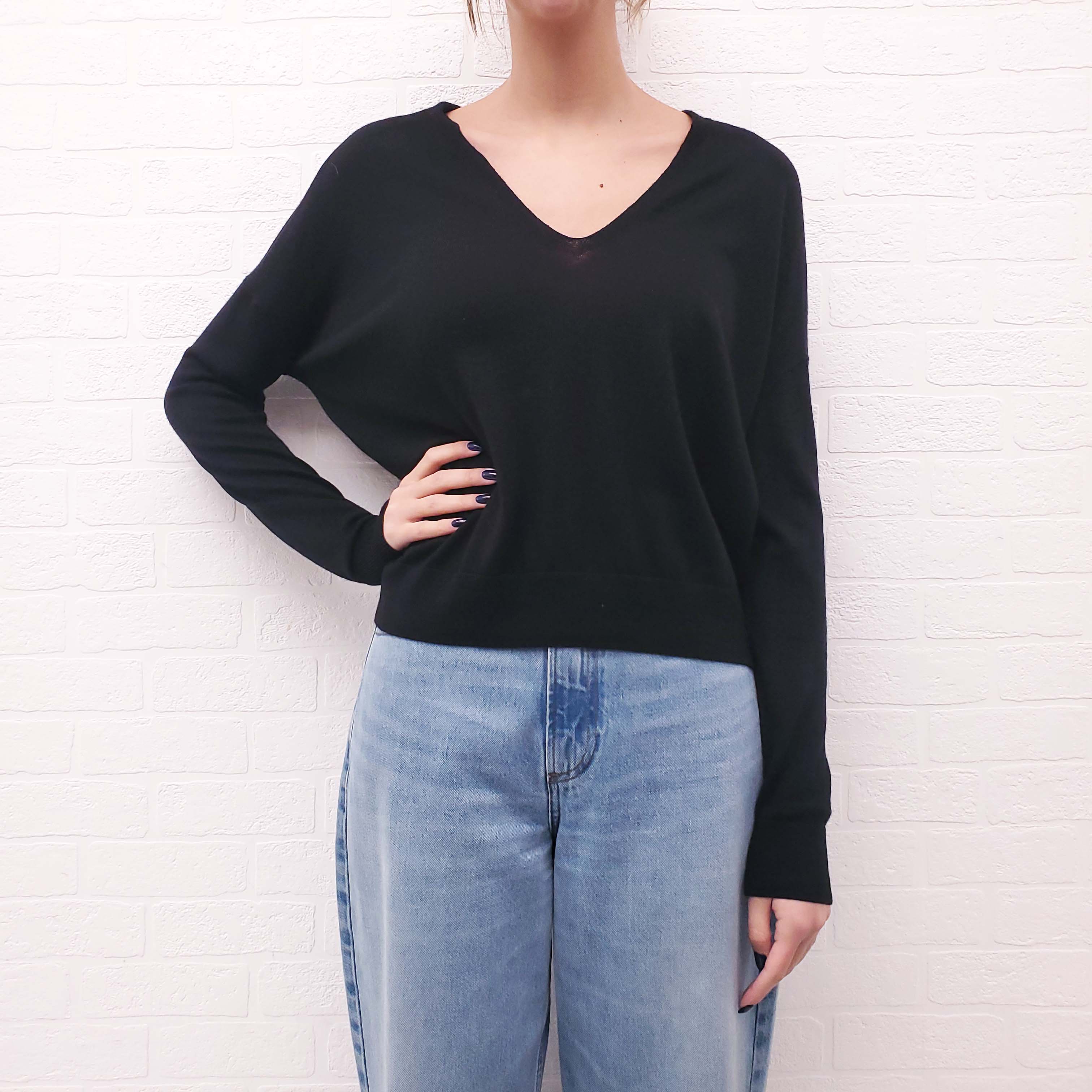 CO BLACK V-NECK SWEATER - SIZE XS