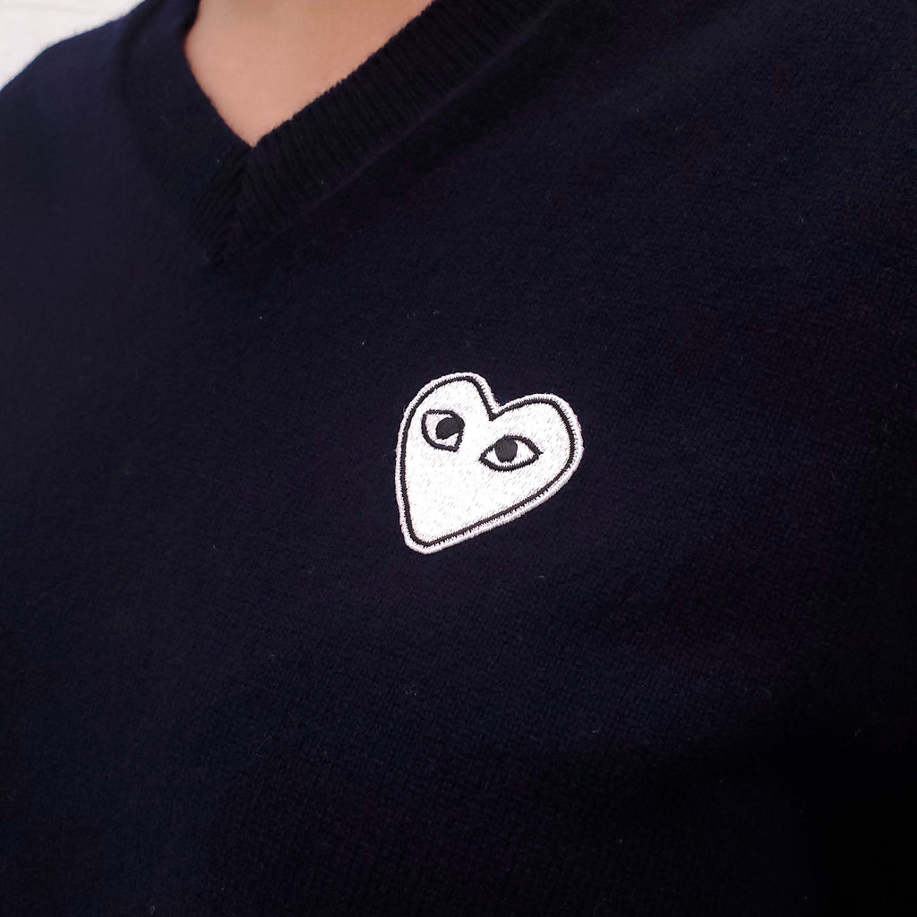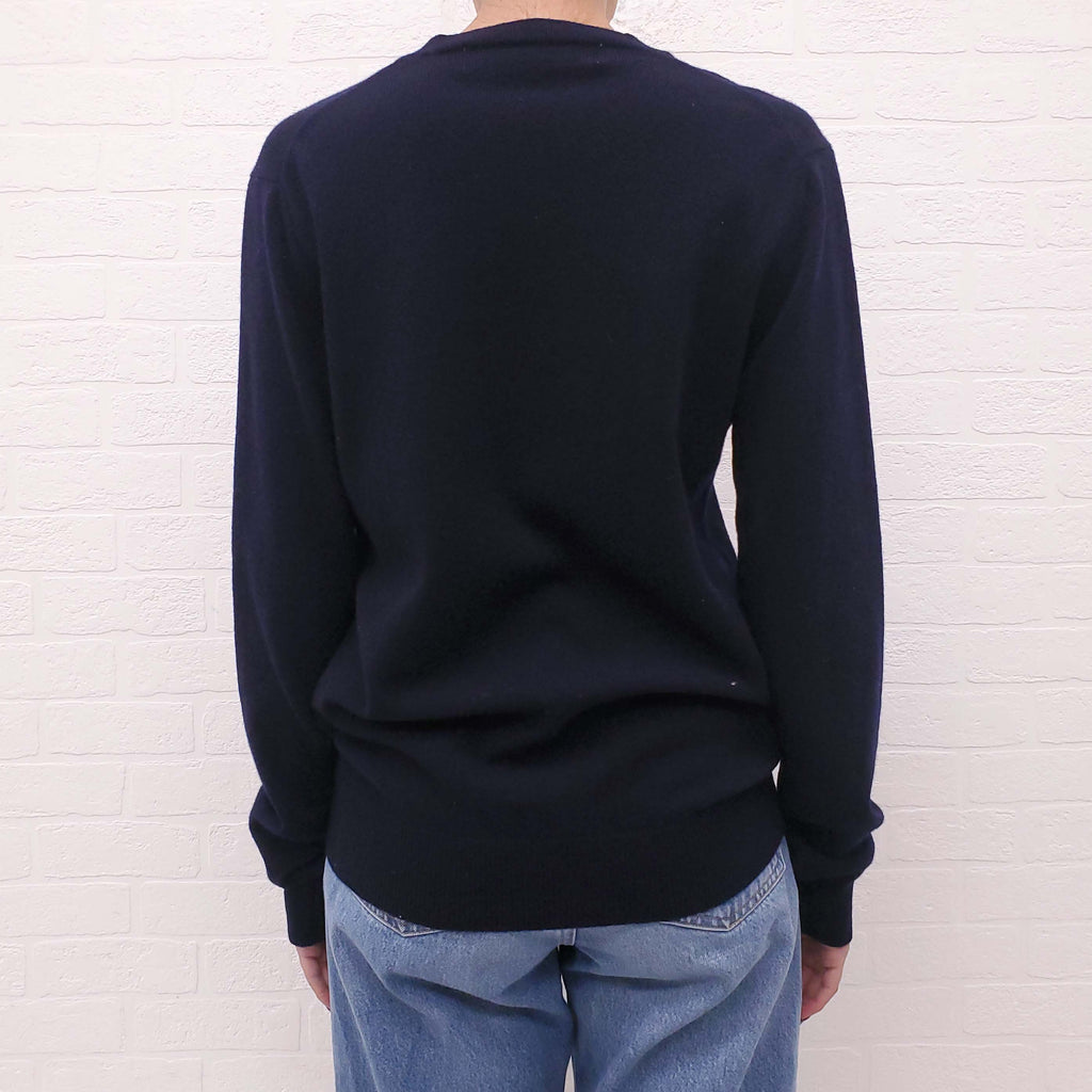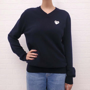 COMMES DES GARÇONS PLAY NAVY WOOL V-NECK SWEATER - SIZE M