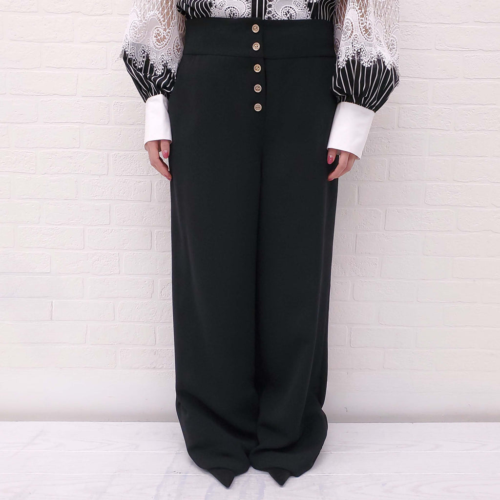 EDWARD ACHOUR PARIS BLACK PANTS WITH GOLD BUTTONS - SIZE 42