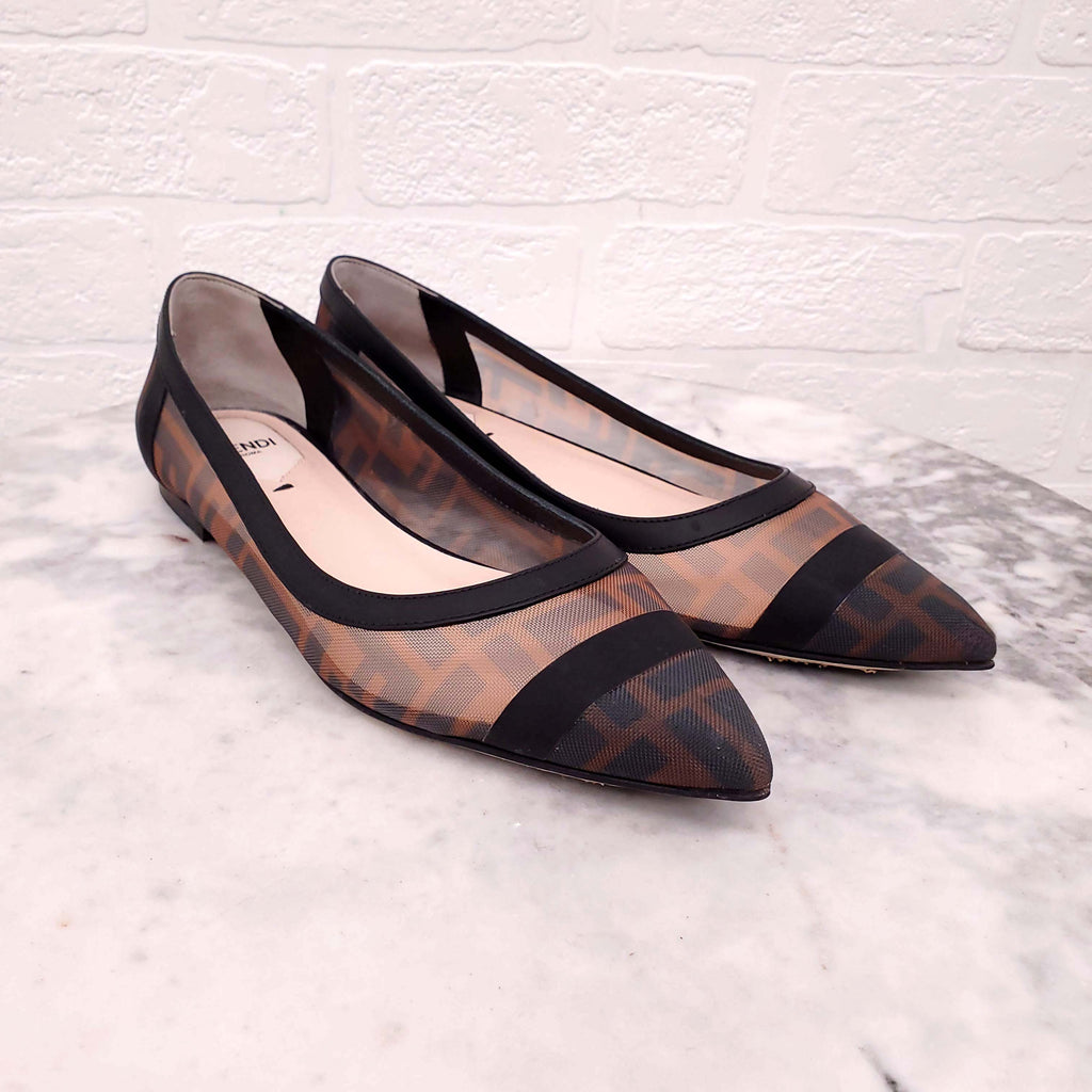 FENDI MESH LOGO FLATS - SIZE 37