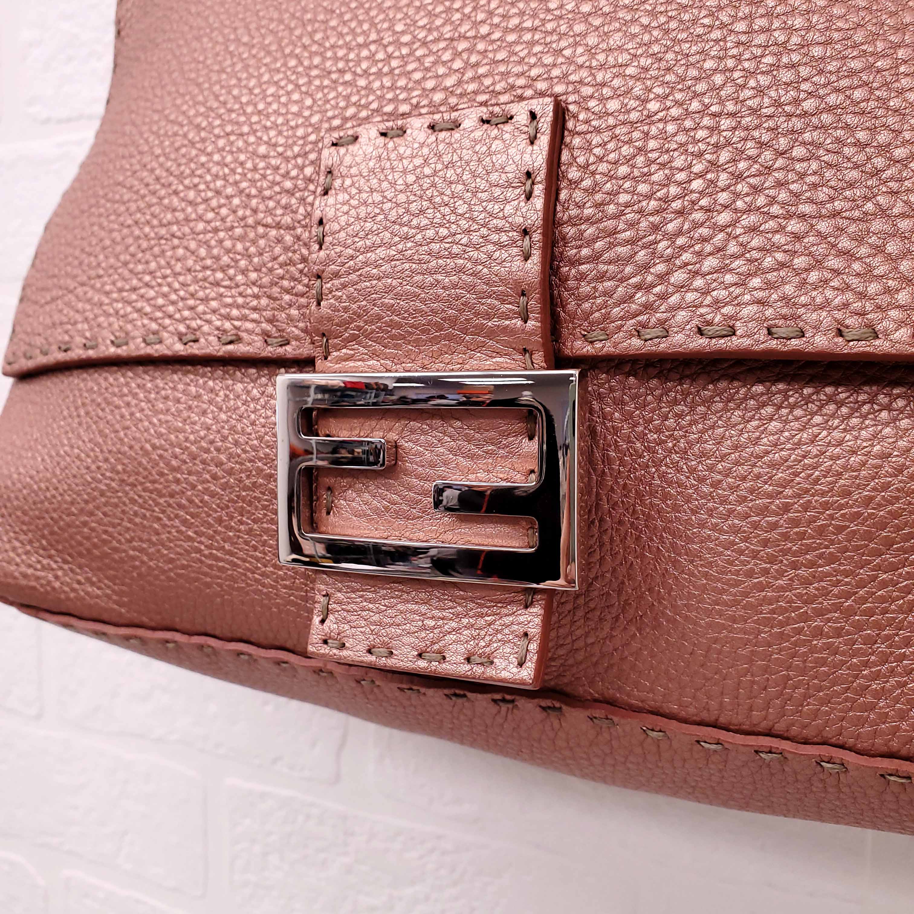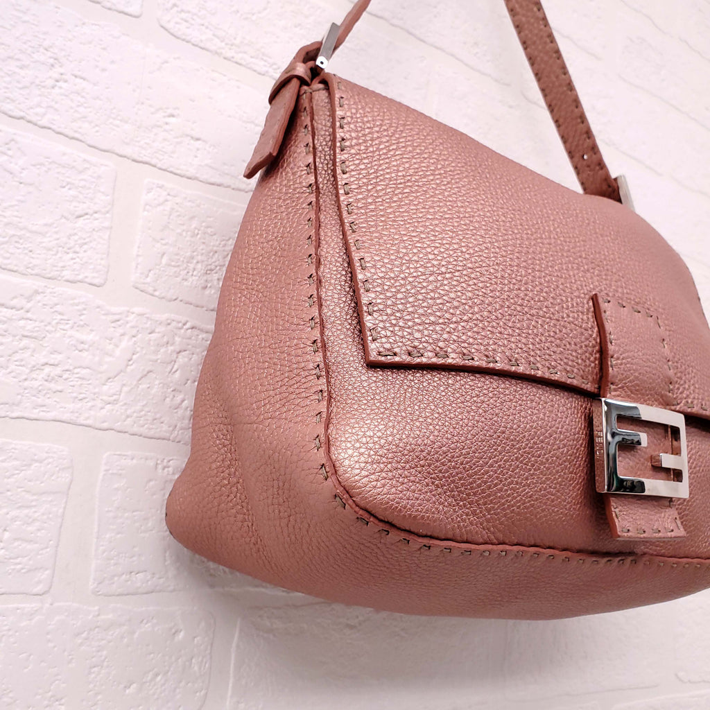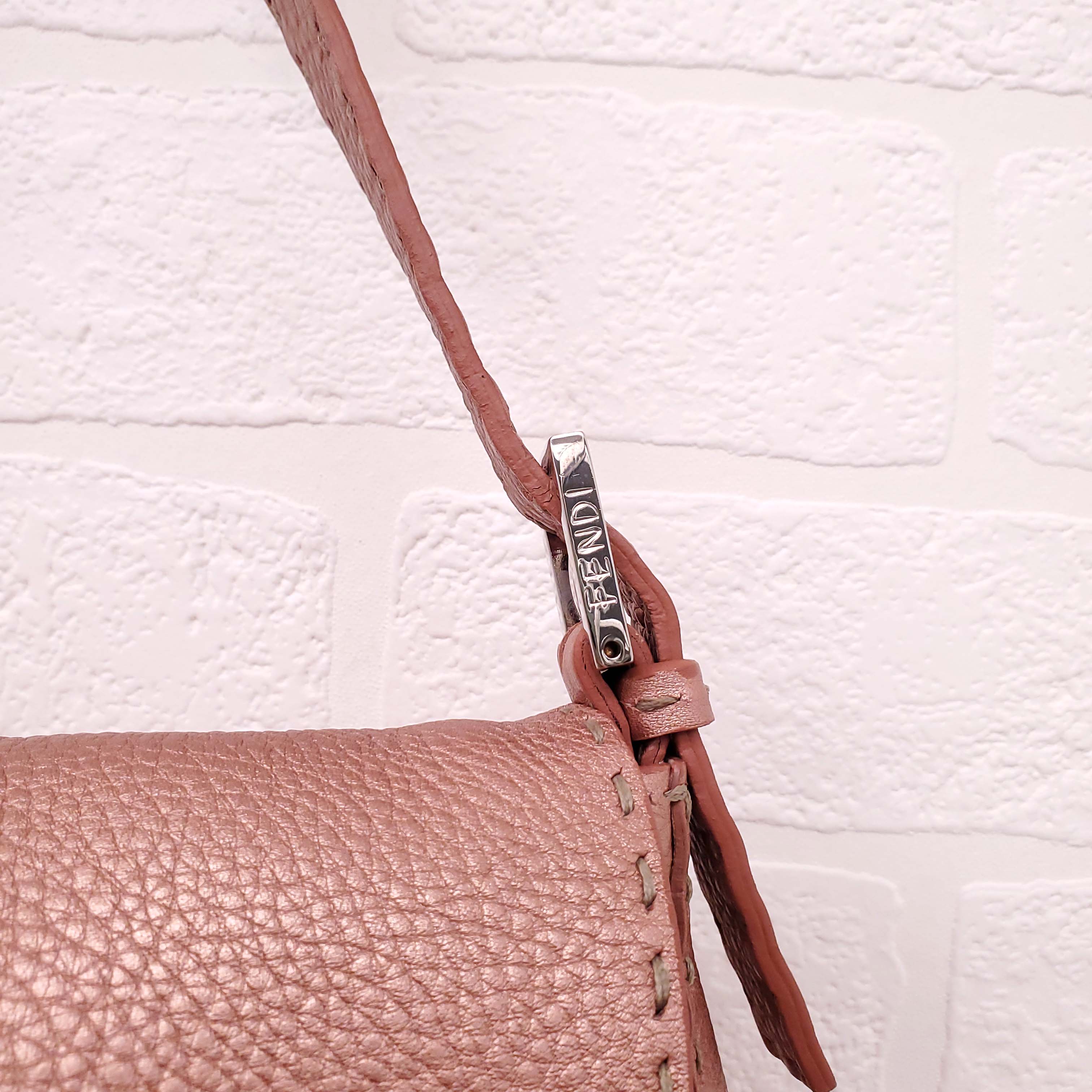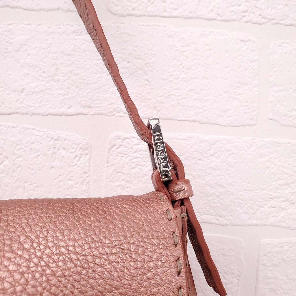 FENDI METALLIC PINK 'SELLERIA MAMMA BAGUETTE' SHOULDER BAG