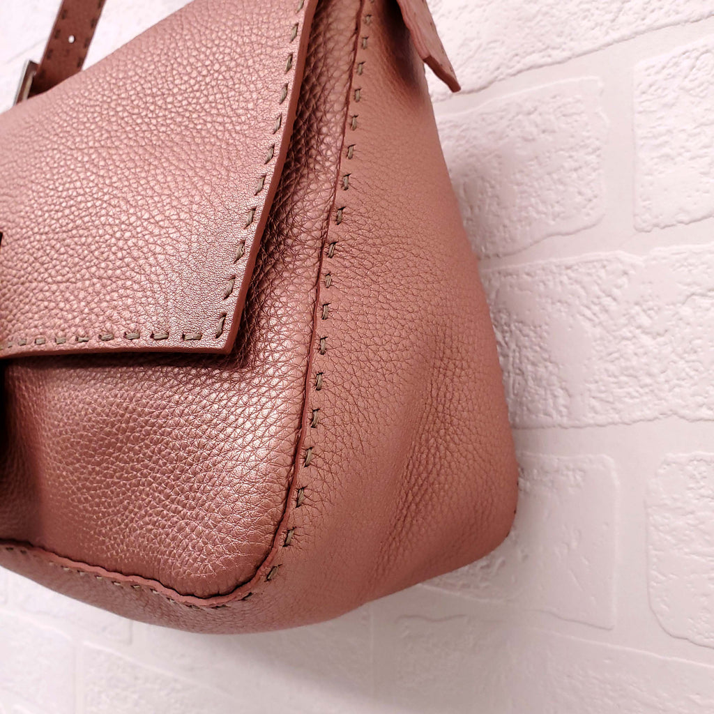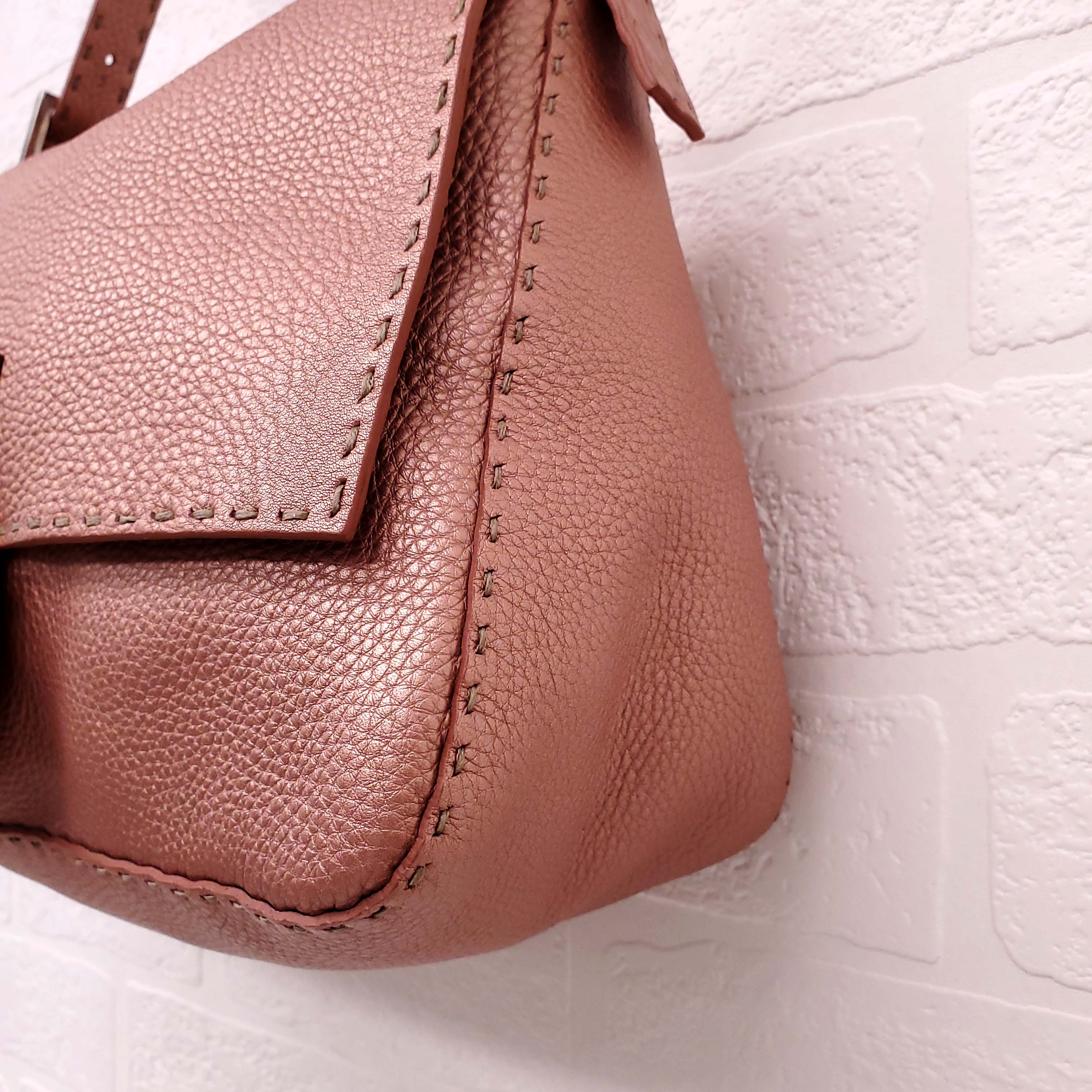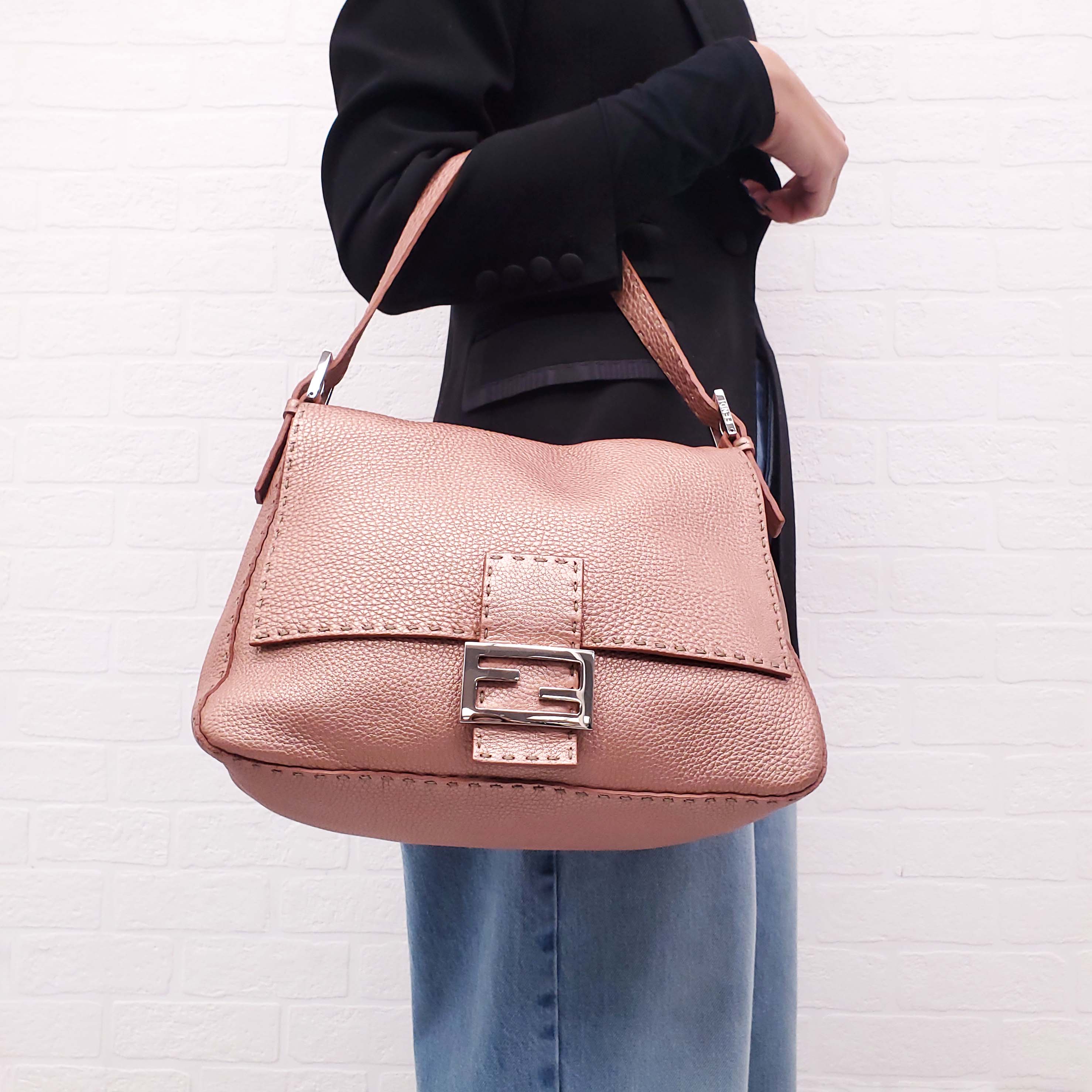 FENDI METALLIC PINK 'SELLERIA MAMMA BAGUETTE' SHOULDER BAG