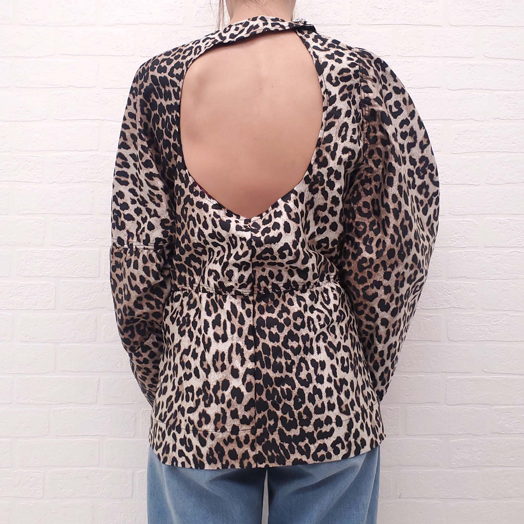 GANNI LEOPARD PEPLUM BLOUSE WITH CRYSTAL BUTTON - SIZE 44