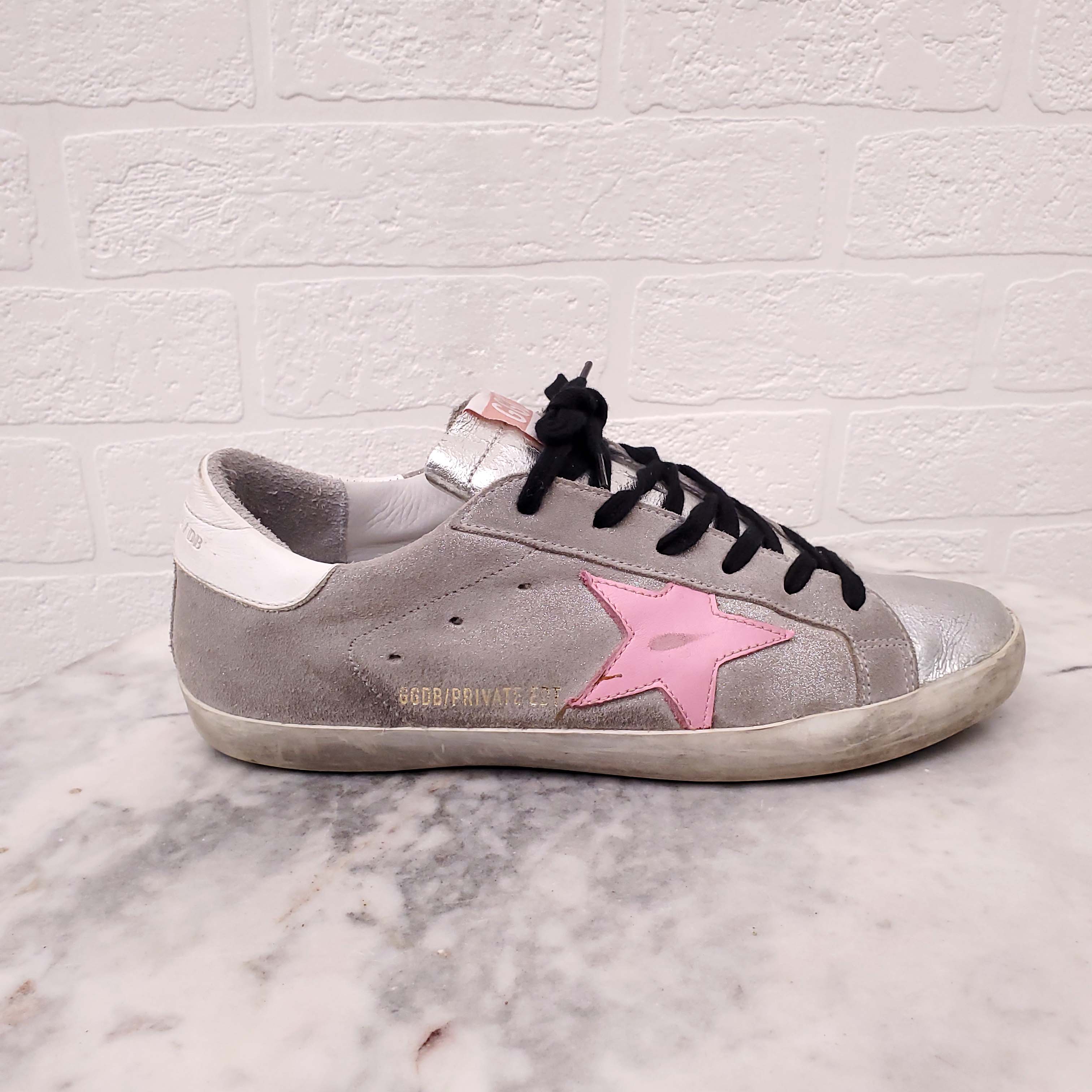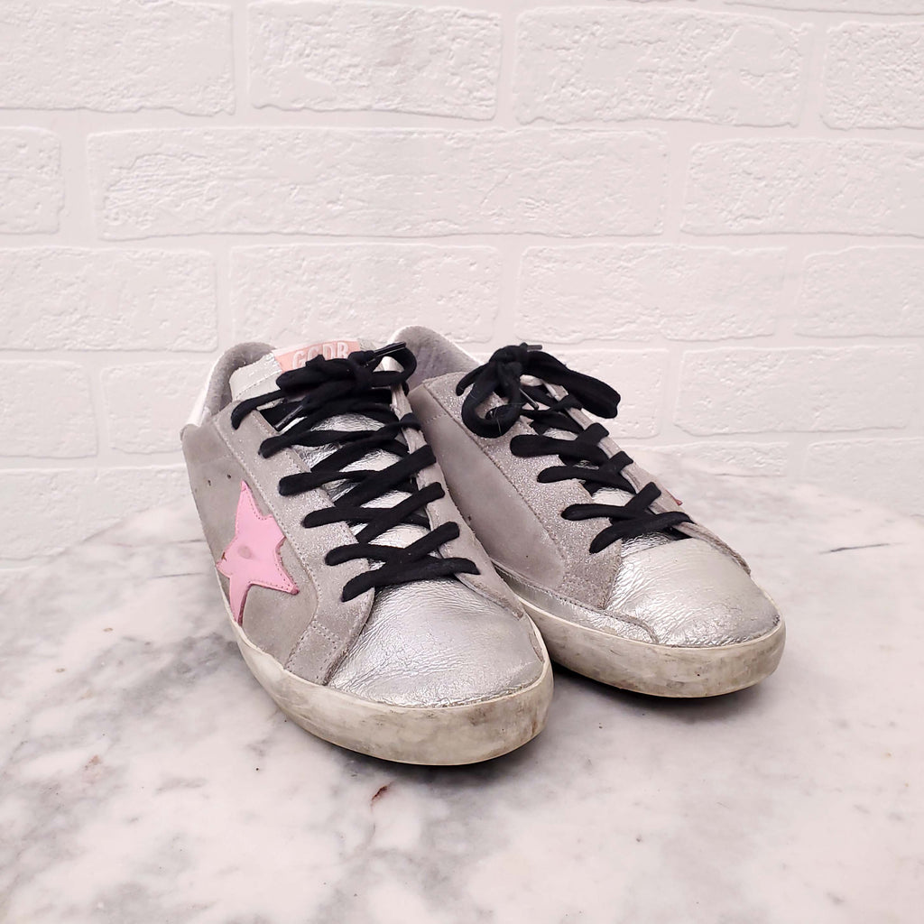 GOLDEN GOOSE SILVER SUPERSTARS WITH PINK STAR - SIZE 38