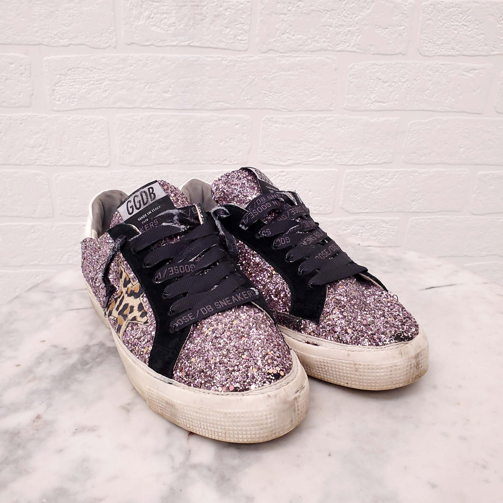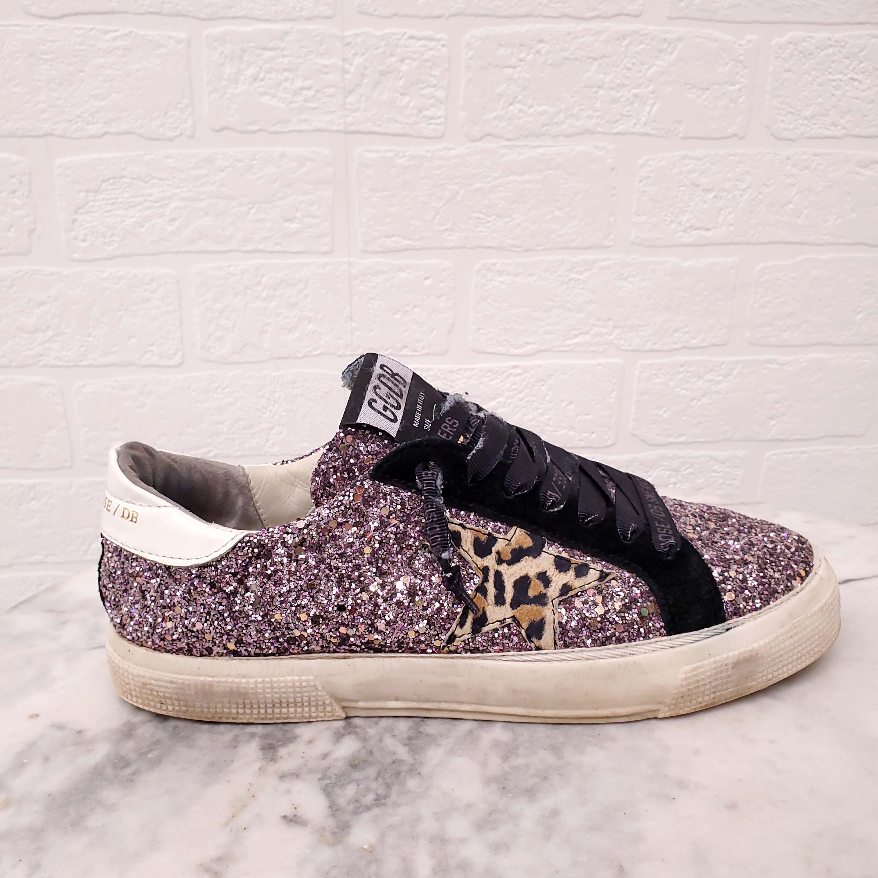 GOLDEN GOOSE MAY PURPLE SEQUIN SNEAKERS - SIZE 39