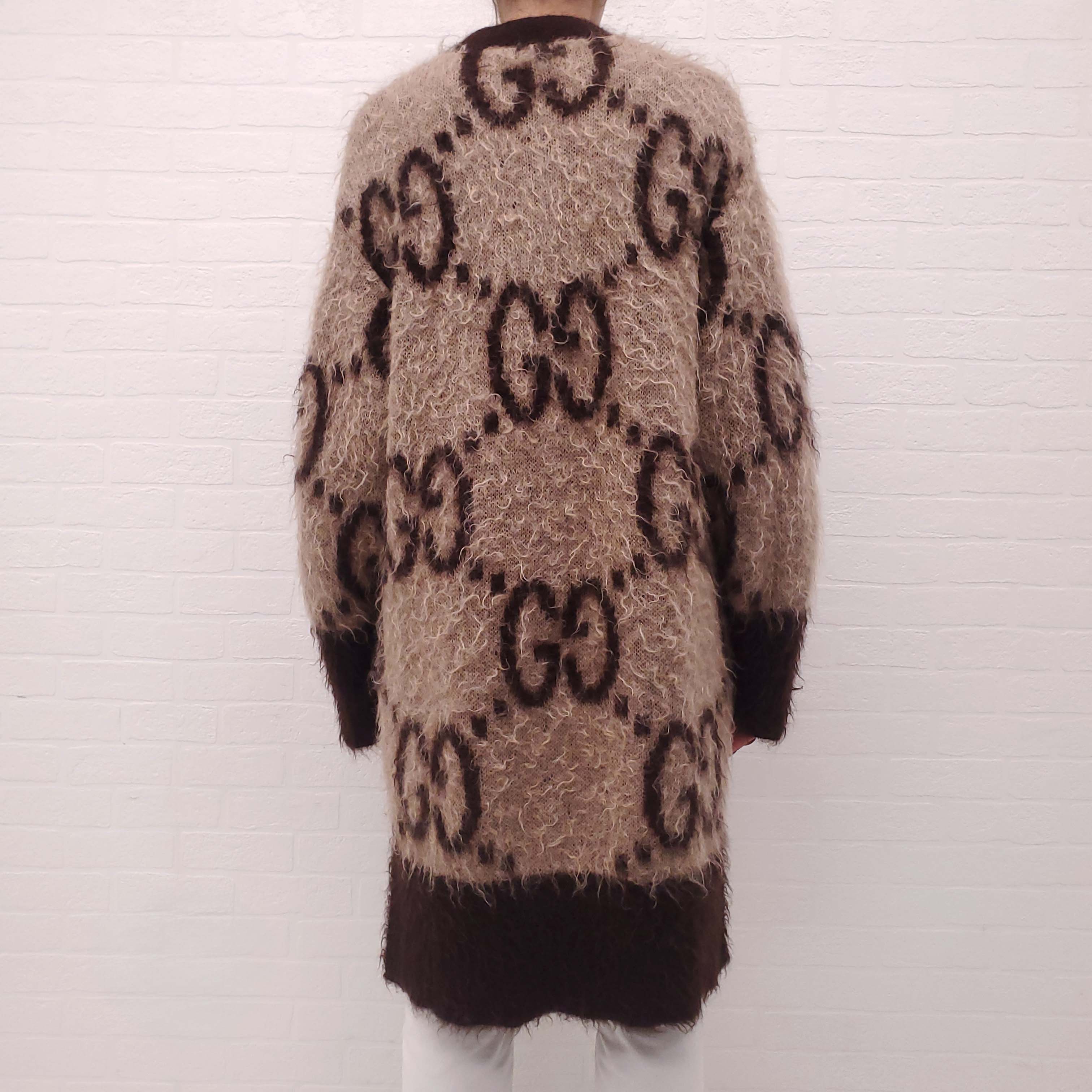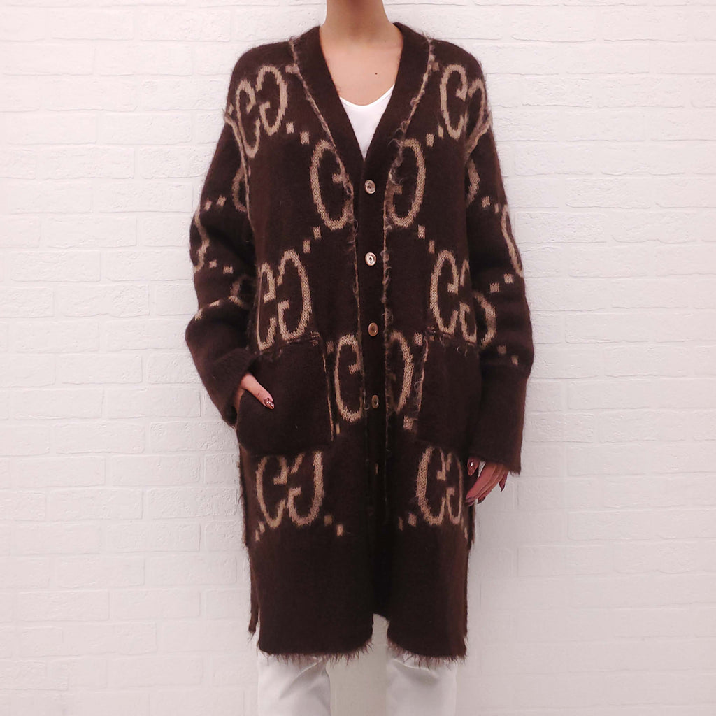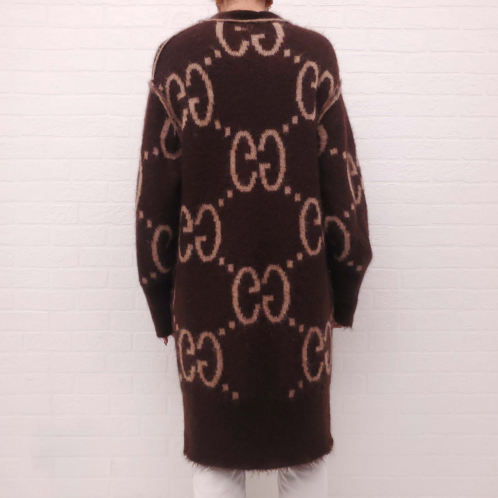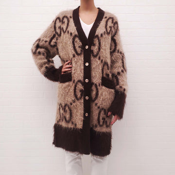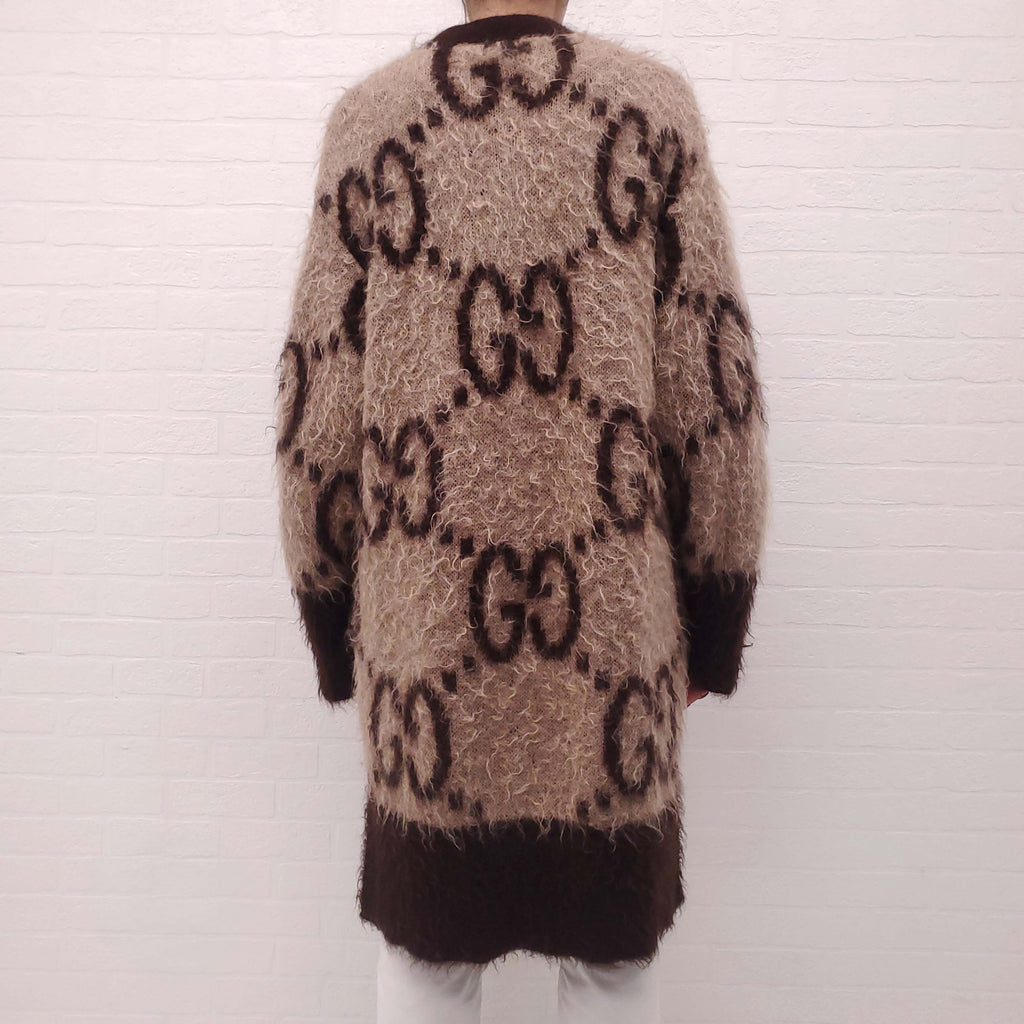 GUCCI 2024 RUNWAY MOHAIR MONOGRAM REVERSIBLE CARDIGAN - SIZE S