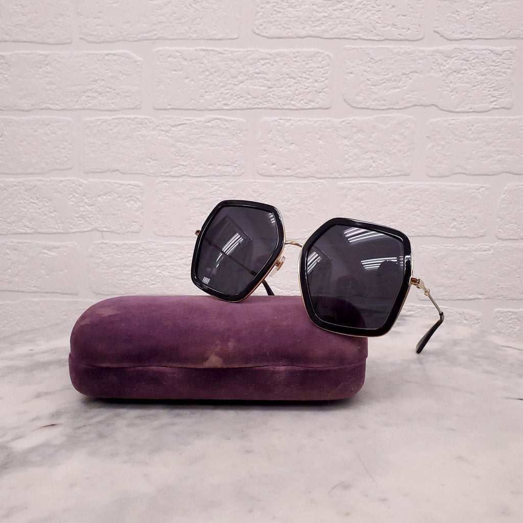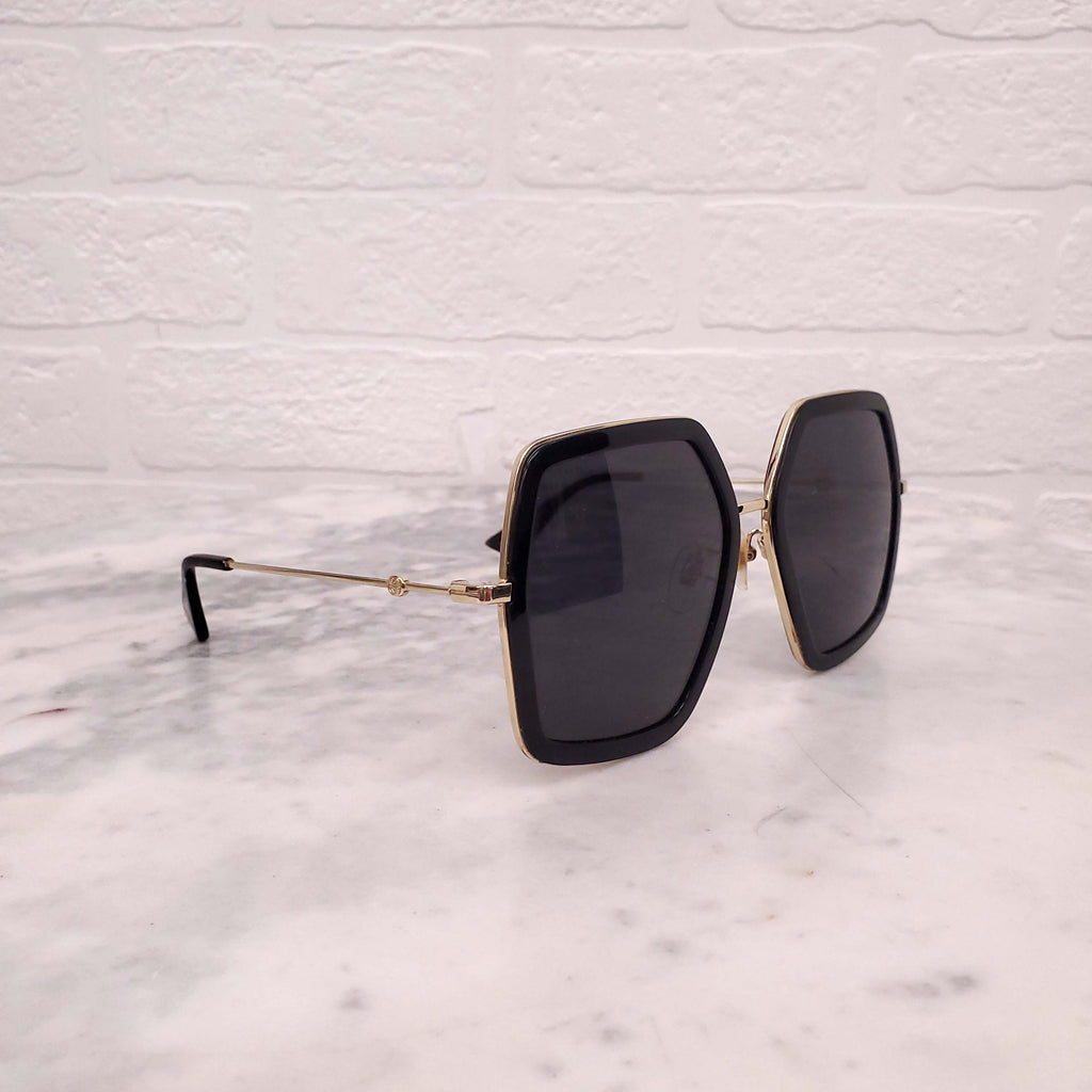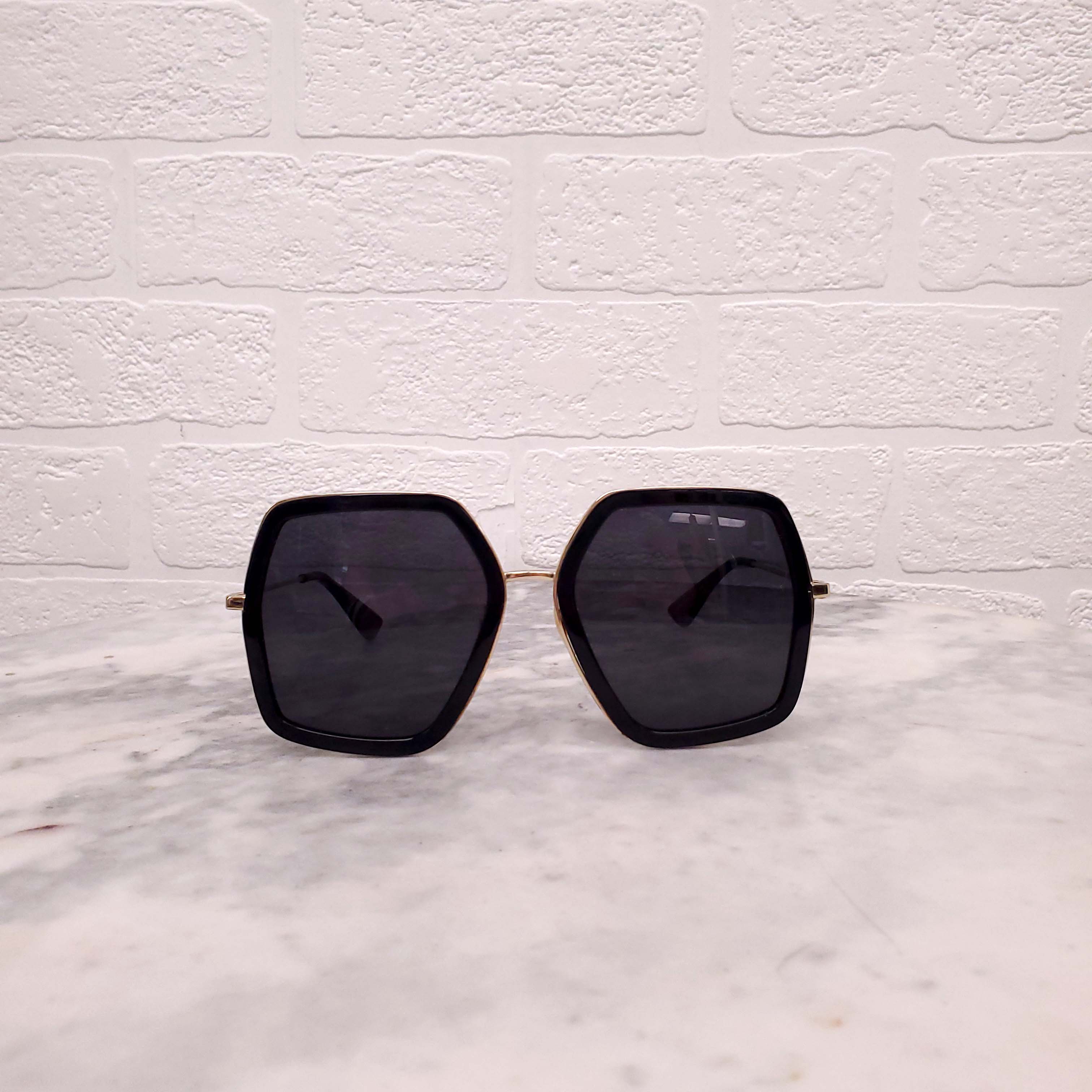 GUCCI BLACK AND GOLD OVERSIZED METAL SUNGLASSES