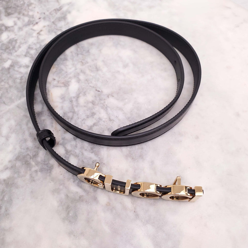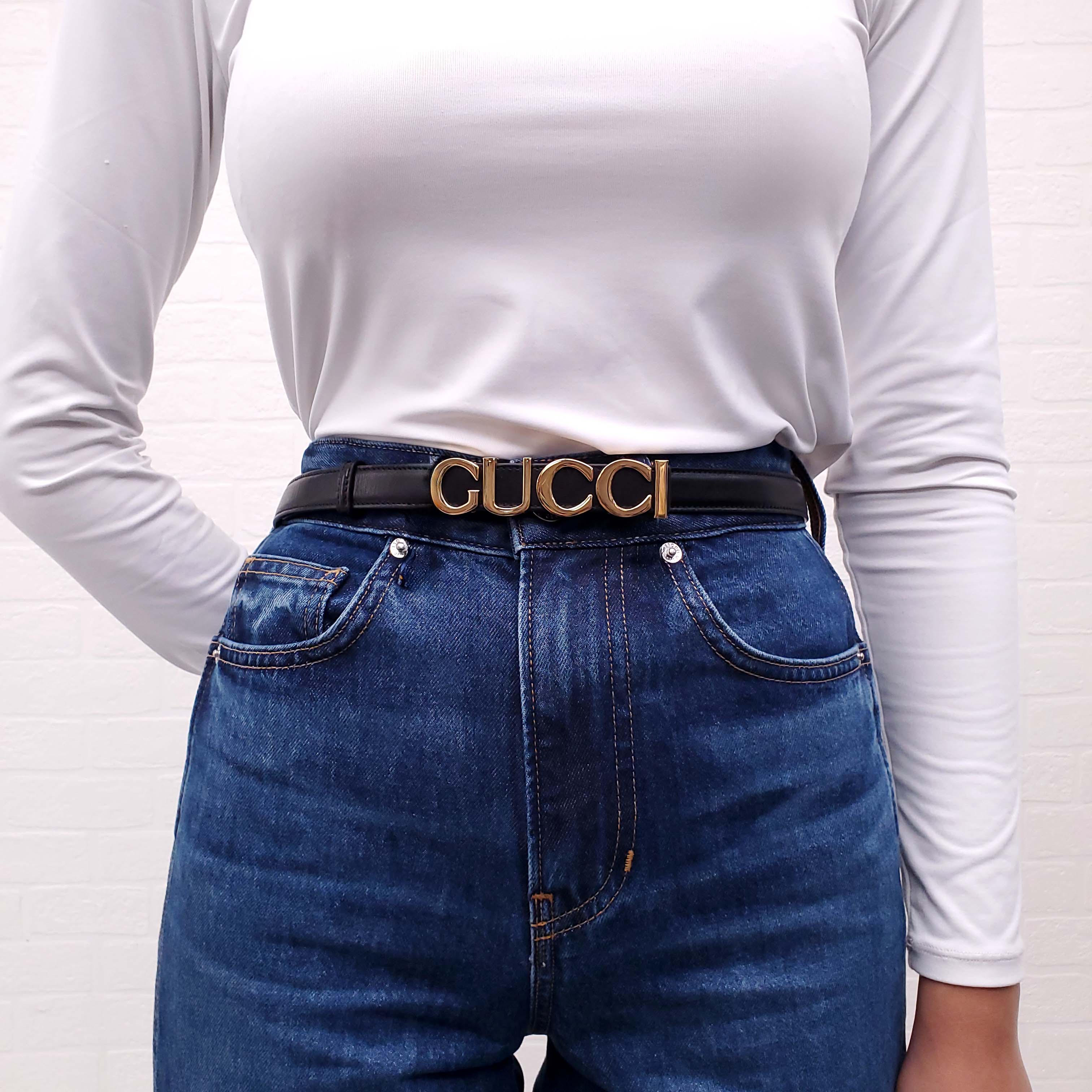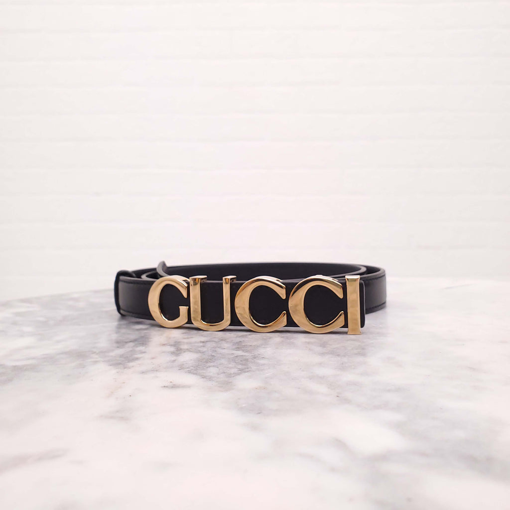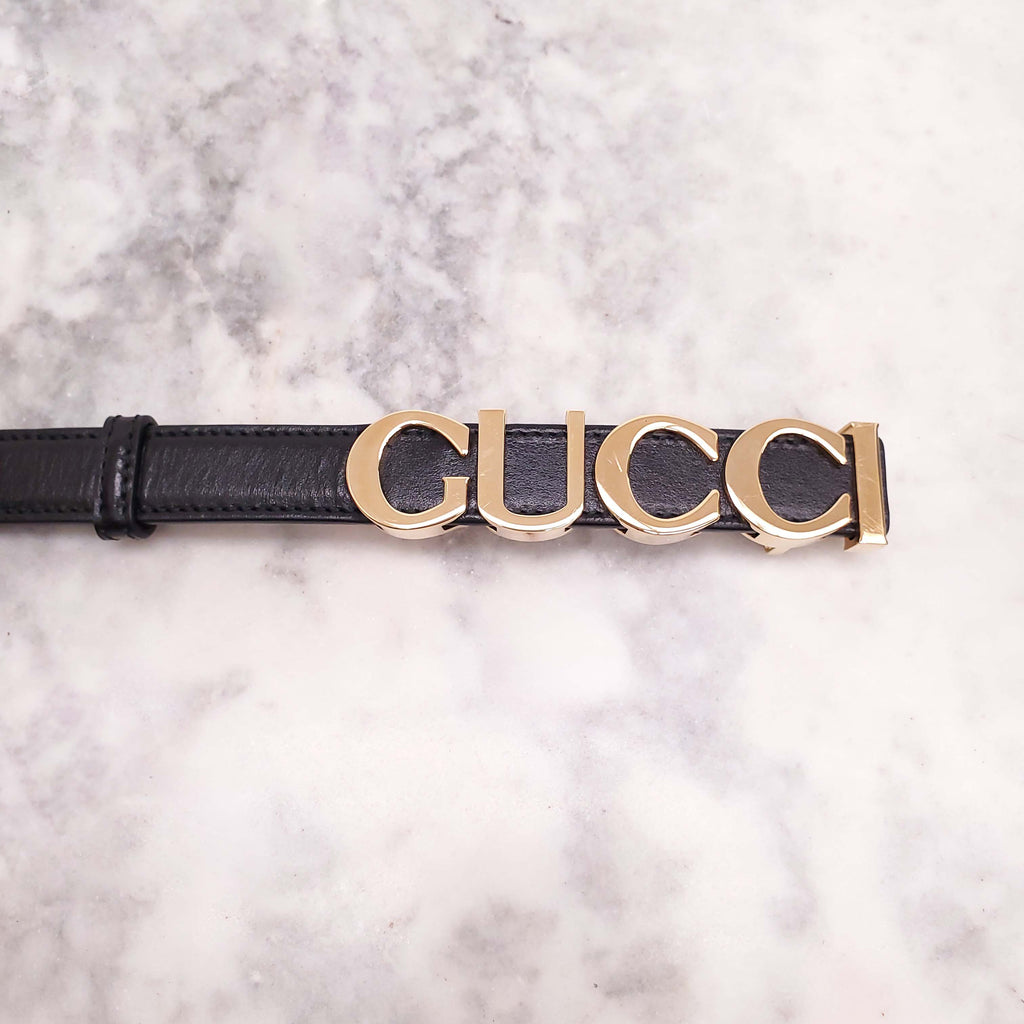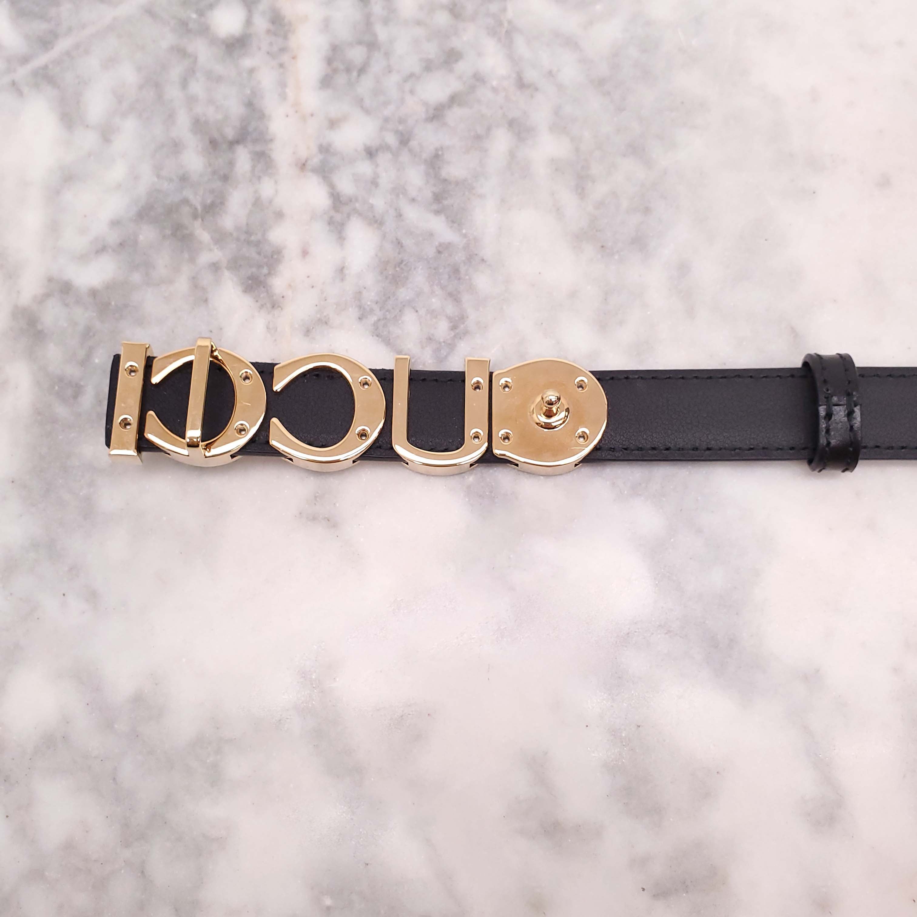 GUCCI BLACK LEATHER LOGO BELT - SIZE 85