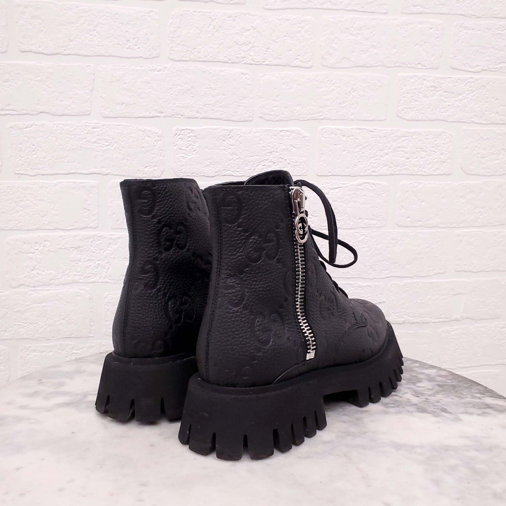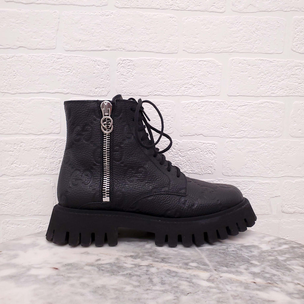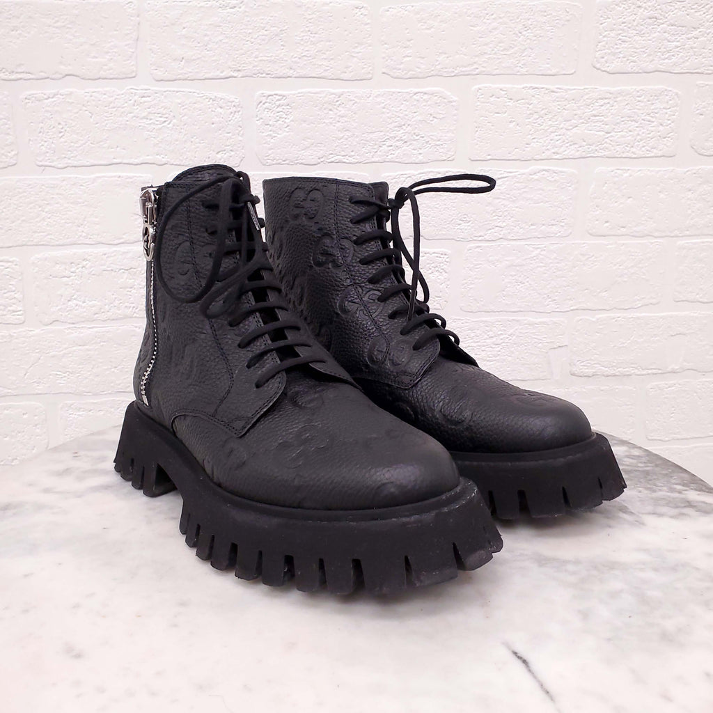 GUCCI BLACK LOGO MOTORCYCLE BOOTS - SIZE 38