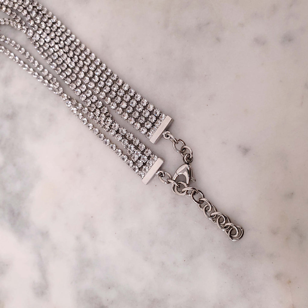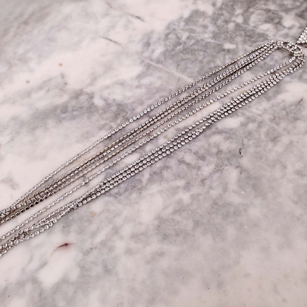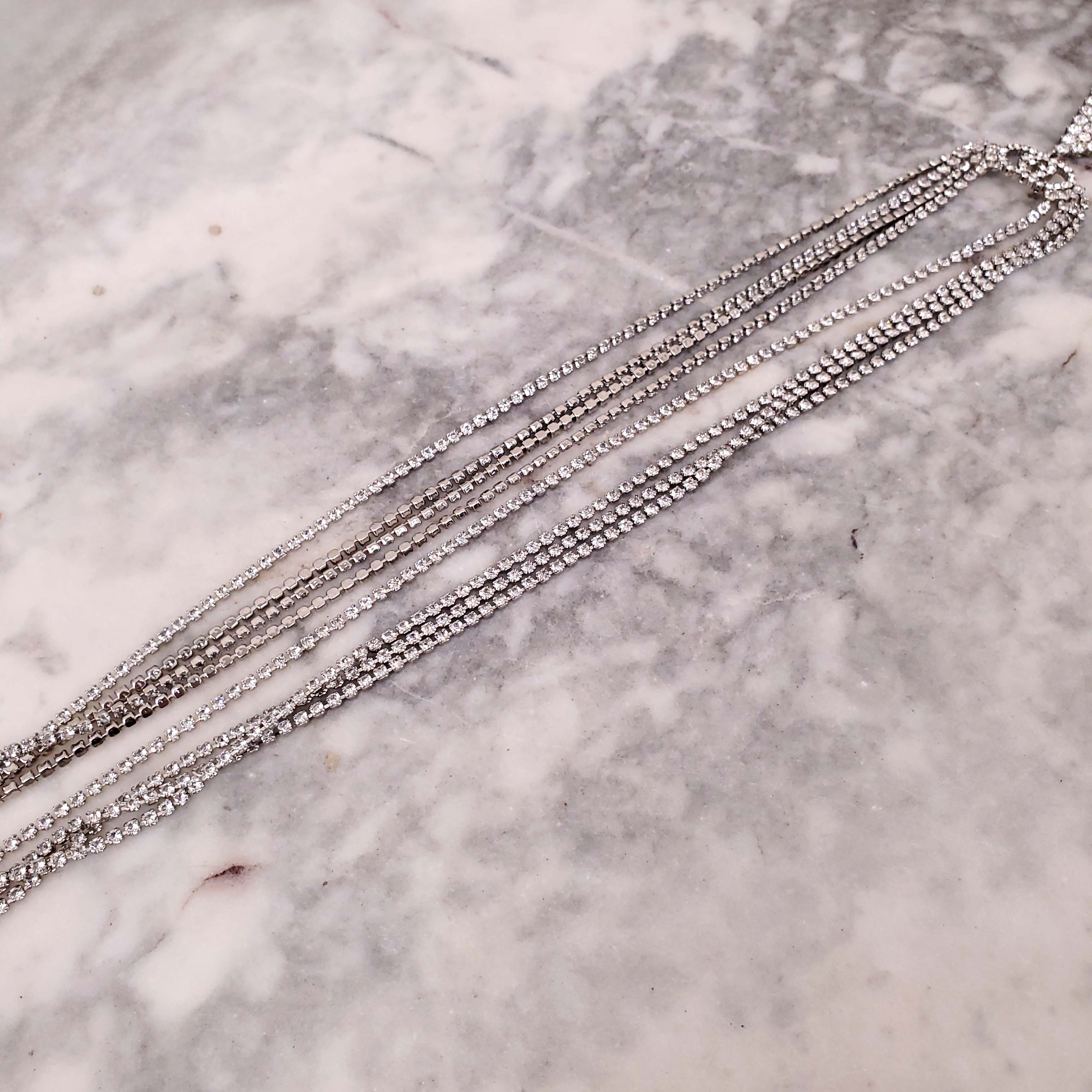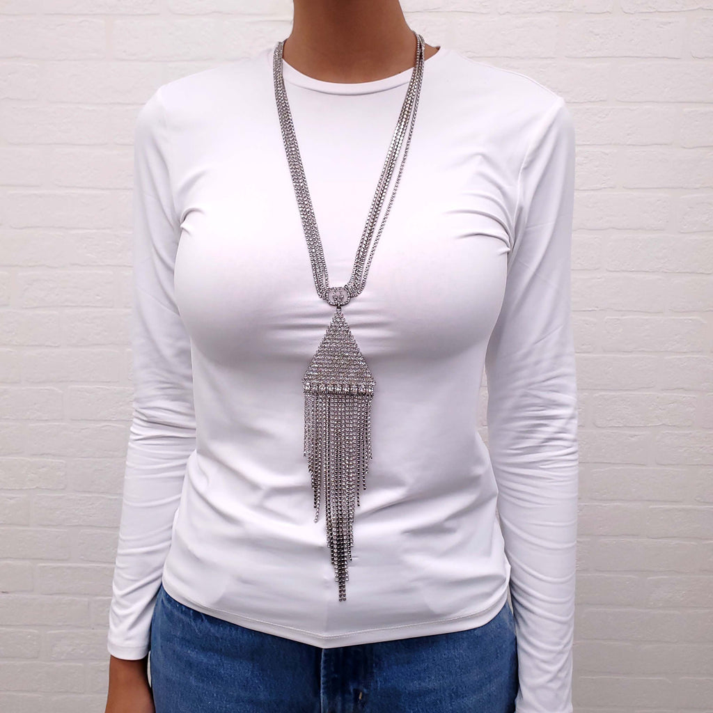 GUCCI CRYSTAL LOGO TRIANGLE FRINGE NECKLACE