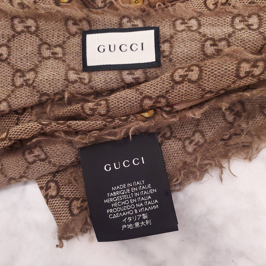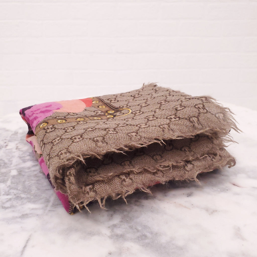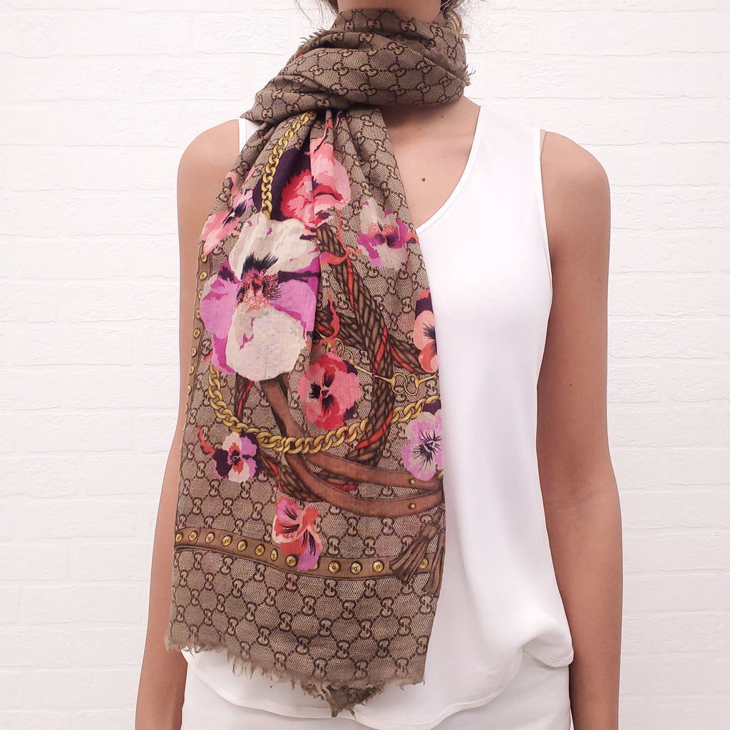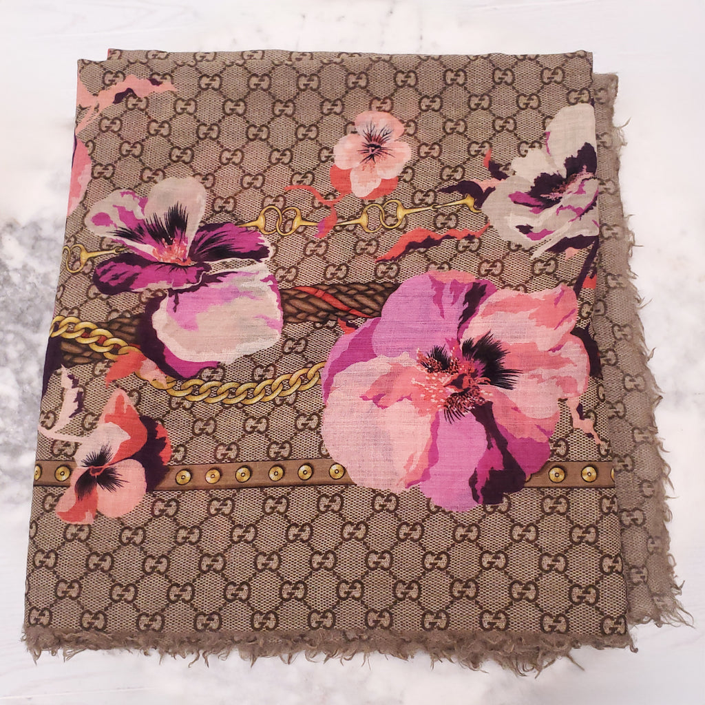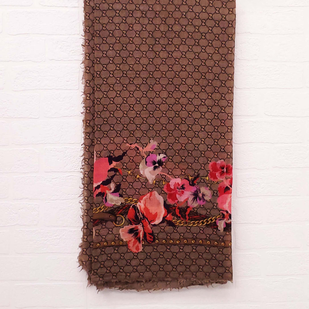 GUCCI LOGO SCARF WITH FLORAL PRINT