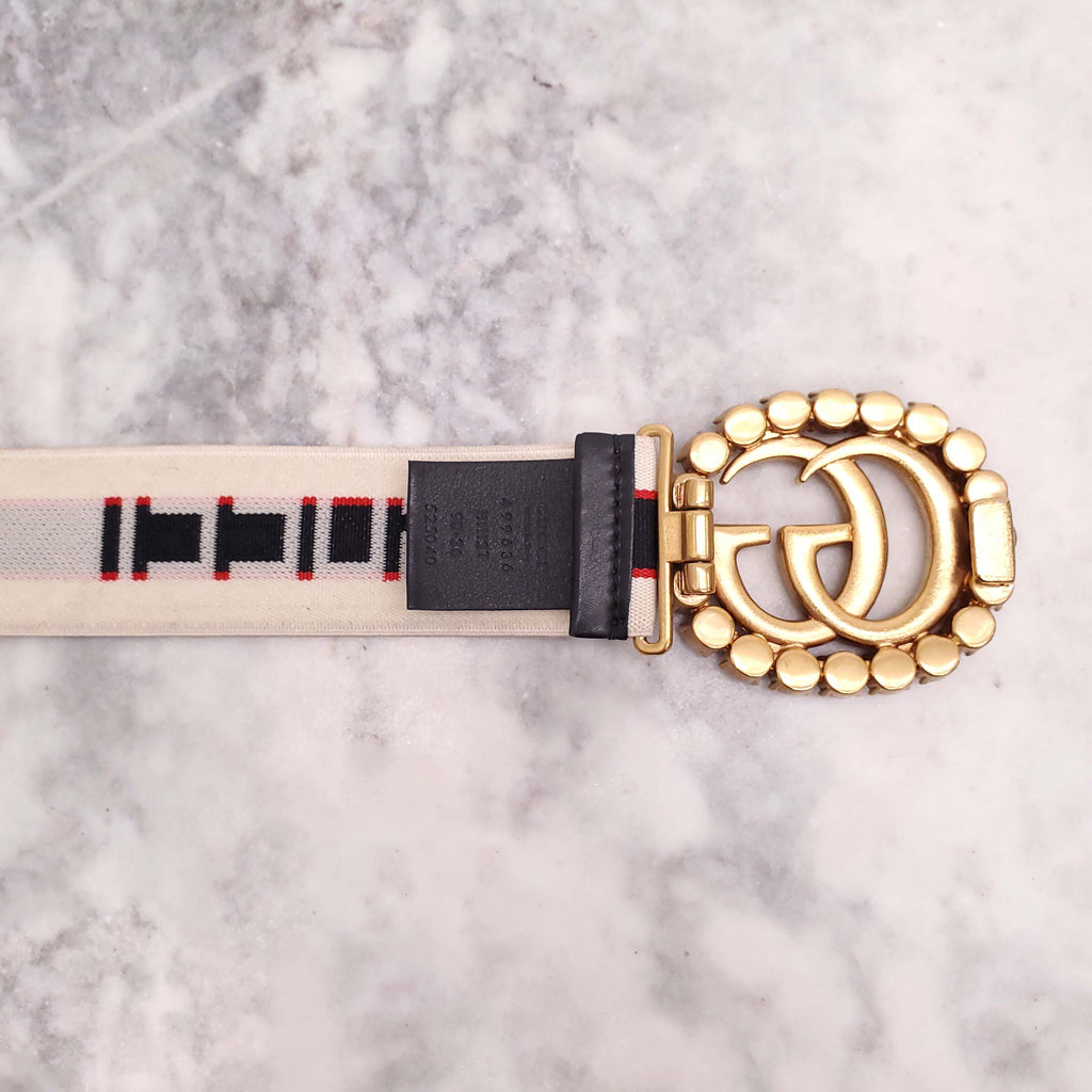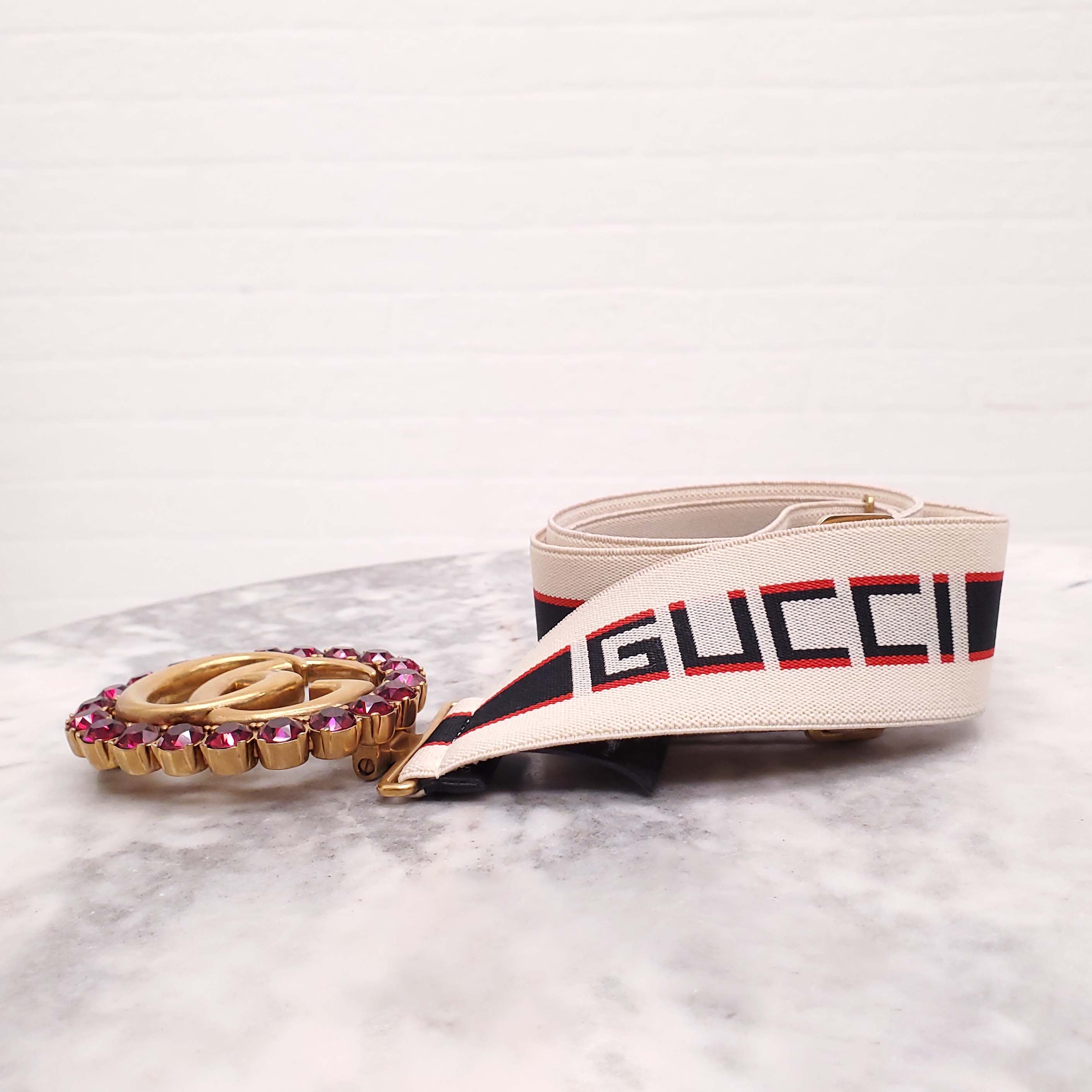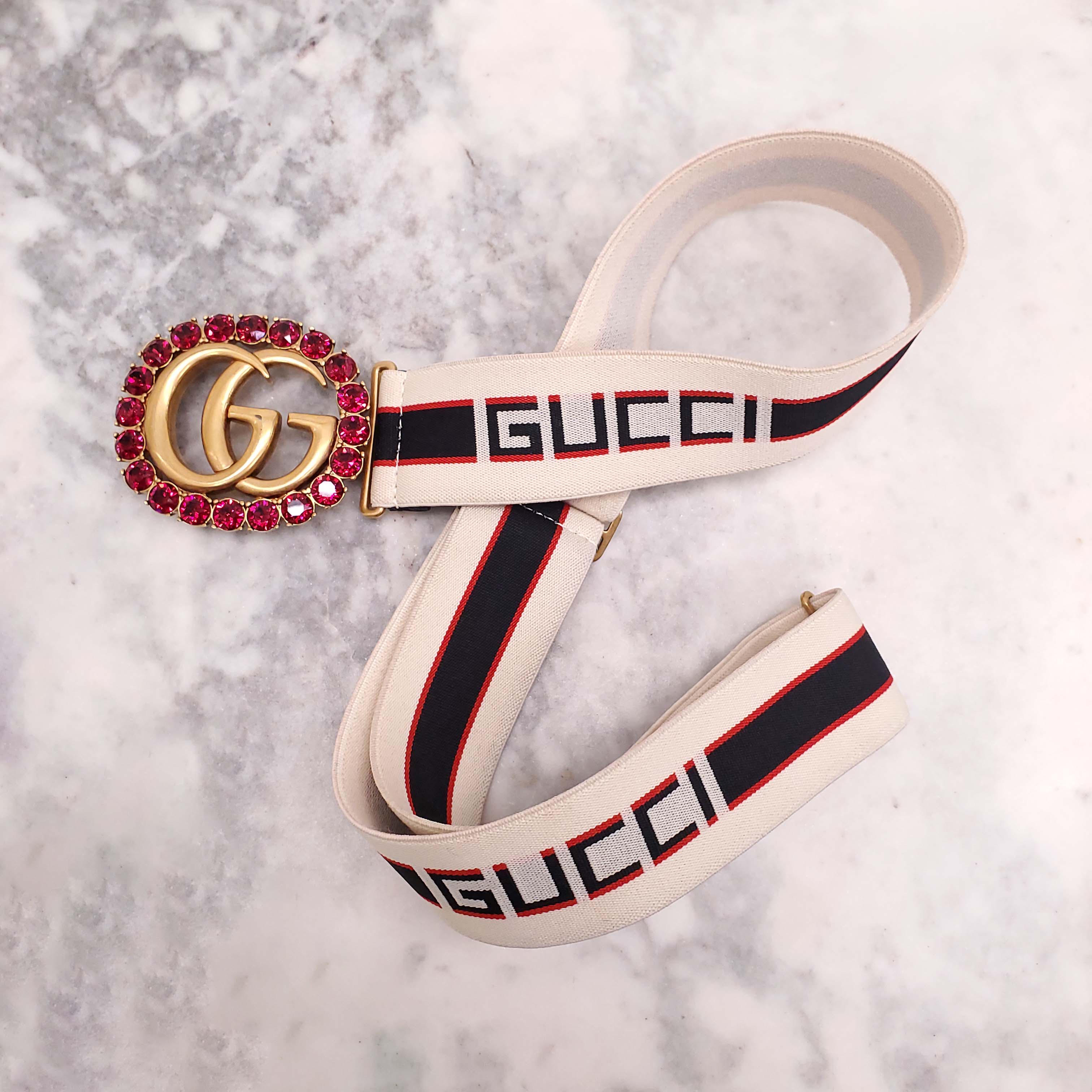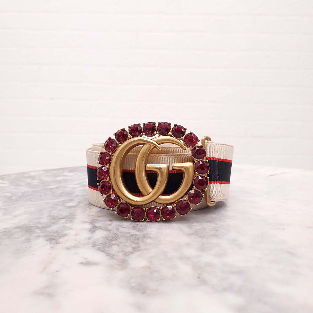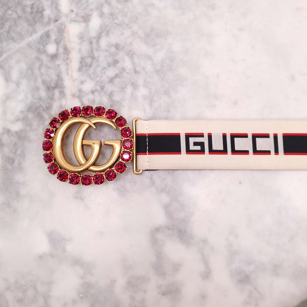 GUCCI RED CRYSTAL MARMONT DOUBLE STRIPE ADJUSTABLE ELASTIC BELT