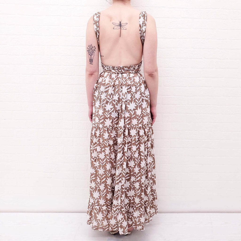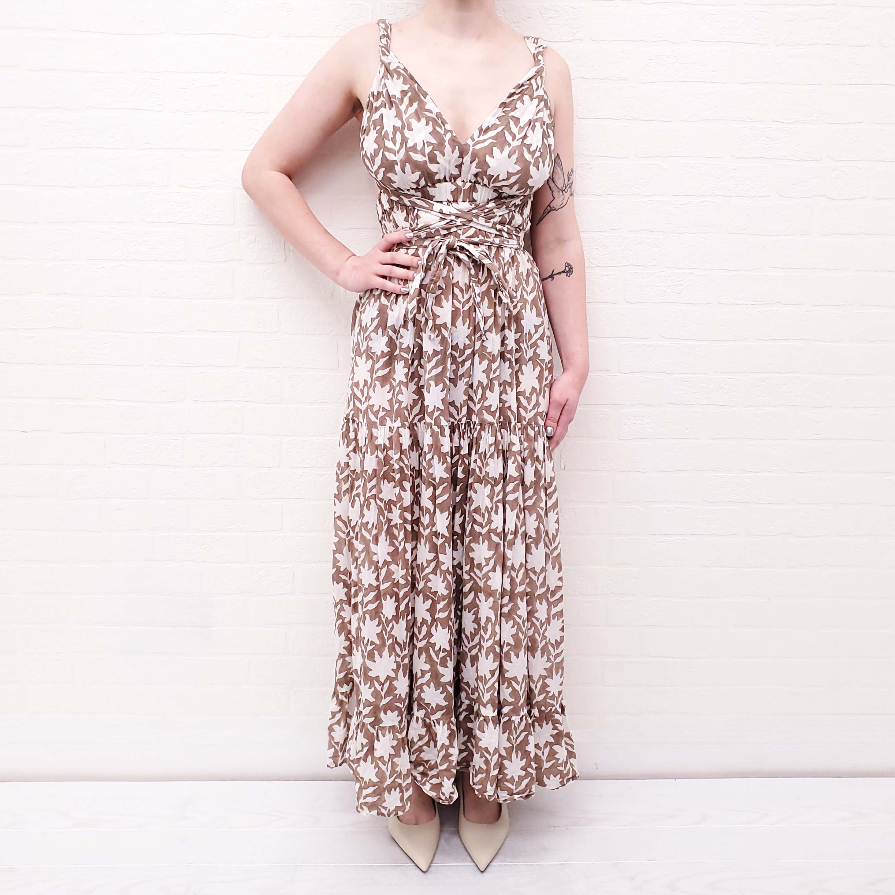 HANNAH BROWN AND CREAM PATTERNED DRESS - SIZE 1