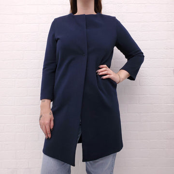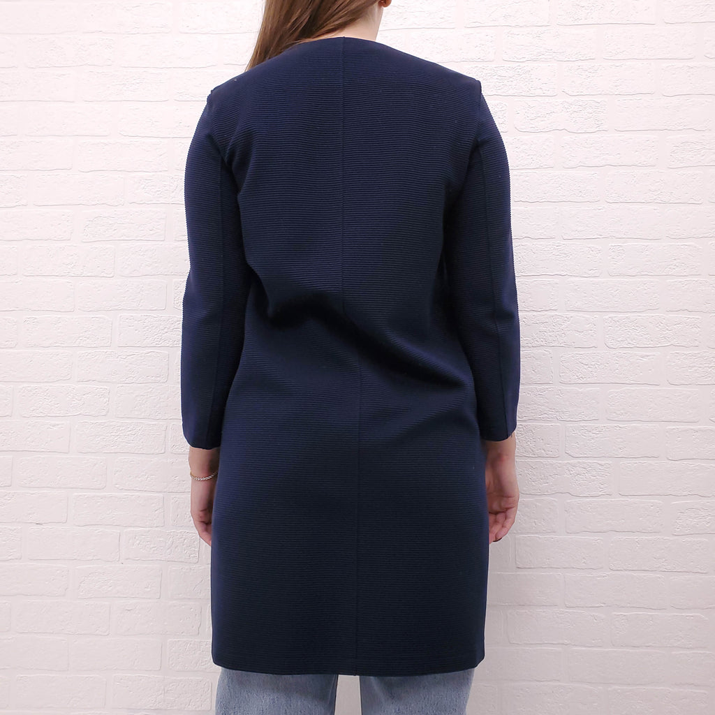 HARRIS WHARF LONDON NAVY RIBBED COTTON COAT - SIZE 44