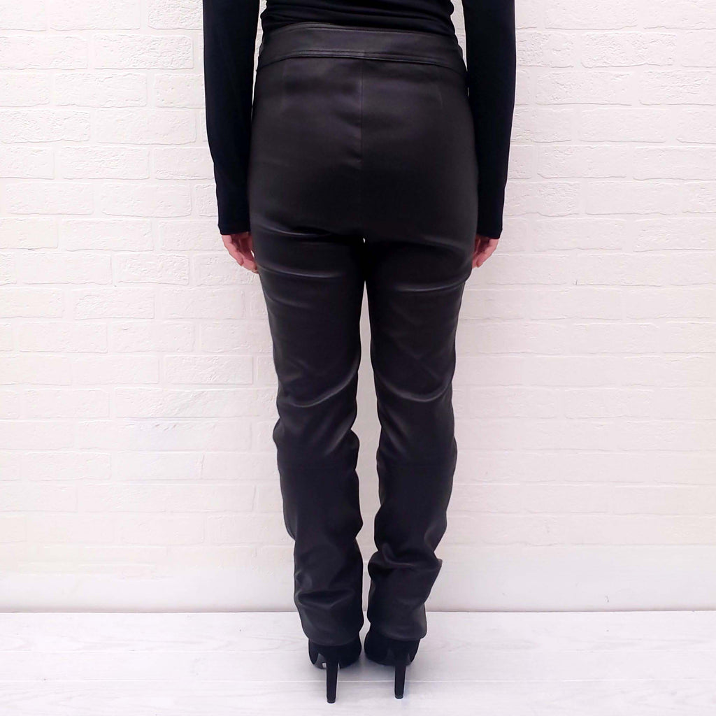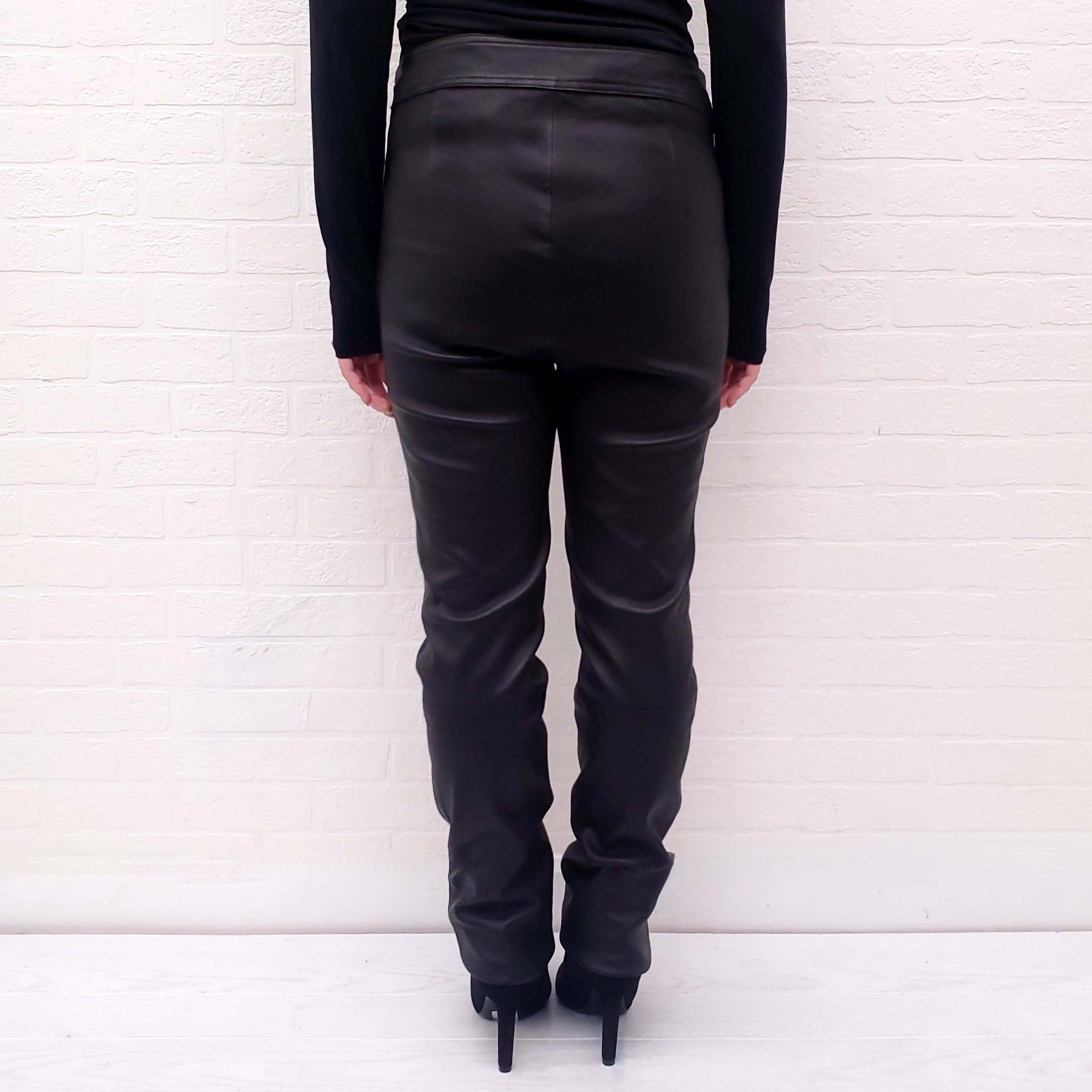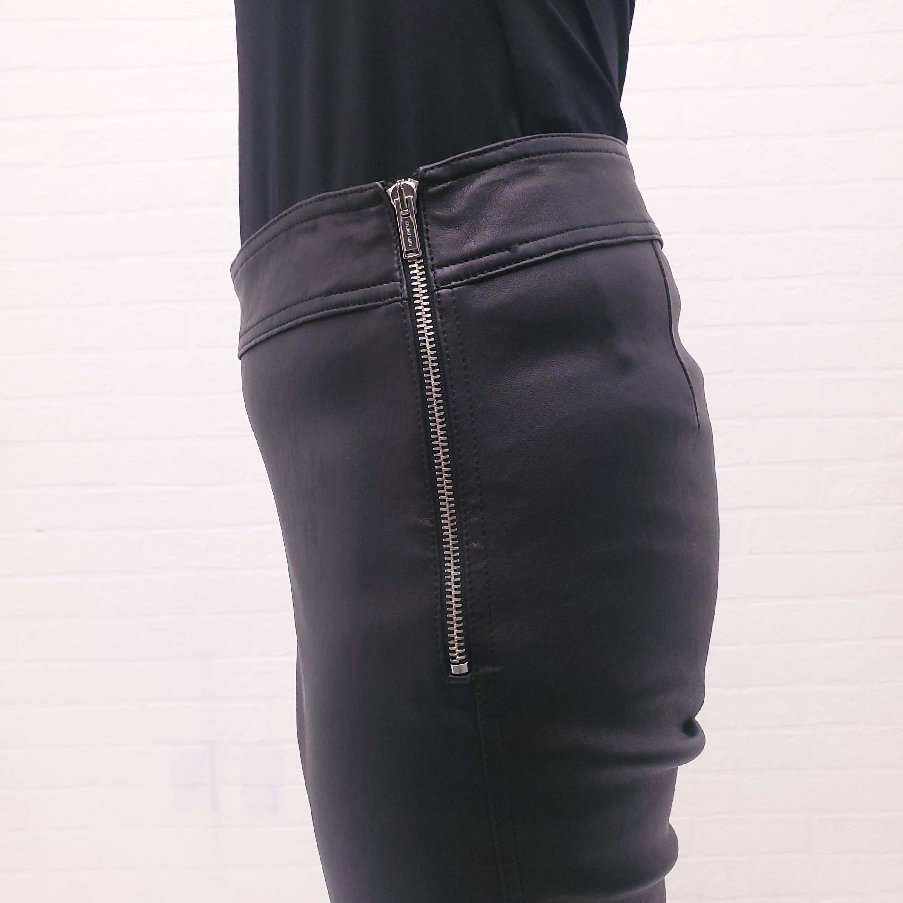 HELMUT LANG BLACK LEATHER PANTS WITH SIDE ZIPPER - SIZE 10