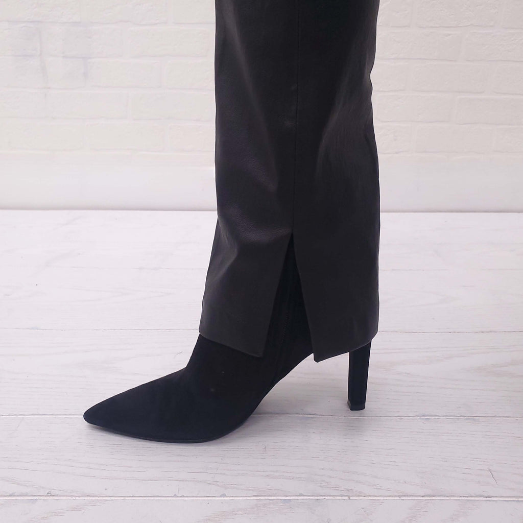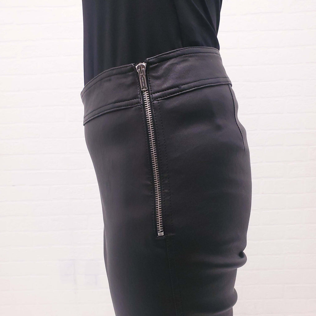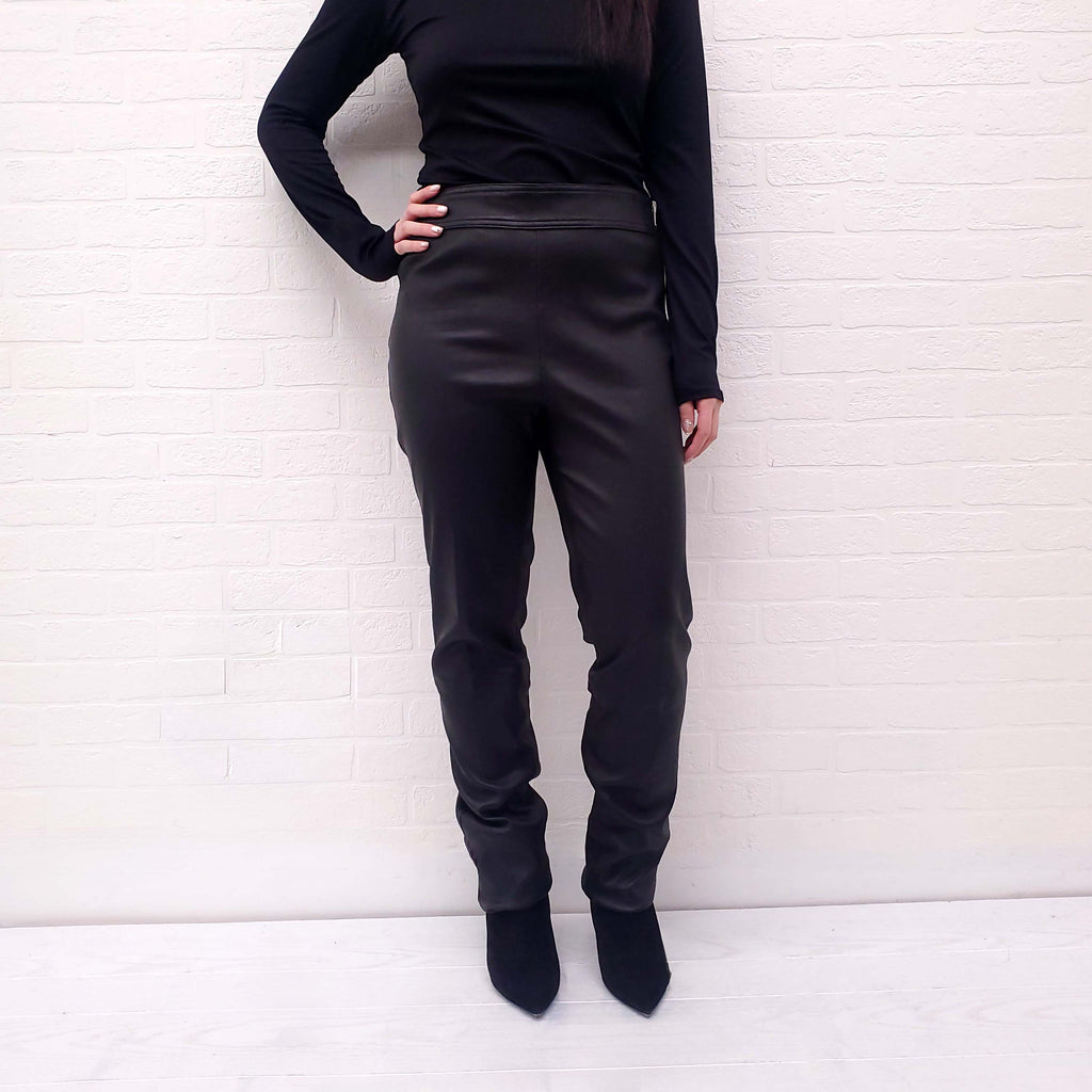 HELMUT LANG BLACK LEATHER PANTS WITH SIDE ZIPPER - SIZE 10