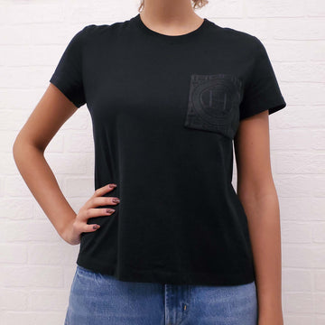 HERMÈS BLACK T-SHIRT WITH LOGO POCKET - SIZE 40