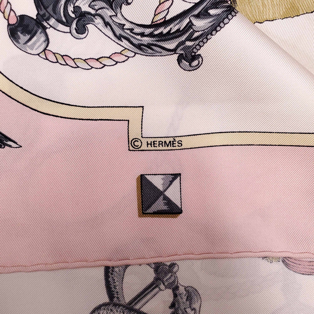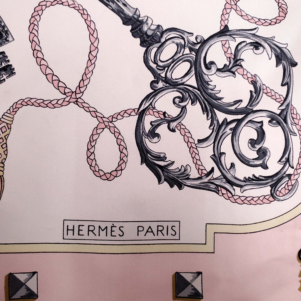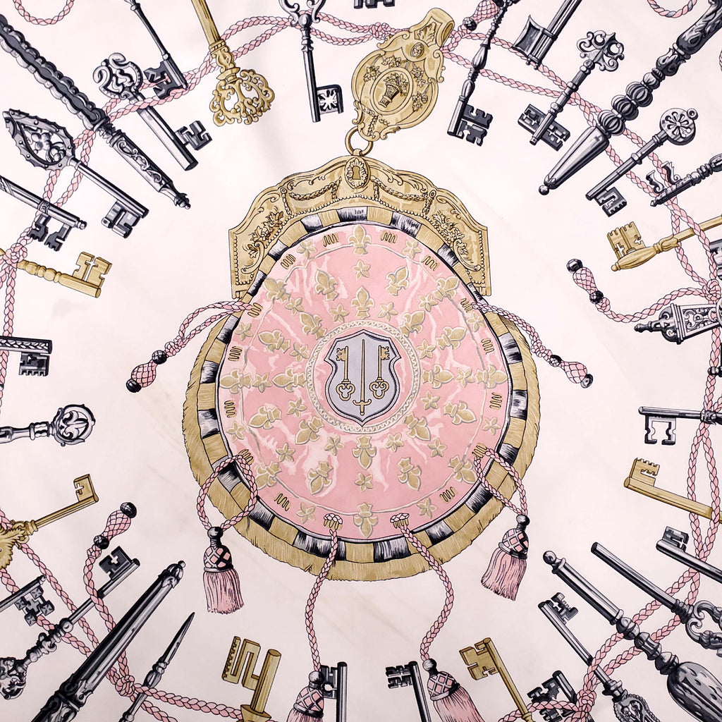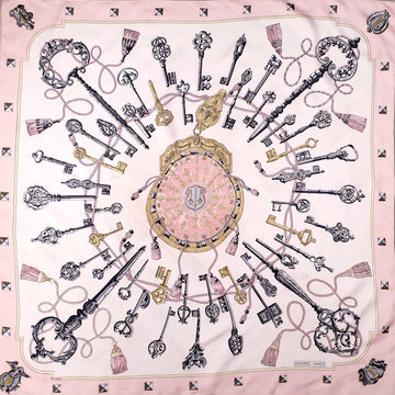HERMÈS CREAM AND PINK KEY PRINT SILK SCARF