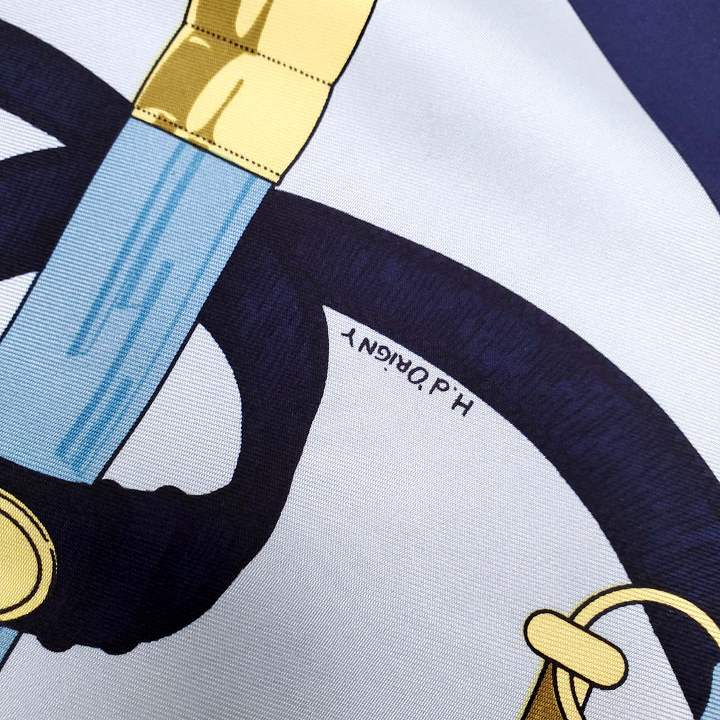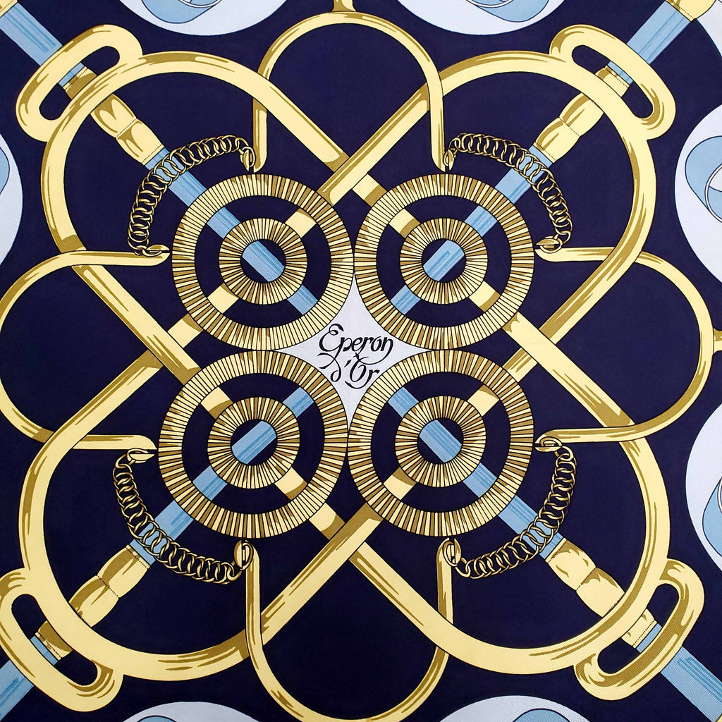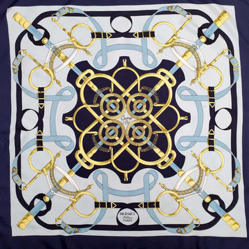 HERMÈS NAVY AND BABY BLUE 'EPERON' SILK SCARF