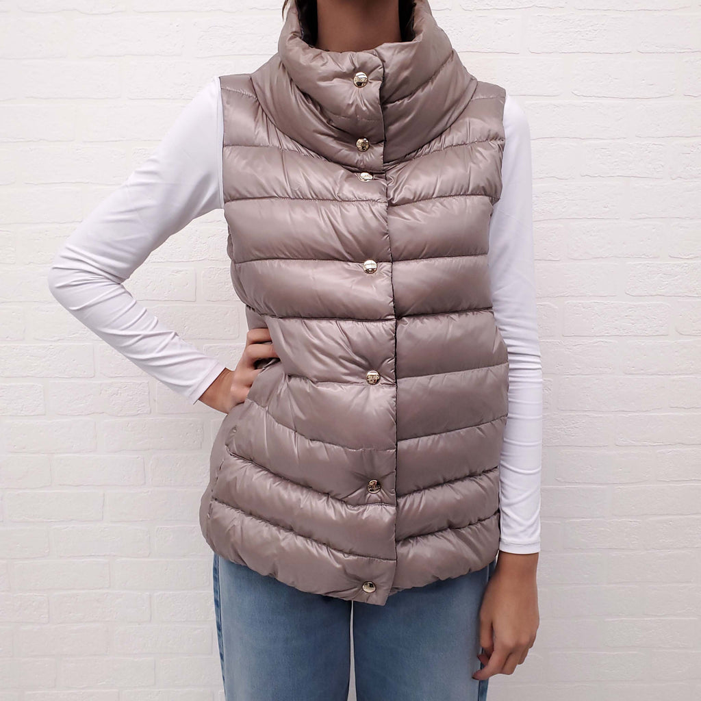 HERNO ARMY GREEN AND BEIGE REVERSIBLE PUFFER VEST - SIZE 42