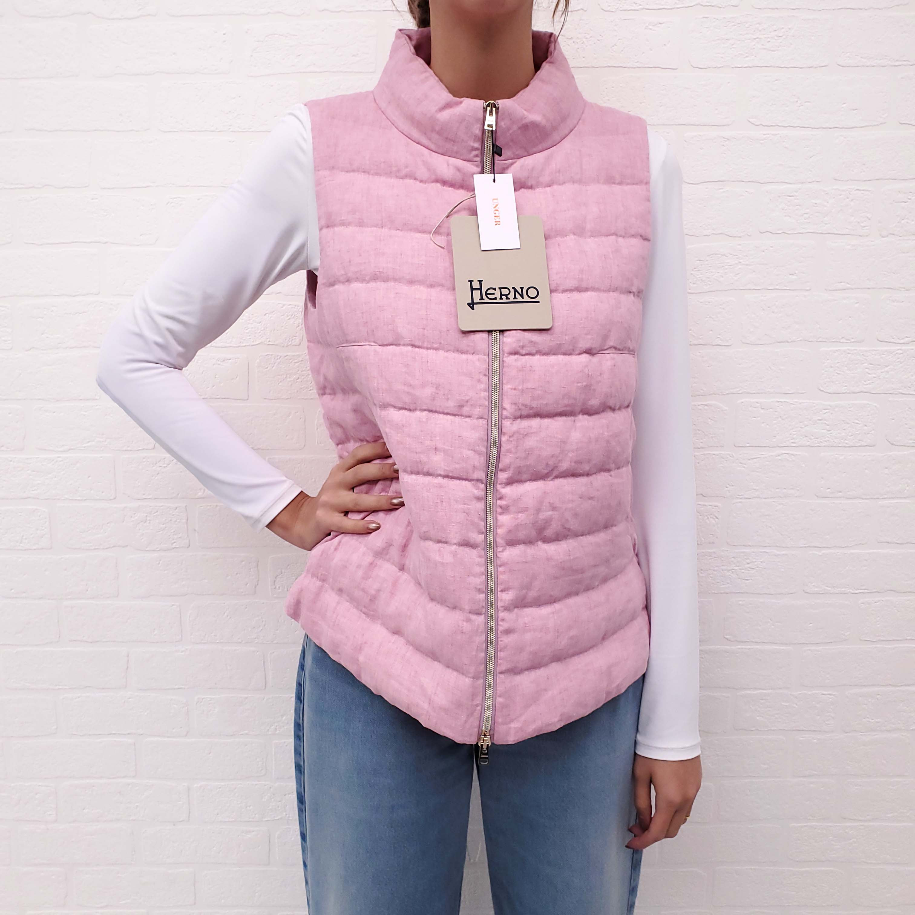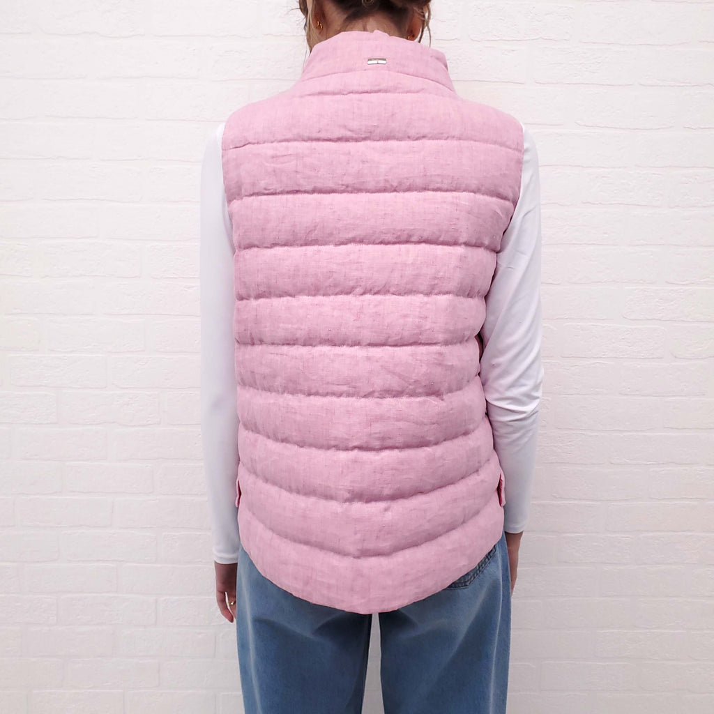 HERNO PINK LINEN PUFFER VEST - SIZE 42