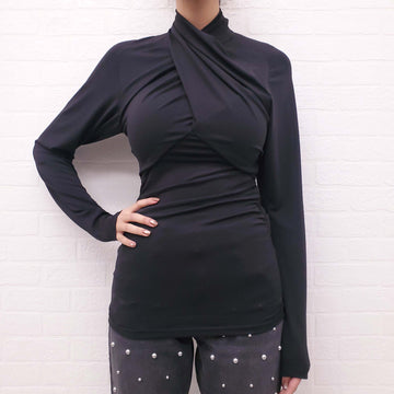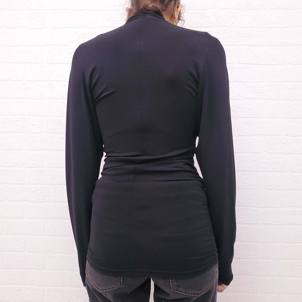 ISABEL MARANT BLACK CROSSOVER LONG SLEEVE BLOUSE - SIZE 38