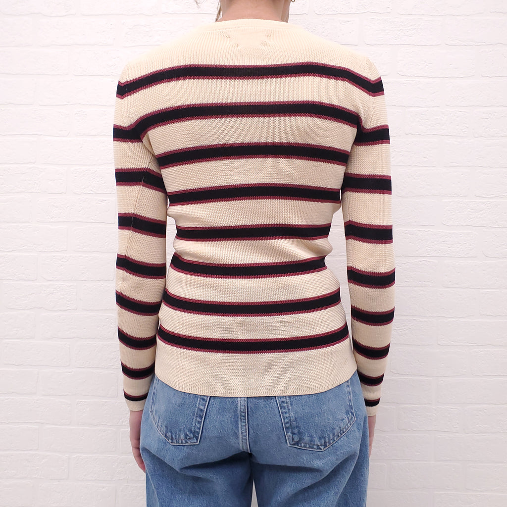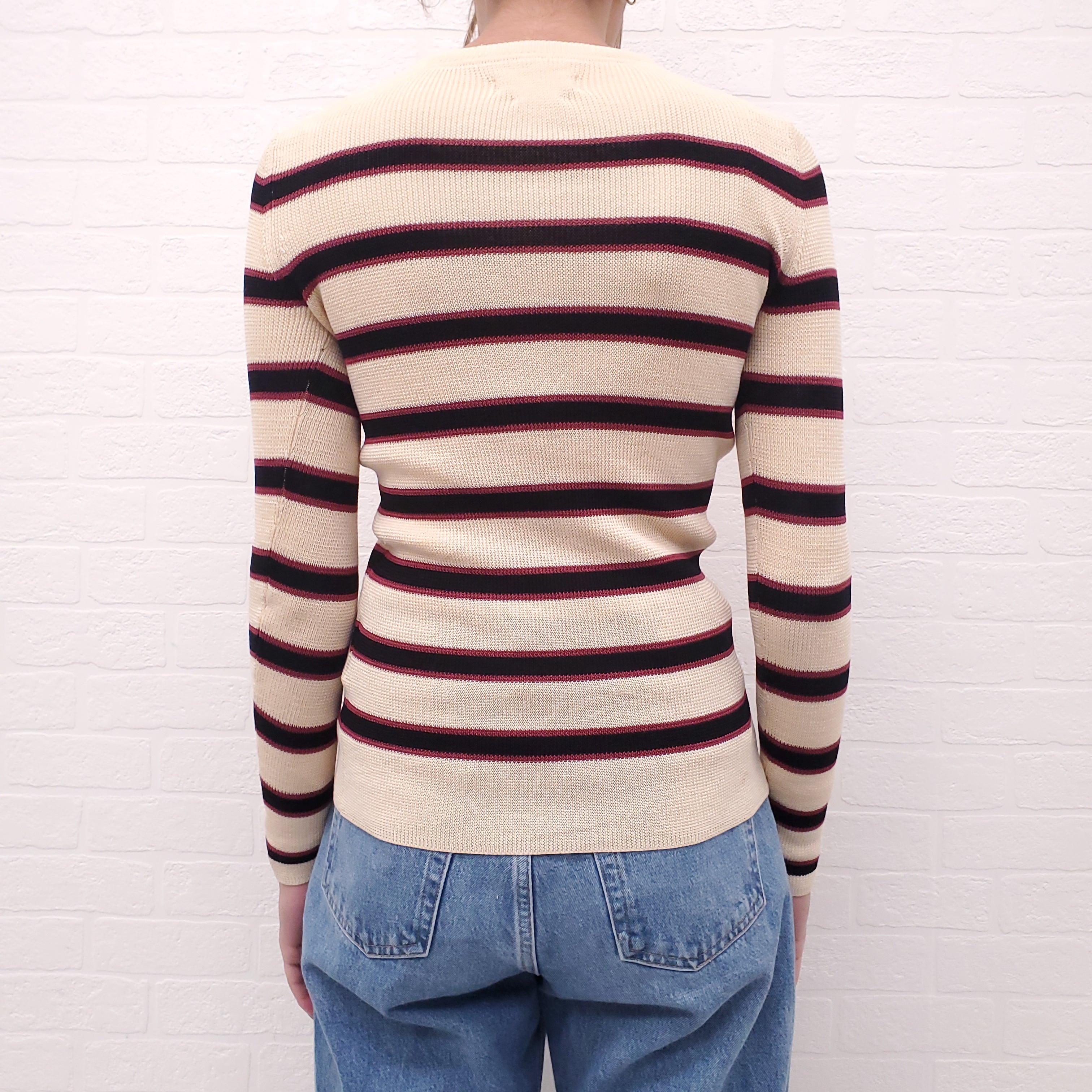 ISABEL MARANT ÉTOILE CREAM, BURGUNDY AND BLACK STRIPED SWEATER - SIZE 36