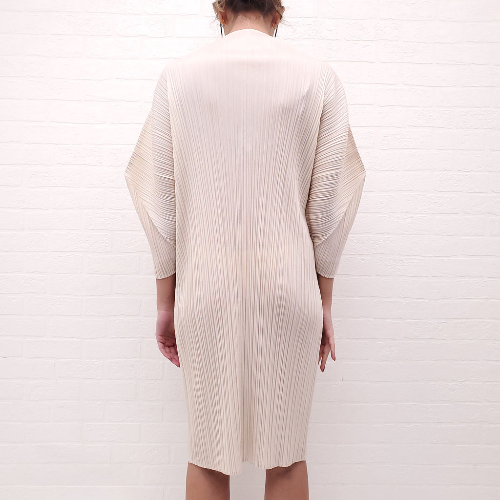 ISSEY MIYAKE CREAM 'PLEATS PLEASE' DRESS - SIZE 5/L