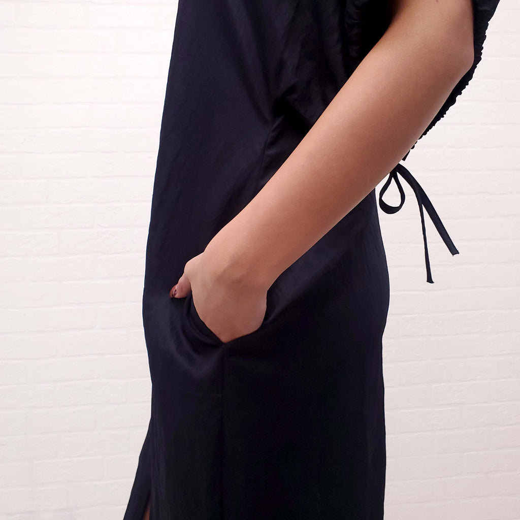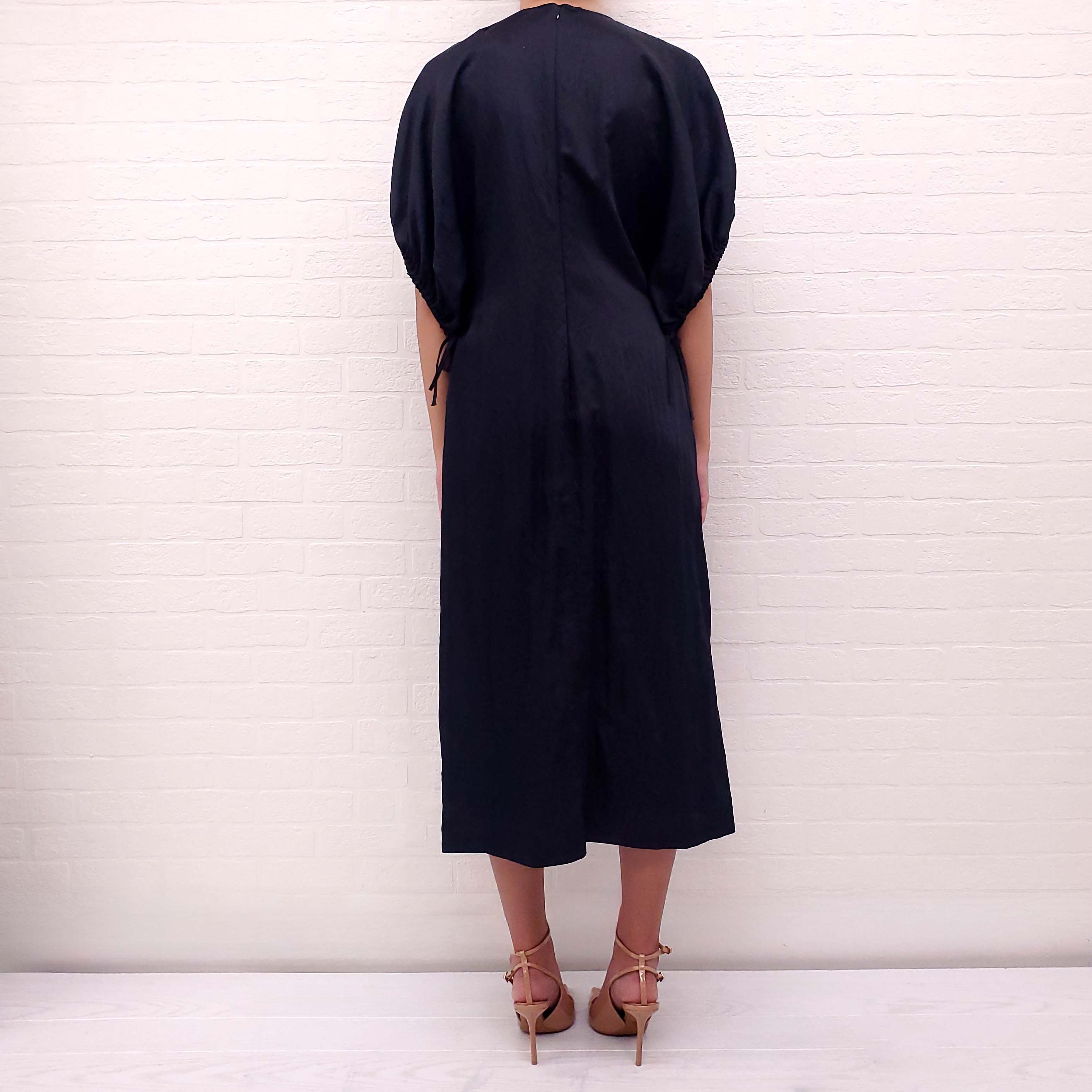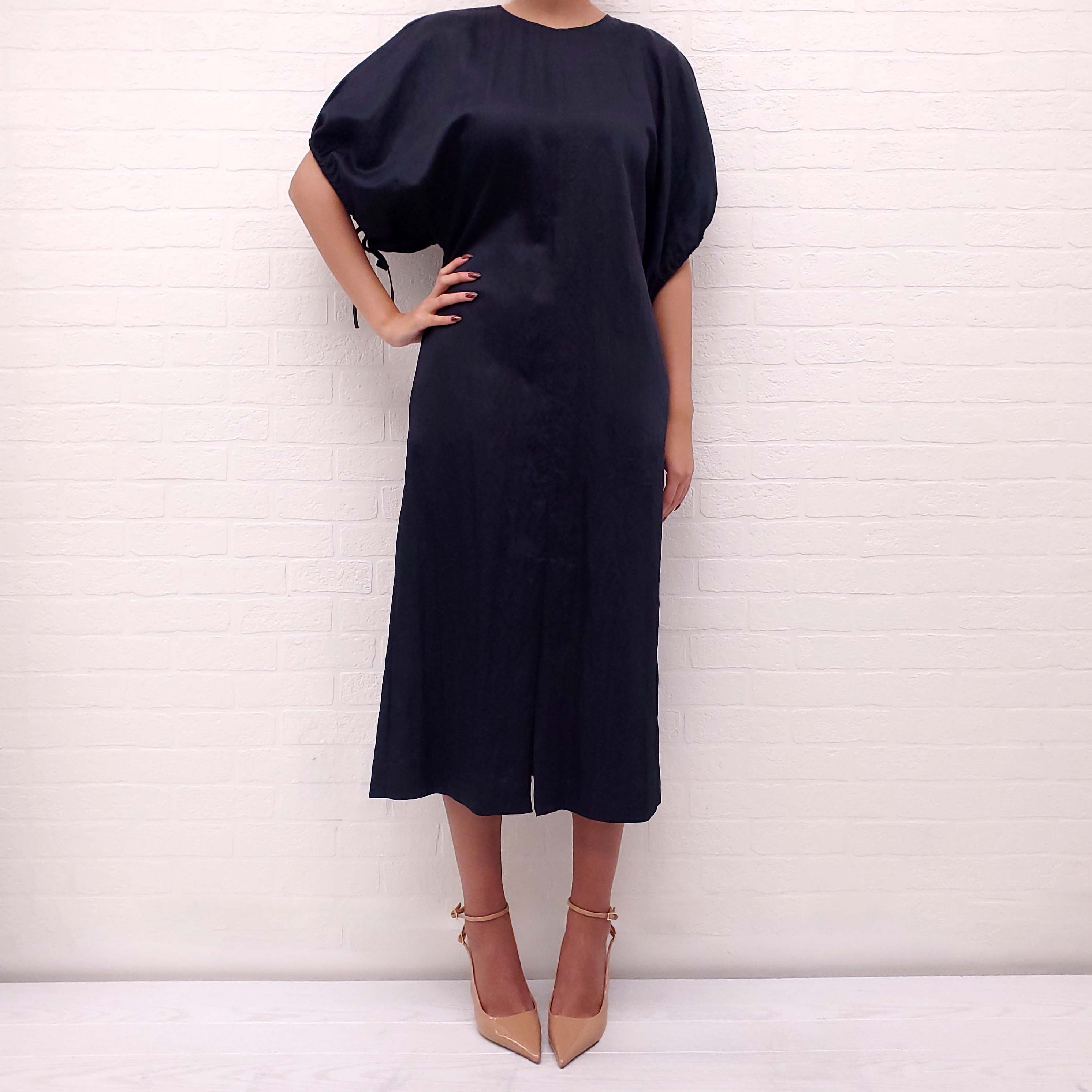 JIL SANDER NAVY SHORT SLEEVE DRESS WITH TIES - SIZE 38