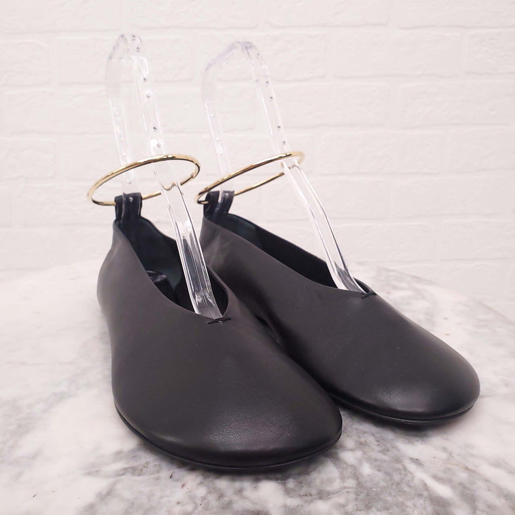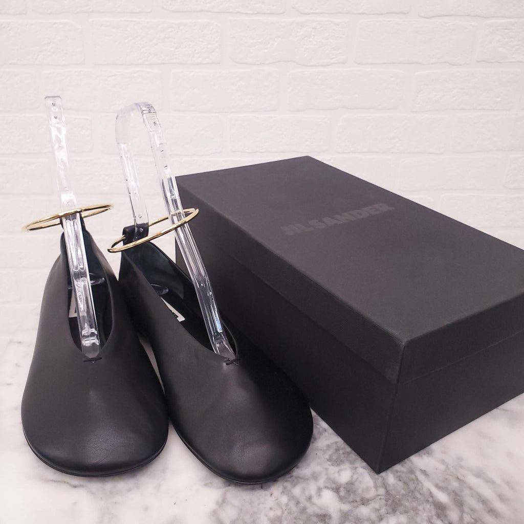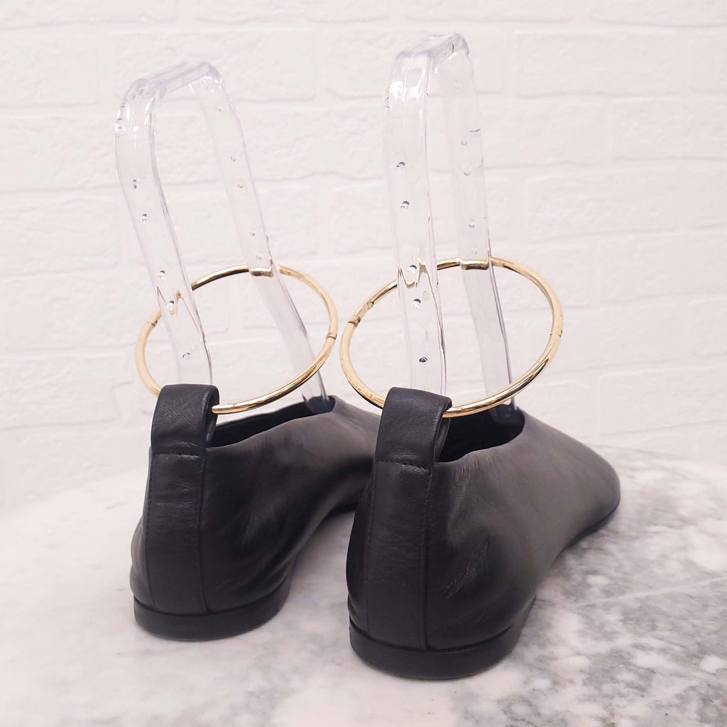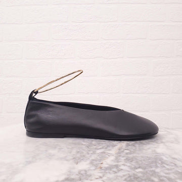 JIL SANDER BLACK LEATHER ROUND TOE BALLET FLATS WITH GOLD ANKLET - SIZE 40
