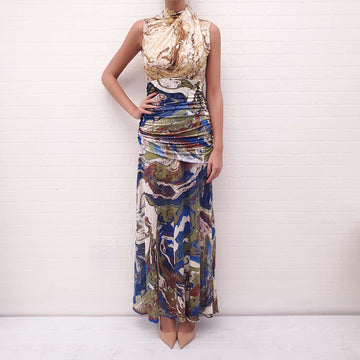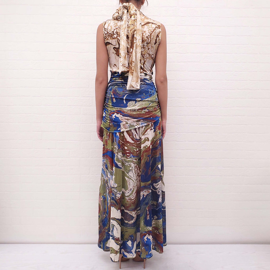 JIL SANDER MARBLE PATTERNED LONG DRESS - SIZE 38