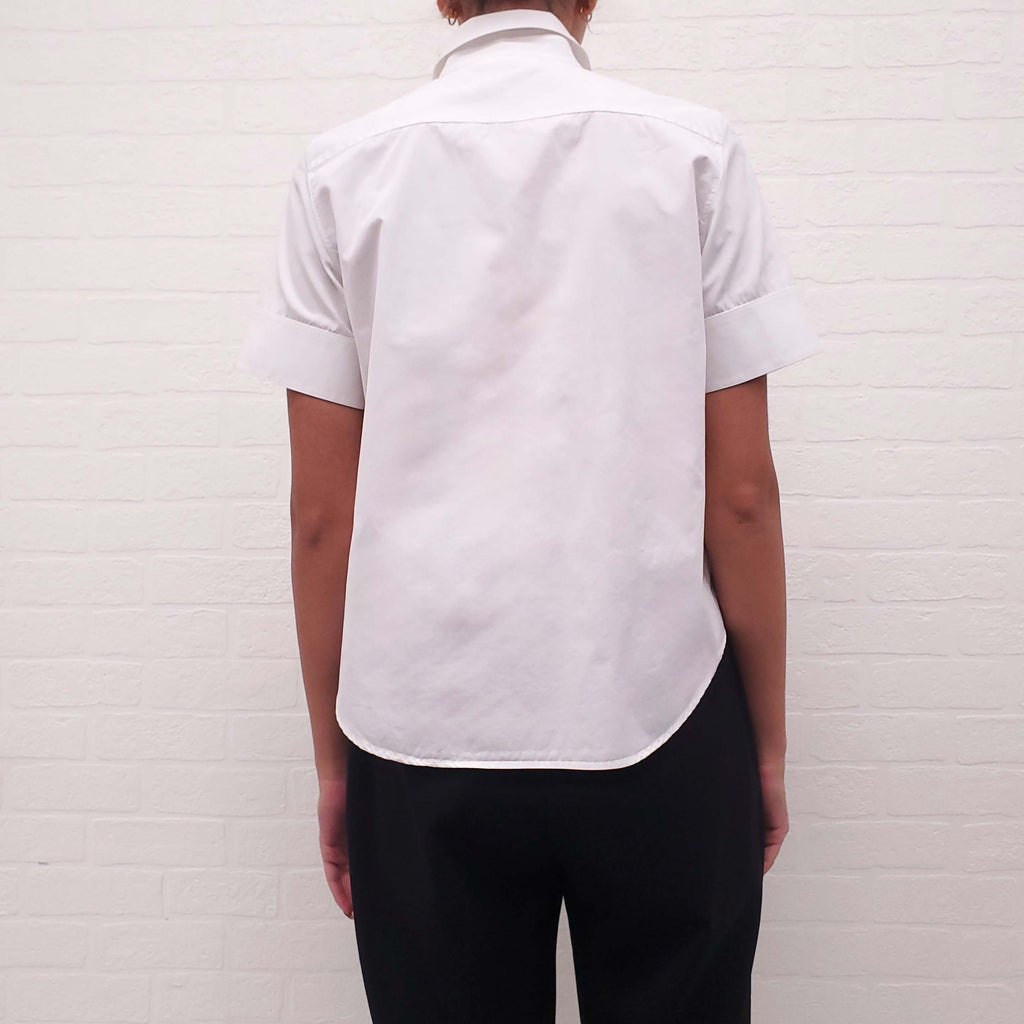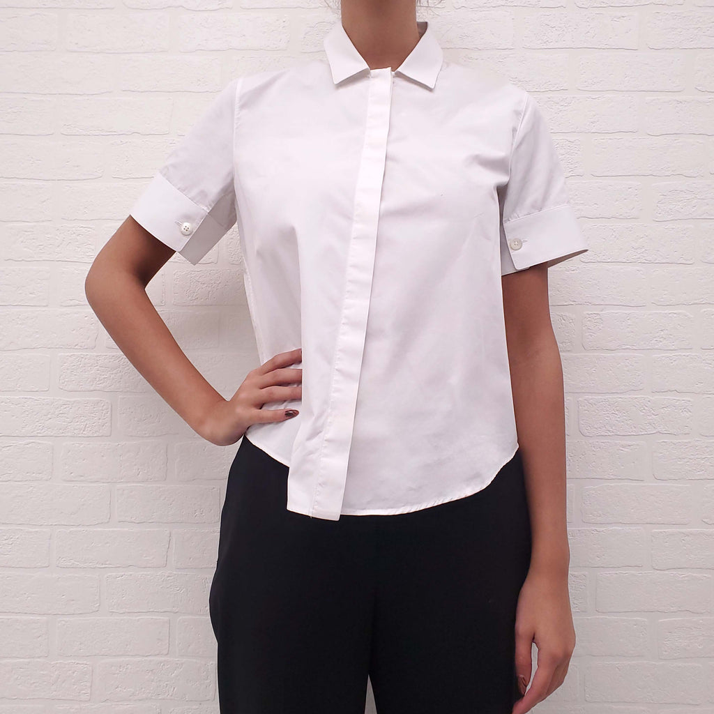 JIL SANDER WHITE COTTON SHORT SLEEVE BUTTON UP BLOUSE - SIZE 34