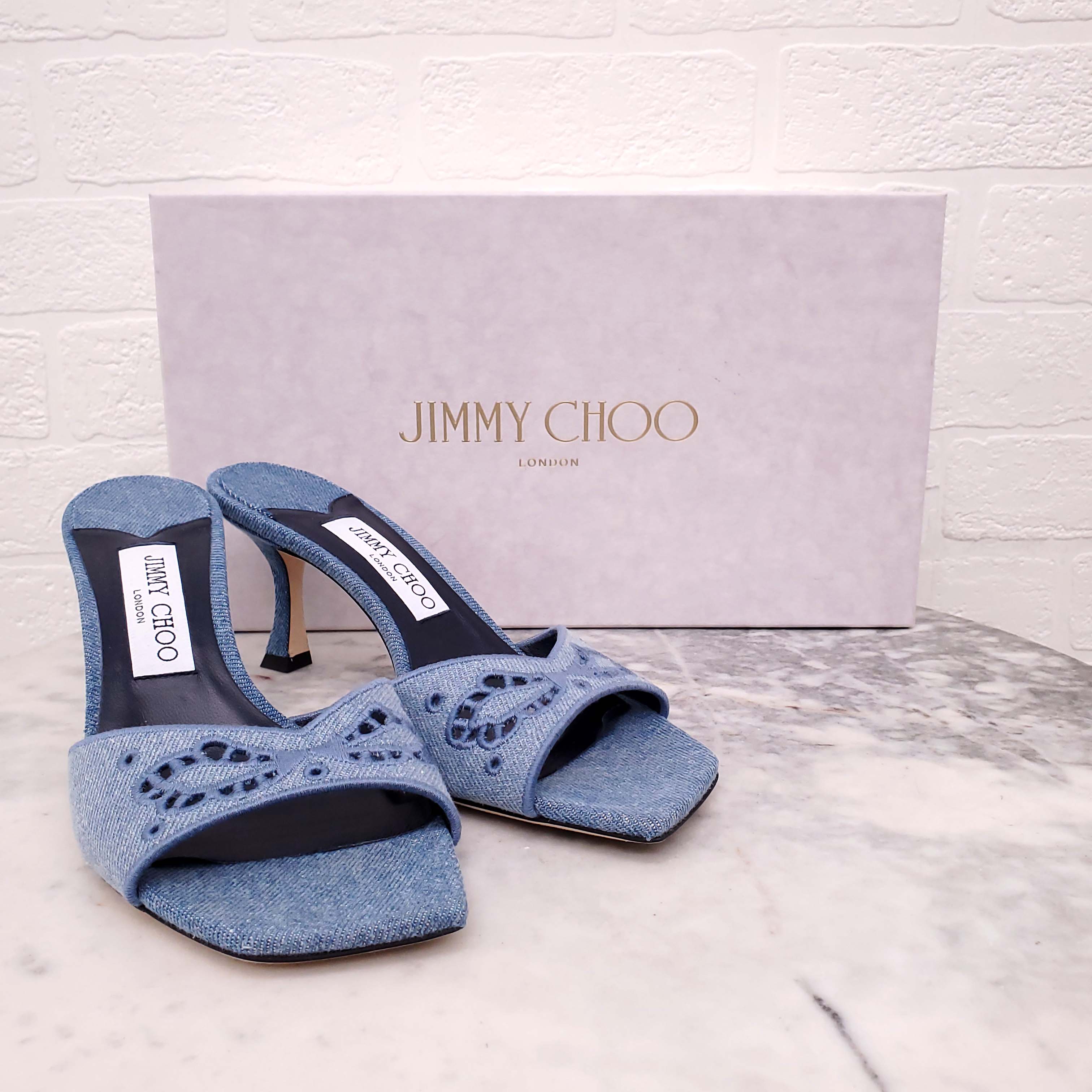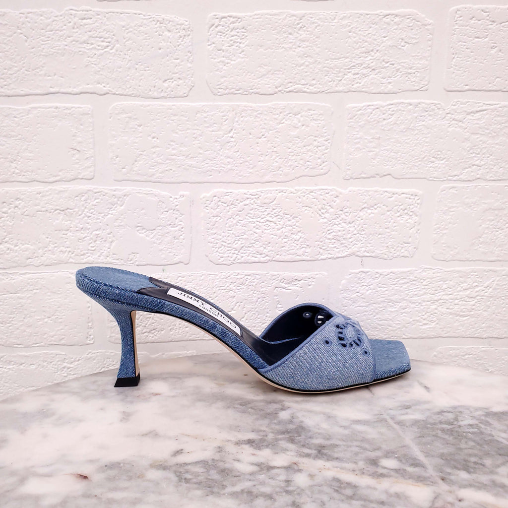 JIMMY CHOO DENIM LASER CUT MULES - SIZE 37.5