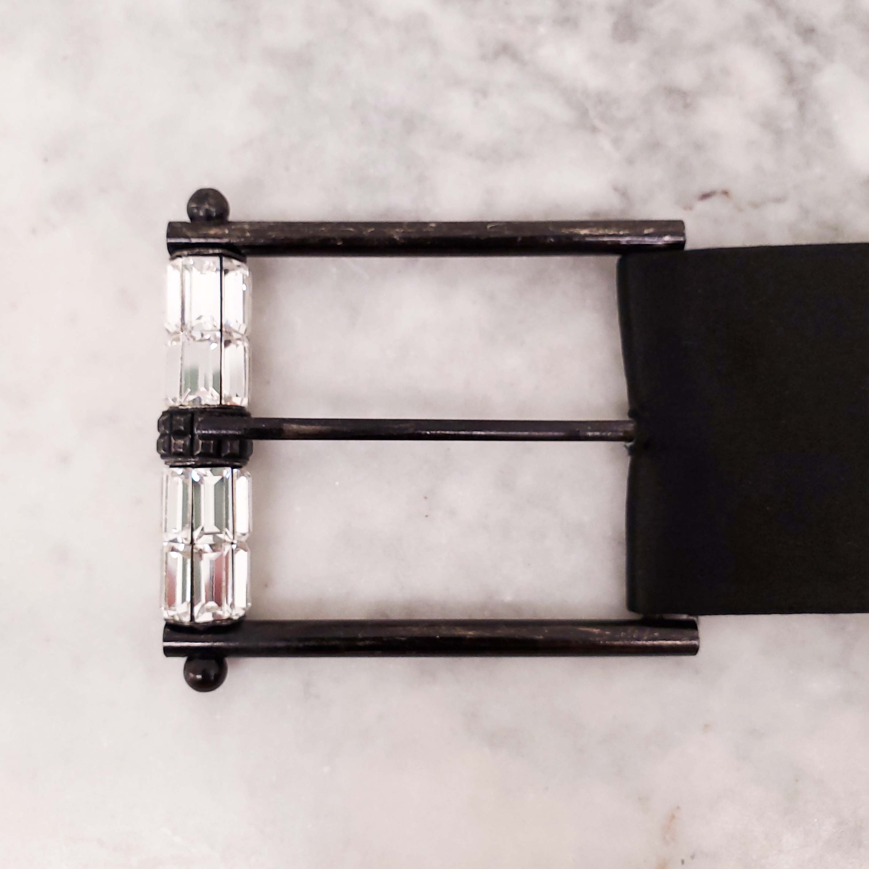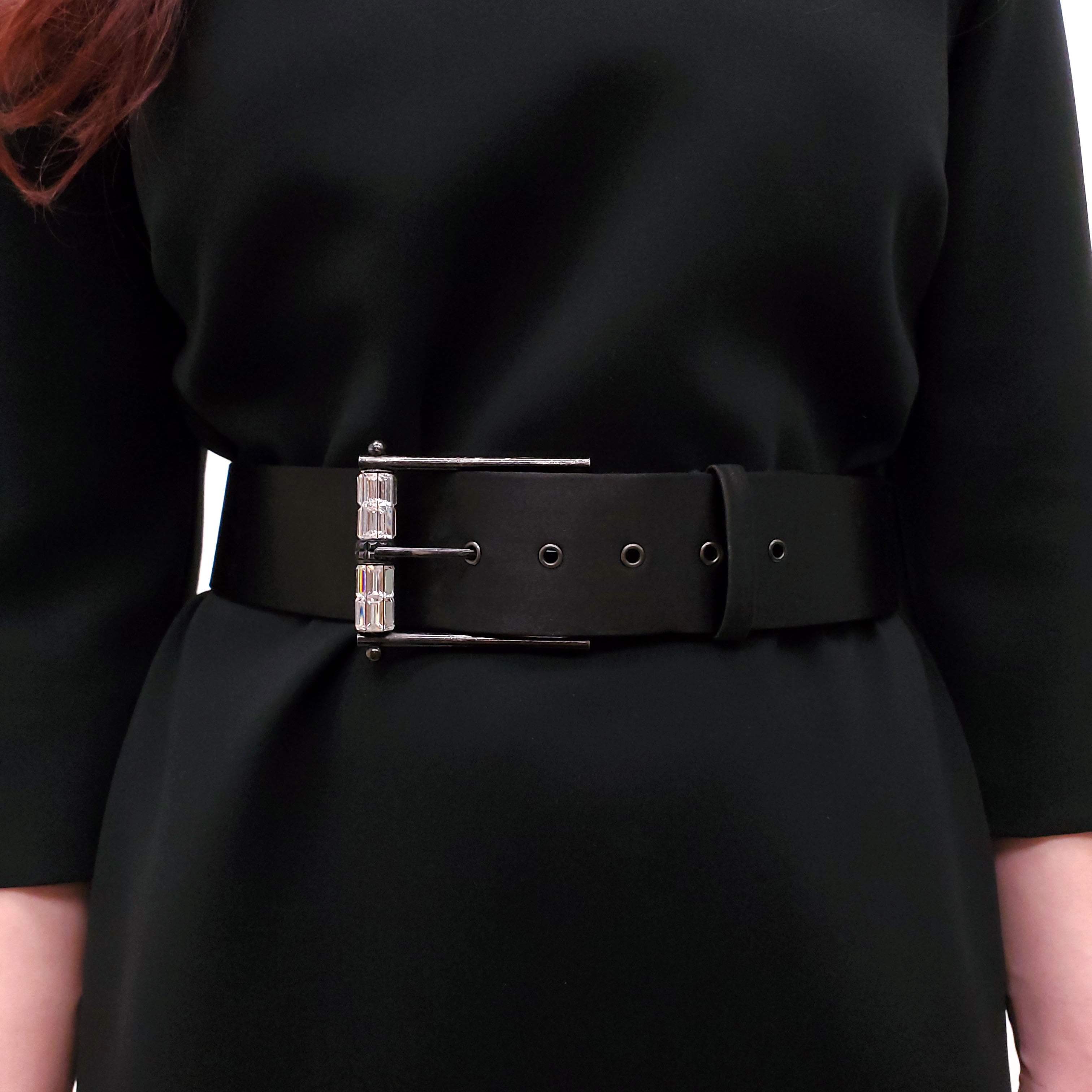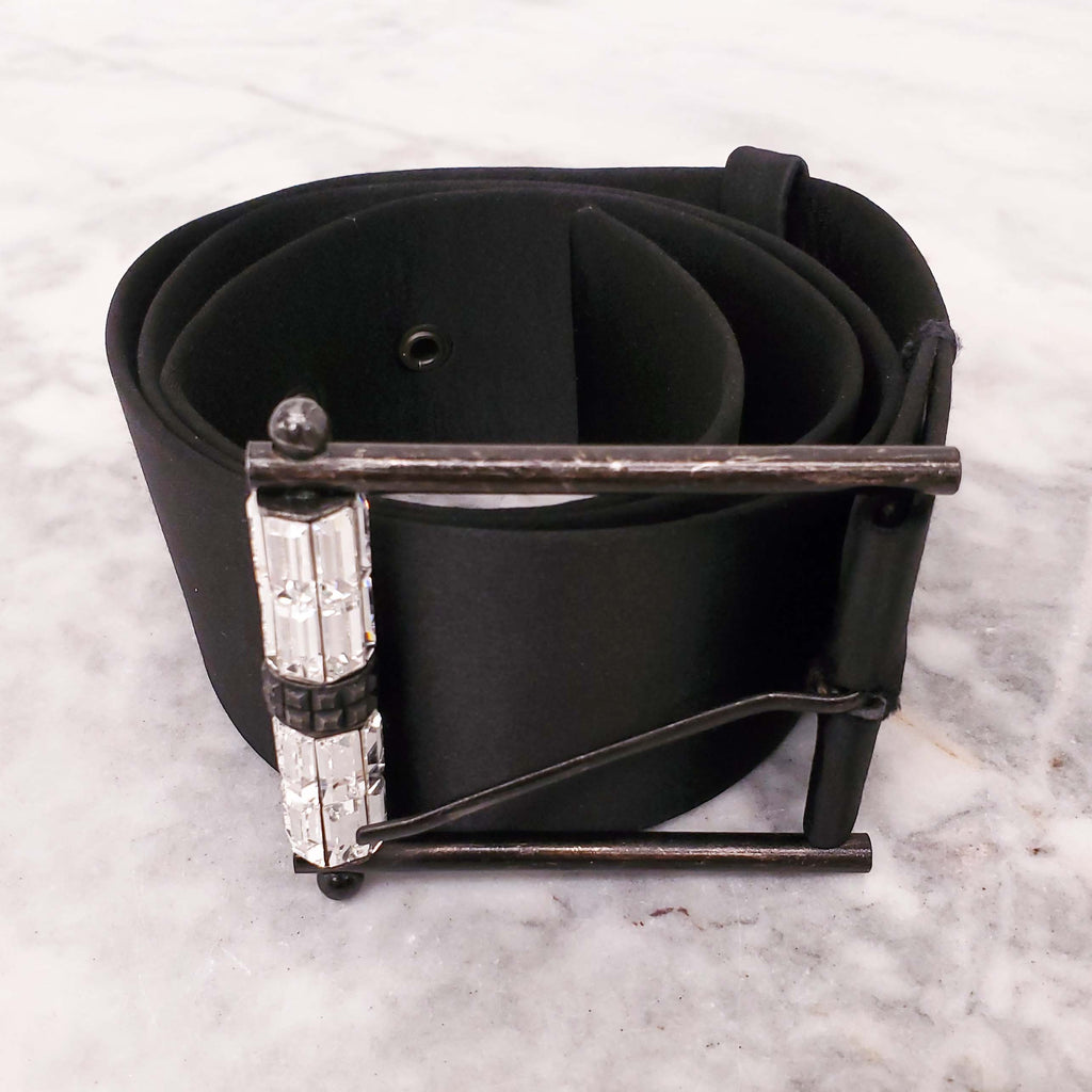 LANVIN BLACK SATIN CRYSTAL BELT - SIZE L