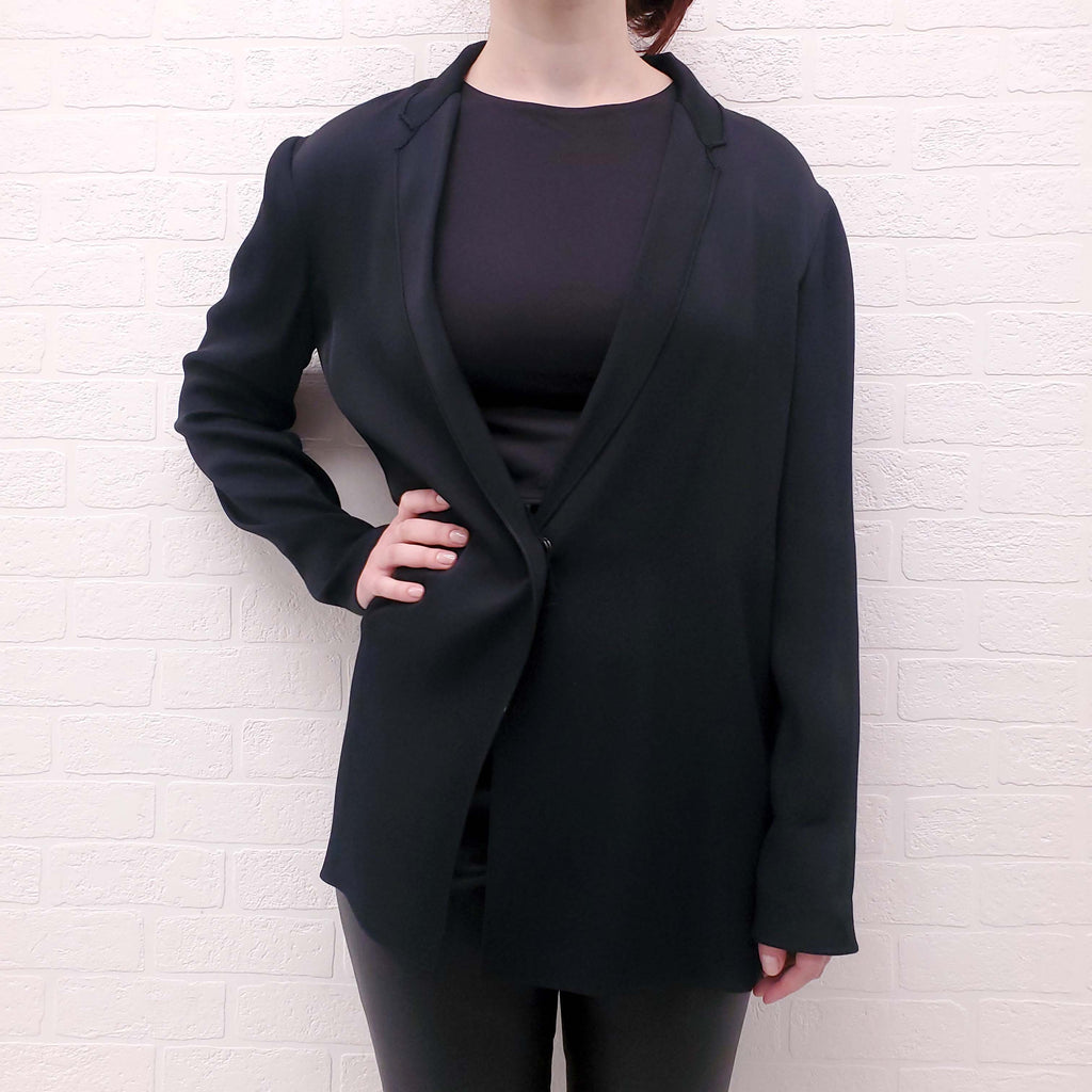 LANVIN BLACK SILK BLAZER WITH SNAP DETAIL - SIZE 42