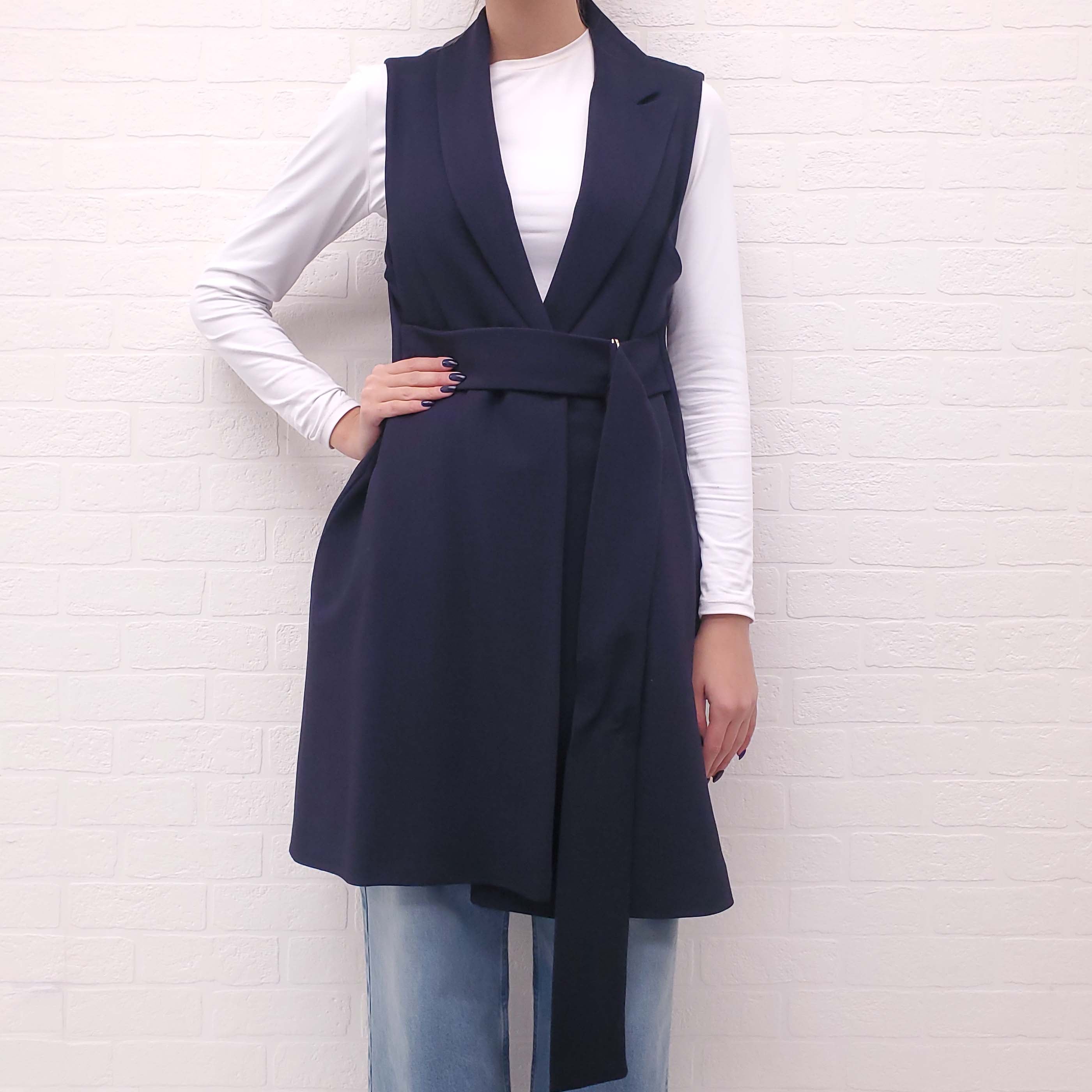LANVIN NAVY LONG VEST JACKET - SIZE 40
