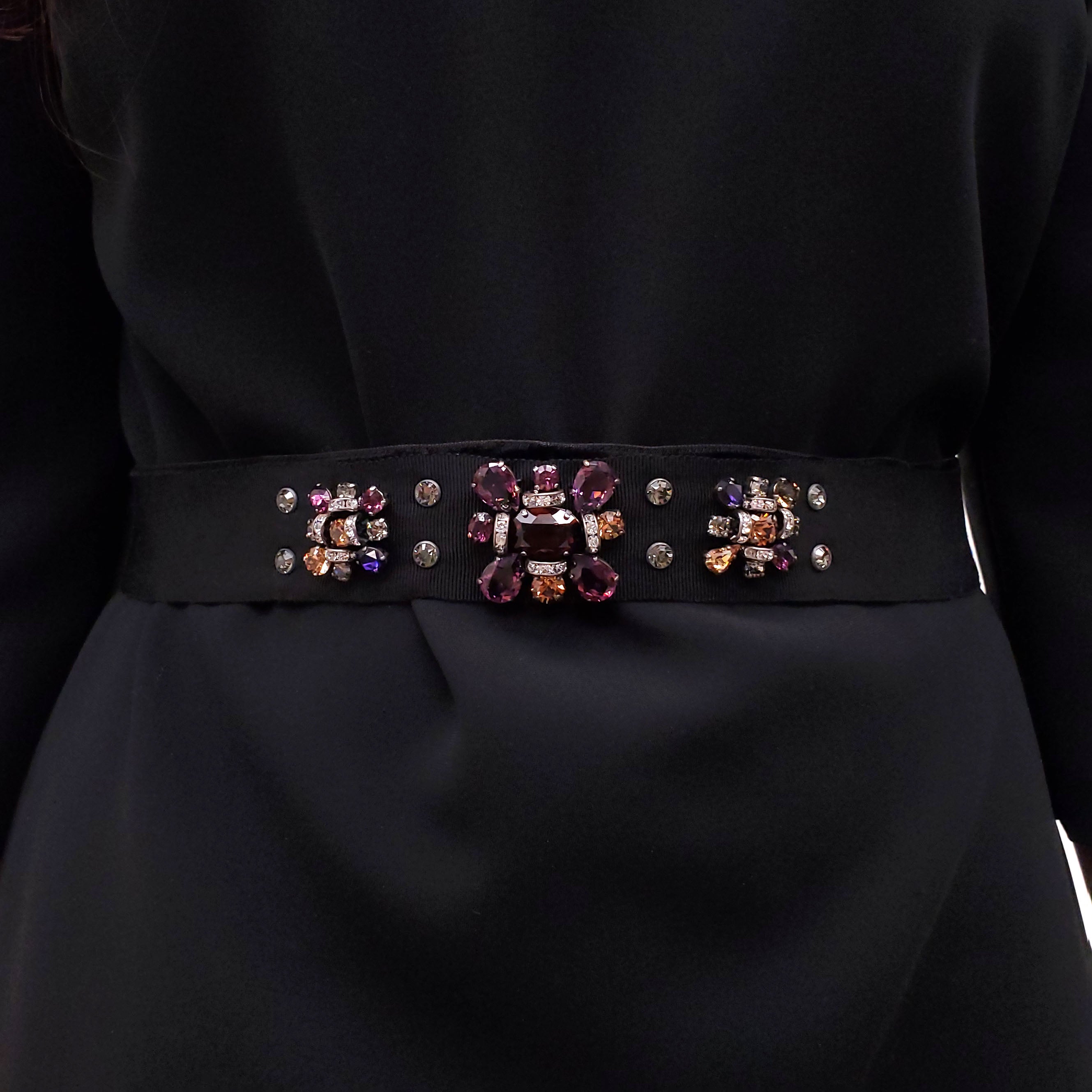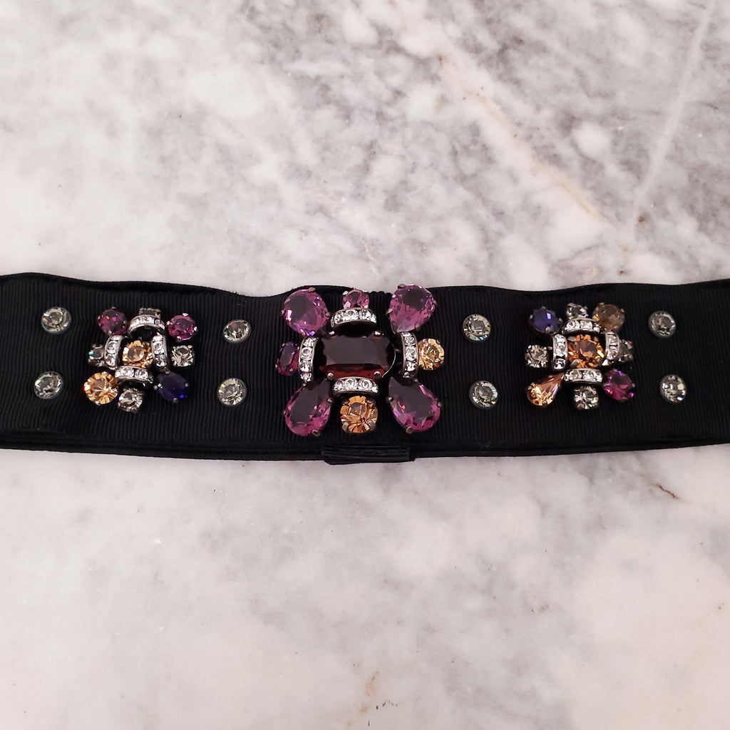LANVIN PURPLE CRYSTAL STRETCH WAIST BELT - SIZE M