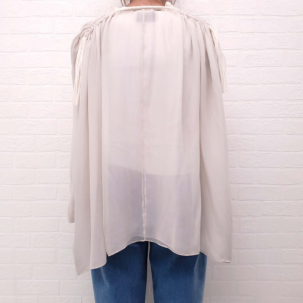 LANVIN SILK CREAM BLOUSE WITH TASSEL DETAILS - SIZE 3