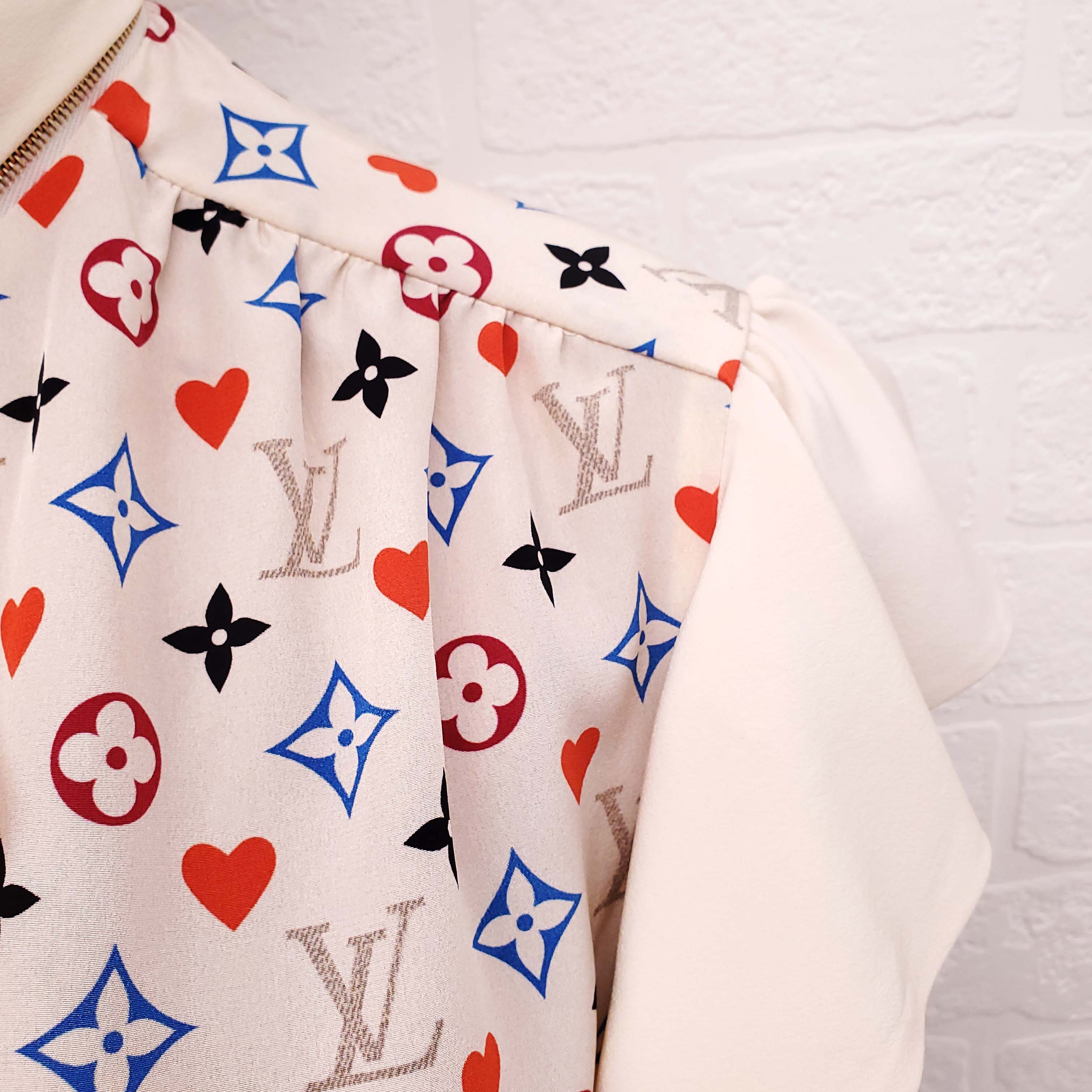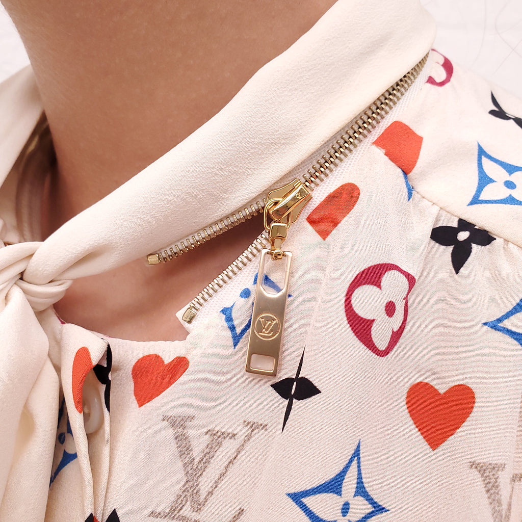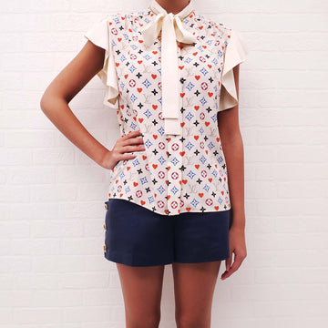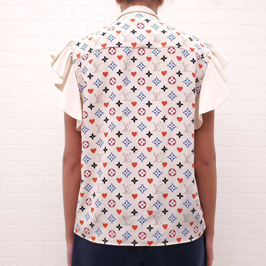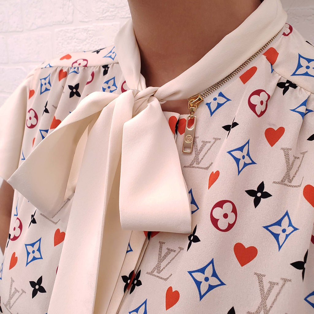LOUIS VUITTON CREAM SILK LOGO BLOUSE WITH TIE AND REMOVABLE COLLAR - SIZE 38