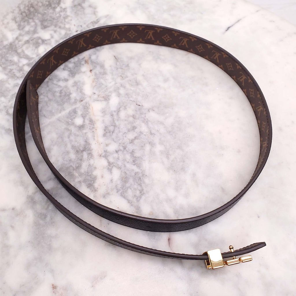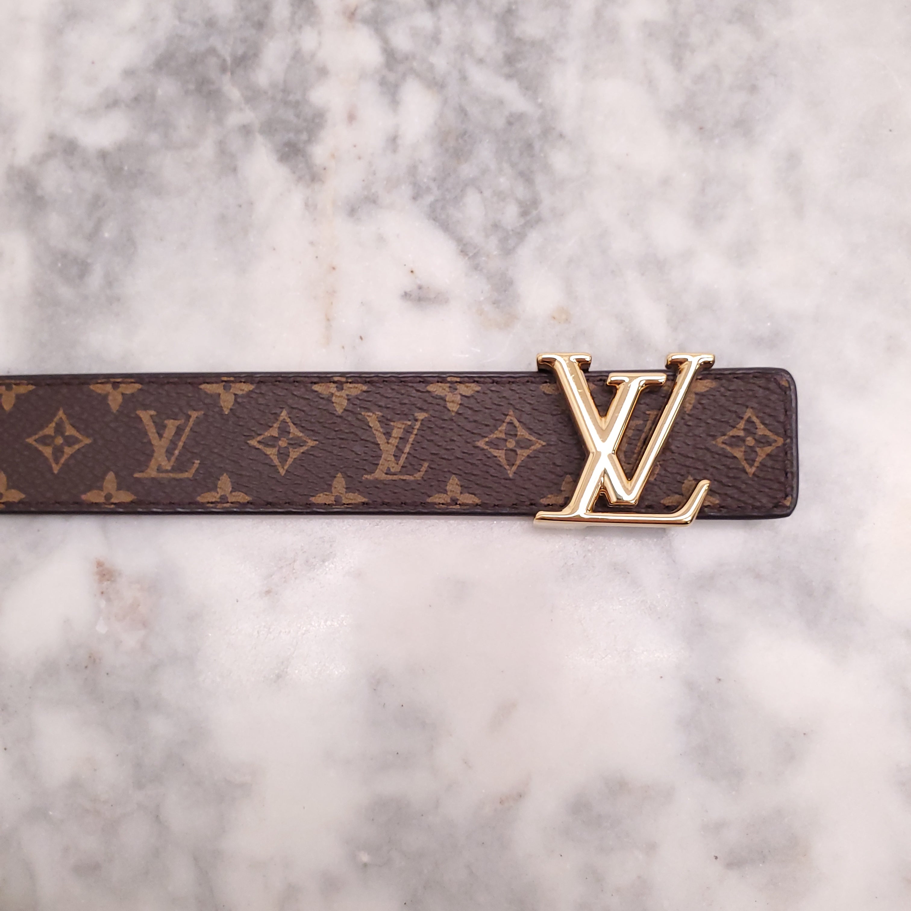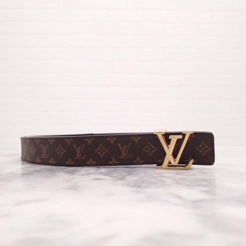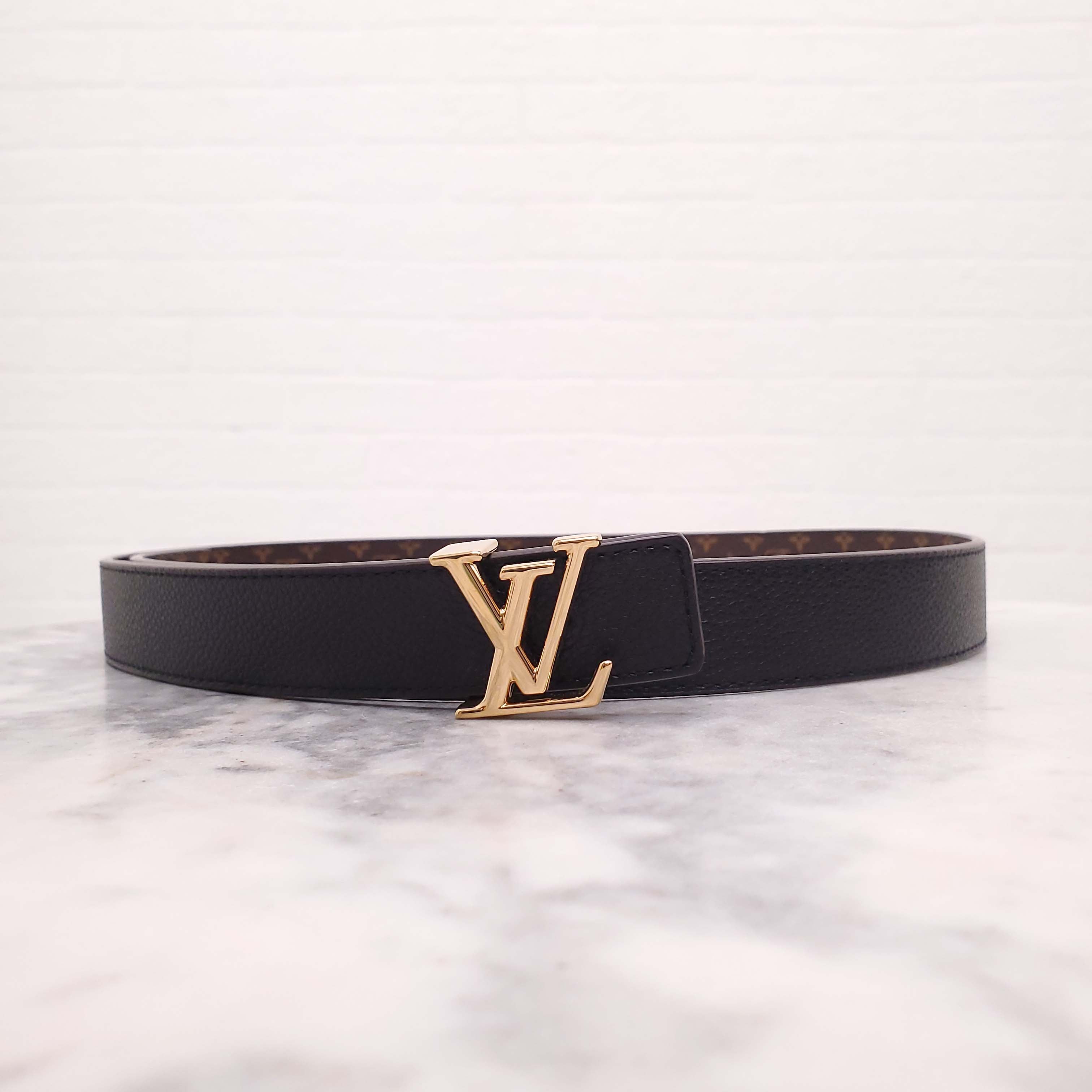 LOUIS VUITTON MONOGRAM AND BLACK REVERSIBLE LOGO BELT - SIZE 85