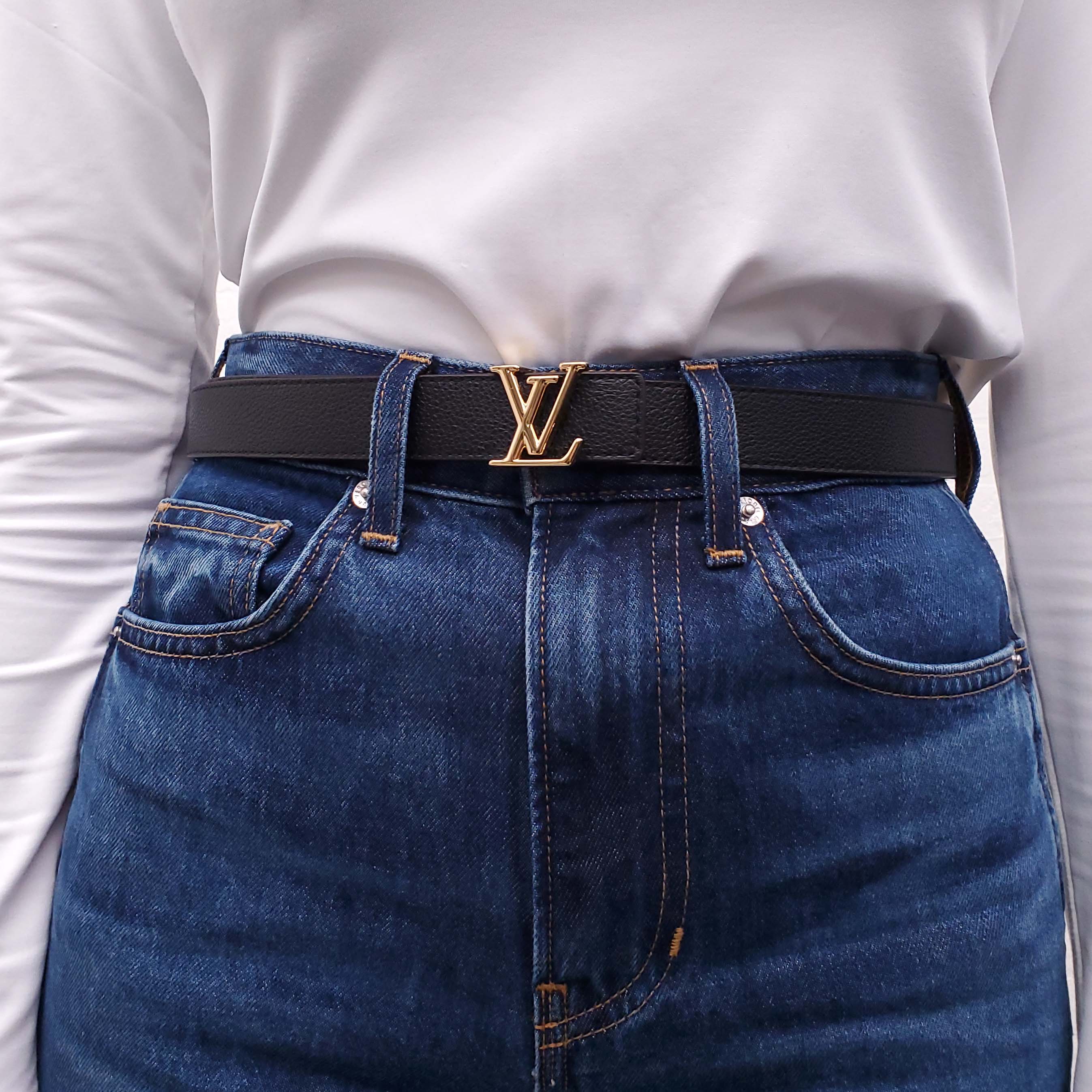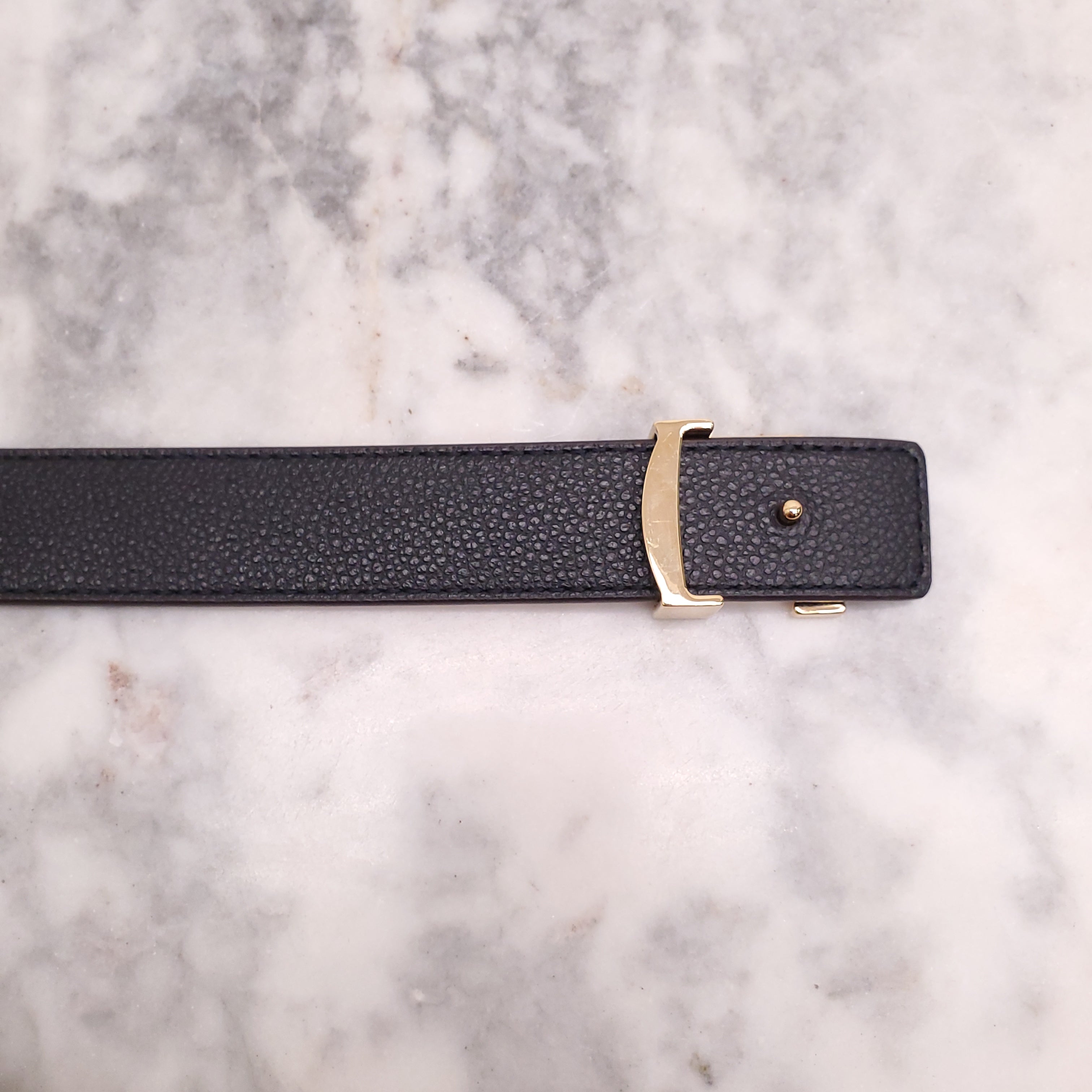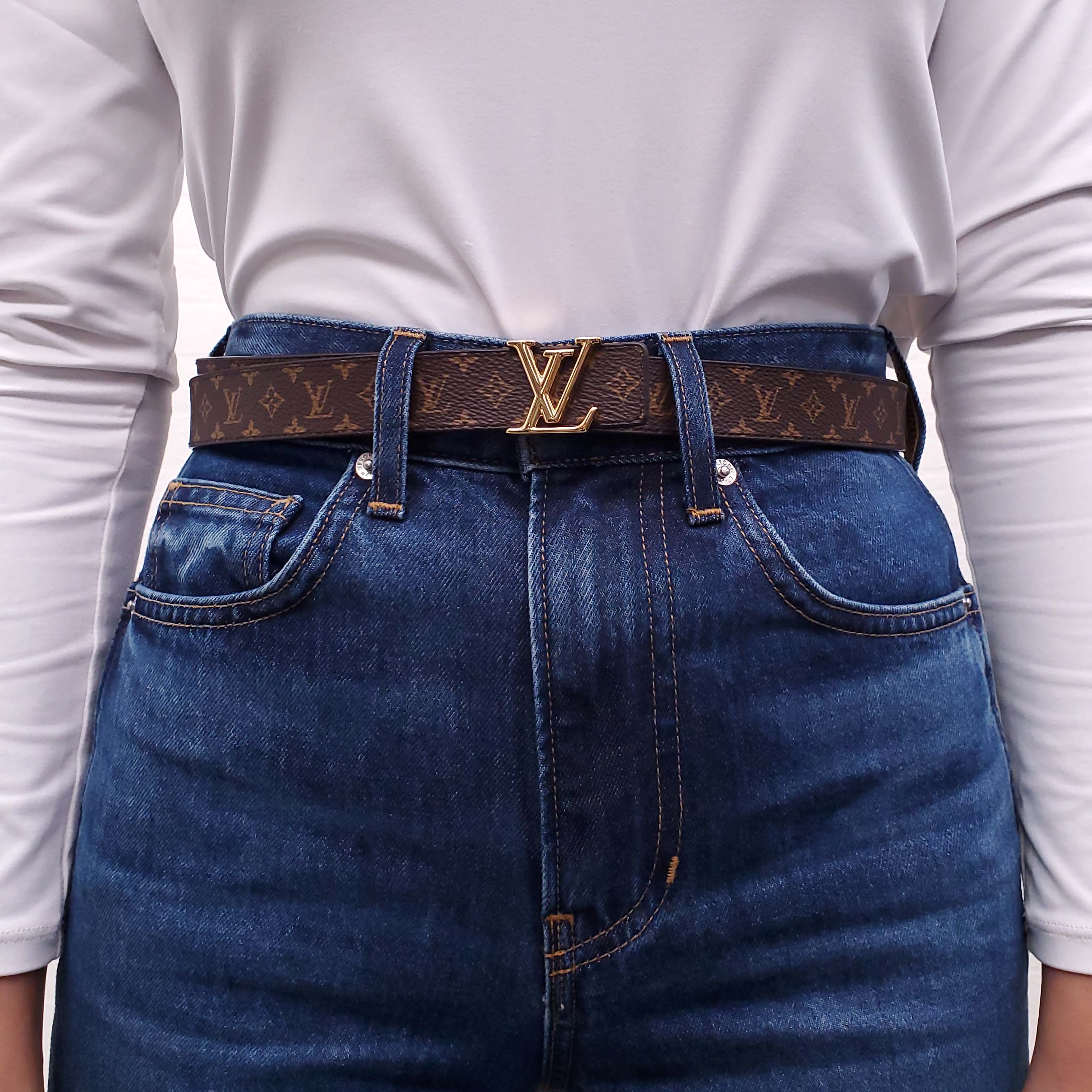 LOUIS VUITTON MONOGRAM AND BLACK REVERSIBLE LOGO BELT - SIZE 85