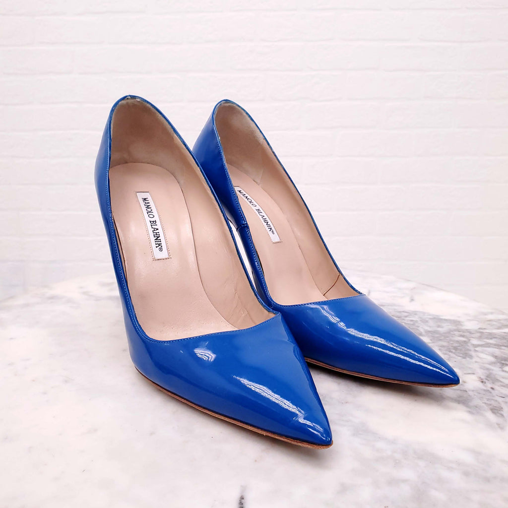 MANOLO BLAHNIK BRIGHT BLUE PATENT HEELS - SIZE 42