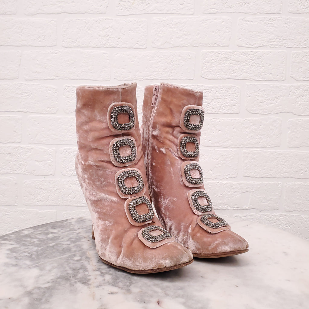MANOLO BLAHNIK VELVET HEELS WITH CRYSTAL DETAILS - SIZE 38