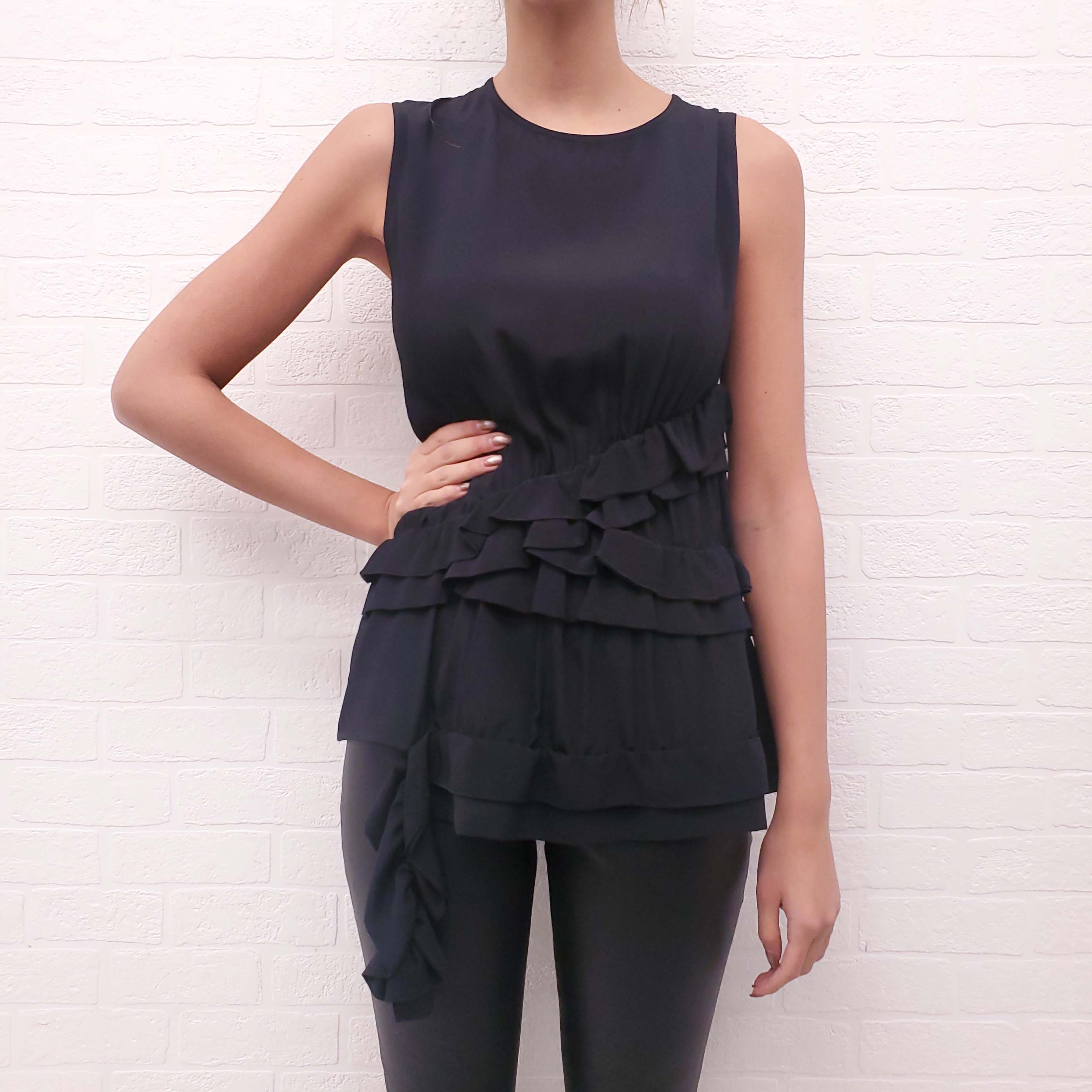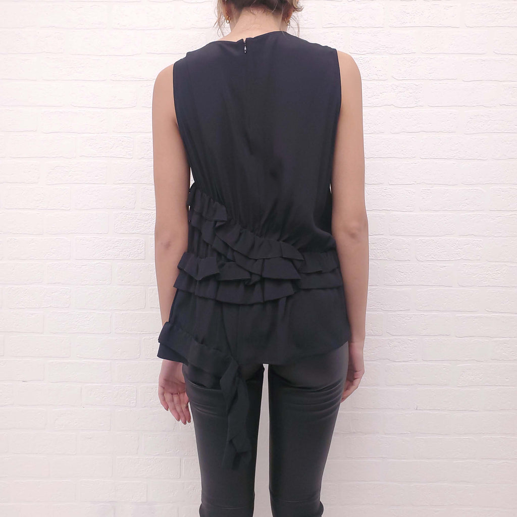MARNI BLACK SILK BLEND RUFFLED SLEEVELESS BLOUSE - SIZE 42