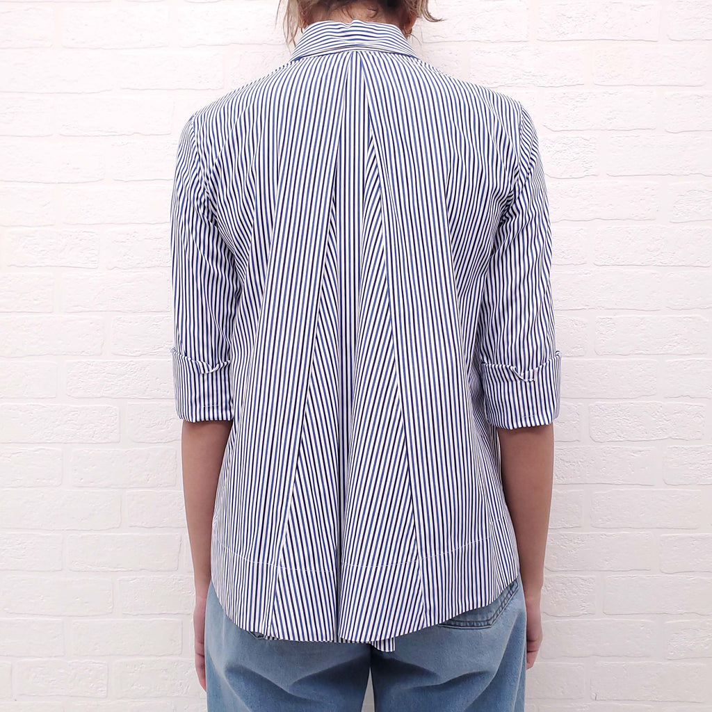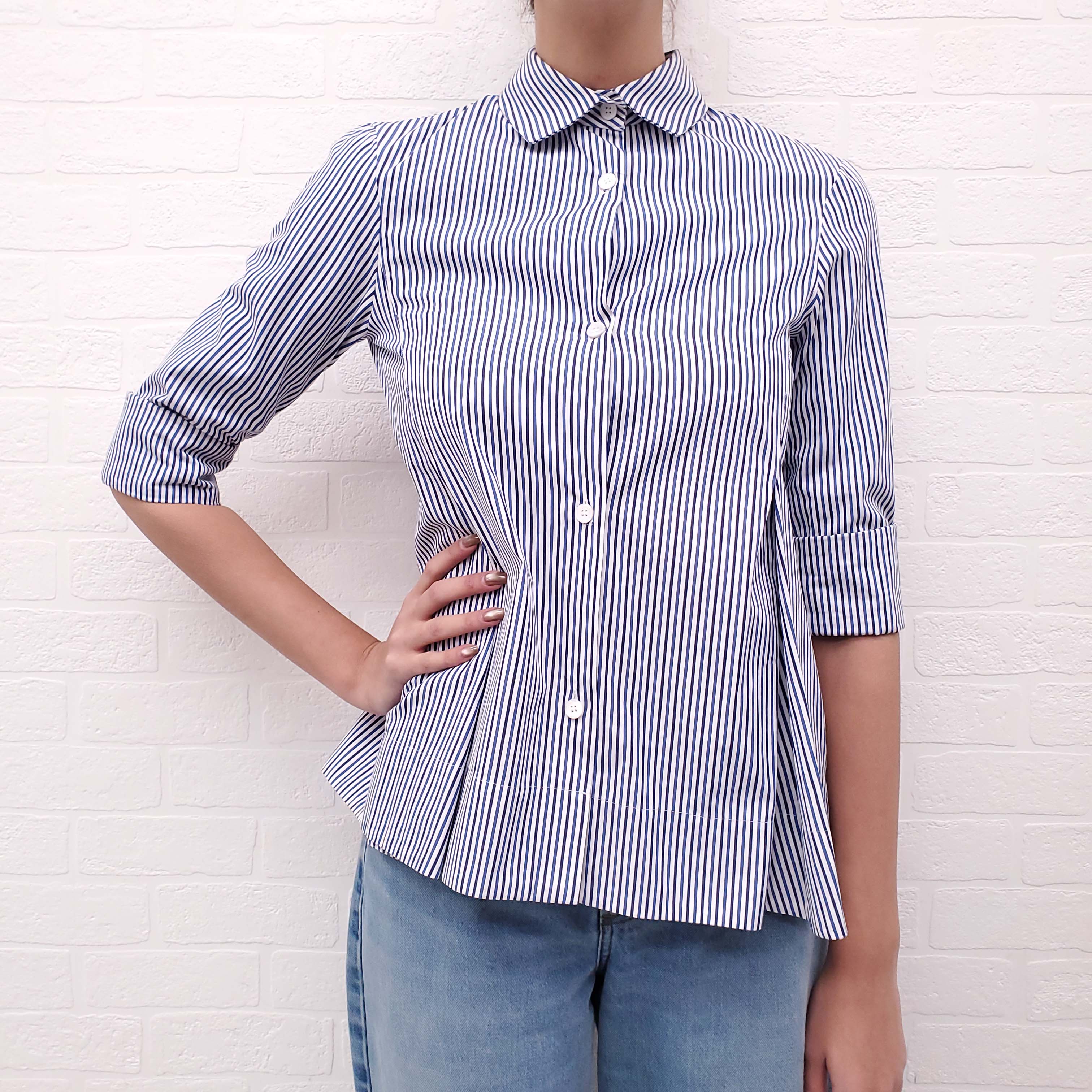 MARNI BLUE AND WHITE STRIPED BUTTON UP BLOUSE - SIZE 38