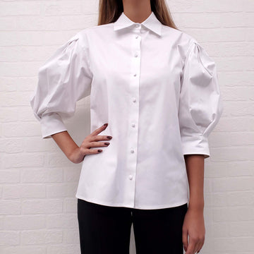 MAX MARA WHITE COTTON BUTTON UP BLOUSE - SIZE 8