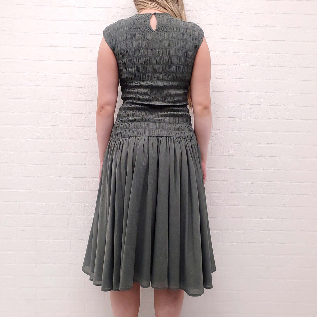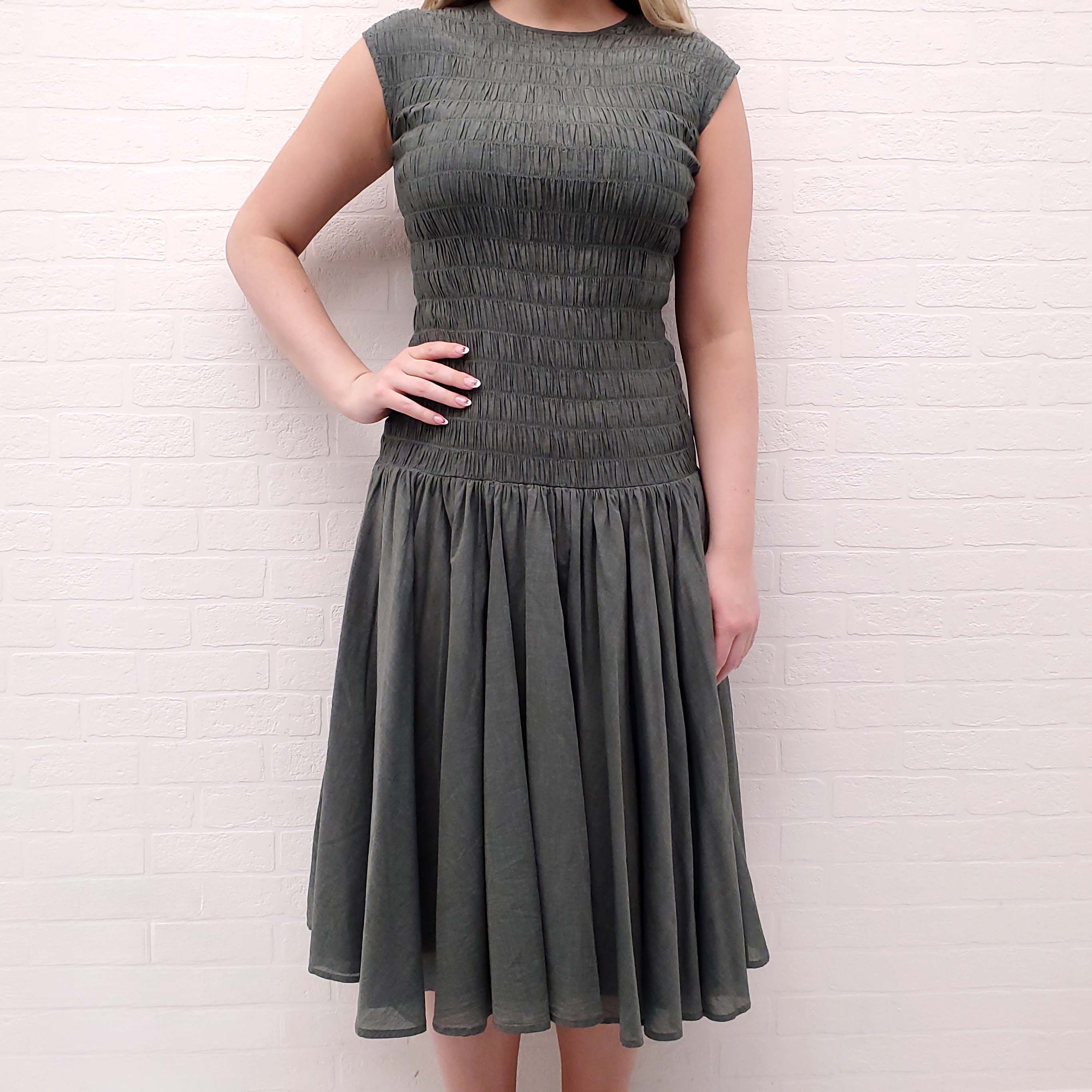 MERLETTE GREEN COTTON RUCHED DETAIL DRESS - SIZE XS
